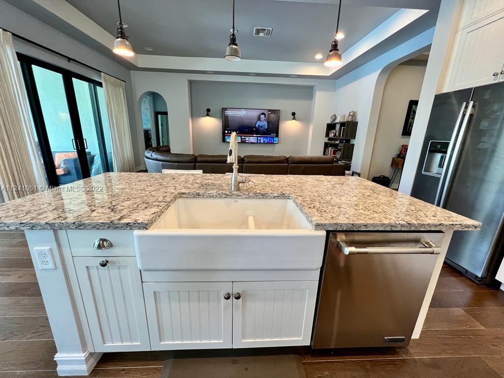 Check out this gem in Raintree Estates. This home is resort style living at its finest. There was no lack of attention to detail throughout this Standard Pacific built home. The fully open concept living, kitchen, and dining flows out to the patio, pool, summer kitchen/BBQ, and canal. Upgraded kitchen, double ovens, recessed lightening, farmhouse sink, sonous surround sound speakers and more. Spacious and luxurious 5-piece master with double sinks, tub, and shower. 2 large guest rooms, Finished garage with extra refrigerator and storage. This home is an entertainers dream, just bring your tooth brush! MAKE AN OFFER! Enter through main Raintree gate off of Pembroke Rd just west of Hiatus Rd.