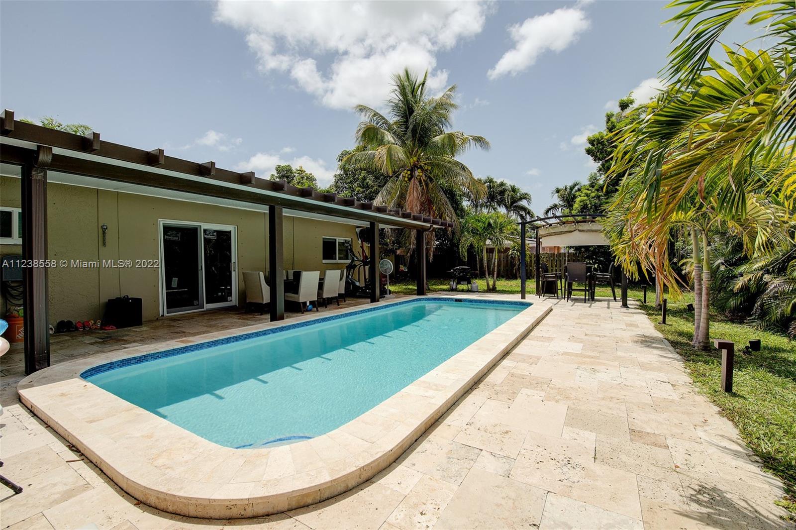 Spectacular remodeled 3/2 home with a bonus room, new from the bottom up, sitting on a 9,000+ sqft oversized corner lot. Newer roof (replaced in 2012), new kitchen, bathrooms, wood floors, and doors throughout the home. Freshly painted inside & out. Kitchen features new custom cabinetry with granite counter-tops, and brand new S/S appliances. Tons of storage space, 2 sheds in the backyard, along with a beautiful large pool. New landscaping in the front and backyard. Hurry, this home won't last long!
