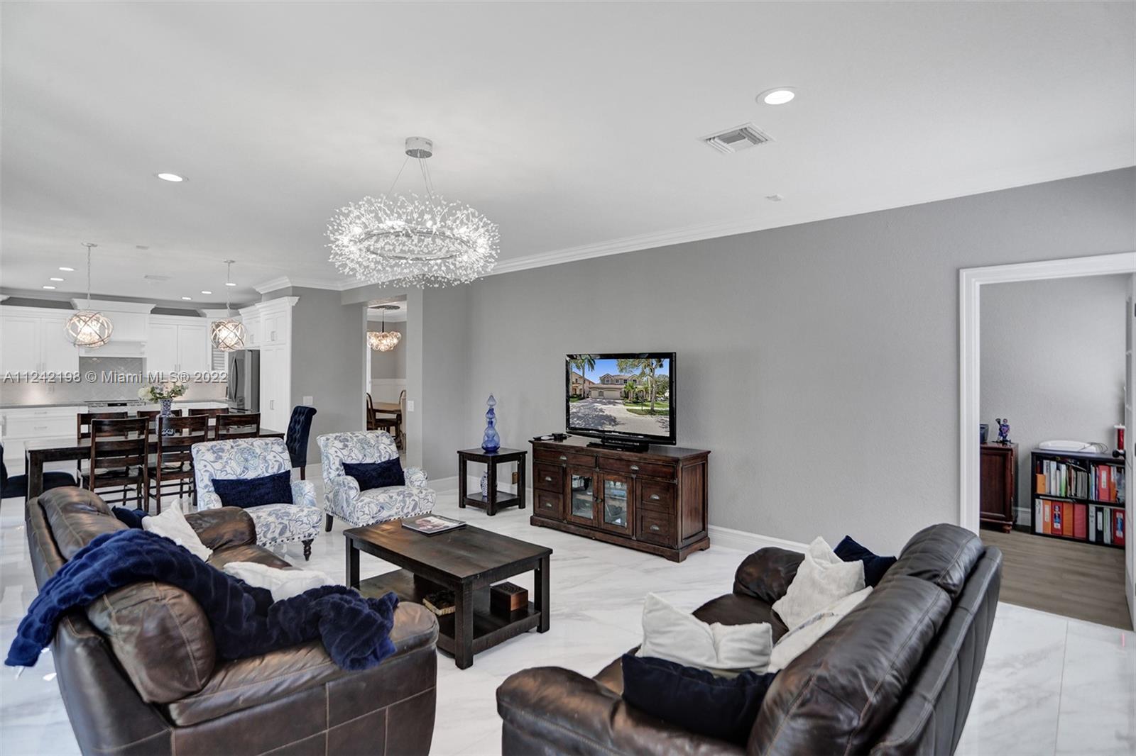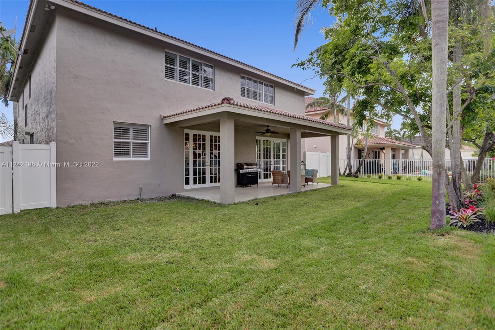 HIGHLY RENOVATED FROM TOP TO BOTTOM. MODERN WHITE KITCHEN W/ BRAND NEW 2021 STAINLESS STEEL APPLIANCES, QUARTZ COUNTERTOPS, AND DECORATORS BACKSPLASH. 24X24 WHITE PORCELAIN FLOORING IN LIVING AREAS. DOUBLE FRENCH DOORS LEAD TO A PRIVATE YARD, FULLY FENCED W/ PVC PRIVACY WHITE FENCE AND SPACIOUS PATIO. FULL BED AND BATH FIRST LEVEL. ALL BATHS RENOVATED IN A CONTEMPORARY STYLE. OVERSIZED OWNER'S SUITE W/ SITTING AREA AND LUXURIOUS BATH, VESSEL TUB, AND SHOWER. WOOD FLOORS IN ALL BEDROOMS. FRESHLY PAINTED INTERIOR. GRAND TWO-STORY LIVING ROOM, EXTENSIVE CROWN MOLDINGS, WAINSCOTING, AND PLANTATION SHUTTERS. THREE-CAR GARAGE W/ EPOXY FLOOR. FRESHLY PAINTED EXTERIOR. HURRICANE PROTECTION. 2 BRAND NEW A/C 2022. WALK TO THE COMMUNITY POOL AND SCHOOLS. GATED COMMUNITY.