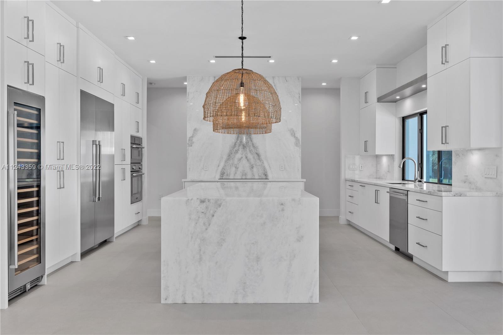 Transforming Miami into a New Level of Leisure. One of a kind 2022 new construction move in ready home located in a peaceful street in the heart of Pinecrest. Over 4K sq feet in a 0.5-acre lot featuring 4 ample bedrooms with modern design bathrooms ensuite and a powder room. Vibrant and luminous open spaces with 10 ft ceilings. The aesthetic is warm whites and rich woods rooted in the essence of graceful minimalism. Masterful selection of fine fixtures and finishes: contemporary gourmet open kitchen, oversize island finished with handpicked natural stone; fully equipped with luxury Thermador® smart appliances, dual zone wine cooler, handcrafted cabinetry, ambient lighting throughout the home. Exterior lounge, summer kitchen, turquoise 16 X 37 pool with a saltwater system and Baja shelf.