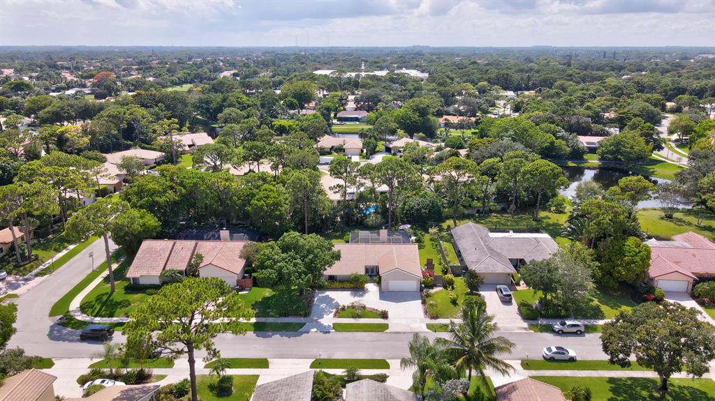Open and welcoming beautiful home with private pool located in the desirable Timbercreek neighborhood just south of Lynn University between Military Trail and St. Andrews Blvd. Here you'll find an oversized lot (13,796 ft) with newer (2020) circular driveway, attached garage, entry leading into an open-concept home featuring new AC, newer washer/dryer, new Samsung refrigerator. White kitchen cabinets and dark granite island countertops for prepping and tasting delicious meals. Owner's suite features walk-in closet, en suite bath with double-sink vanity. Huge backyard with mature trees, a Barbecue patio surrounded by Plumerias and ferns; screened in pool; new sprinkler system. Enjoy peace of mind with accordion shutters (up to code) and hurricane-rated garage door. Come see for yourself!