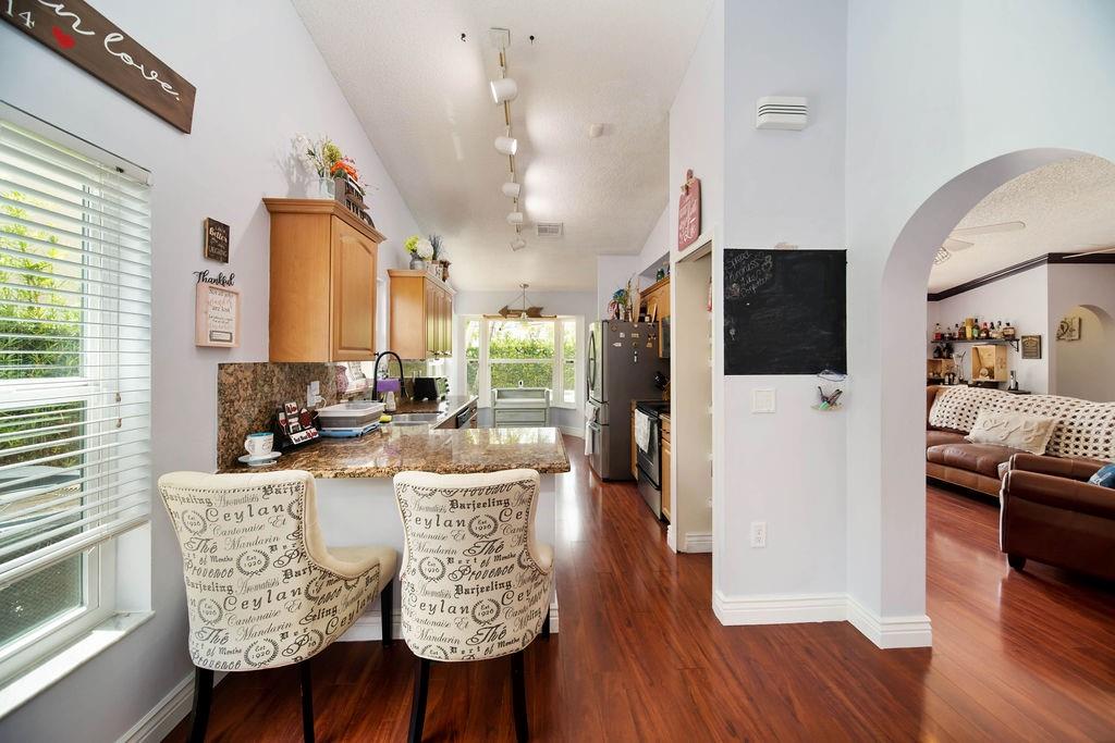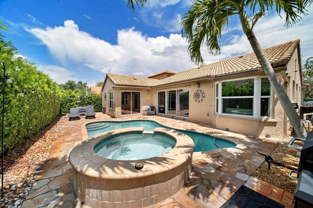This tropical oasis in Pembroke Pines is located around shopping, restaurants, and I-75. Excellent rated schools K-12. As you enter the home, beautiful hardwood floors flow seamlessly throughout the home and your eat-in kitchen is complete with custom cabinetry and granite countertops. Your privacy fence surrounds your backyard sanctuary that is layered in rock pavers which provides a lagoon-style feel so you can enjoy your custom heated pool(Salt Filtration System) and overflow jacuzzi. The elegant Spanish tile roof was replaced in 2018. Additionally, the pool pump, pool filter, and automatic irrigation pump were installed in 2021. To keep your home cool and safe all year long, the windows are energy efficient and hurricane rated.