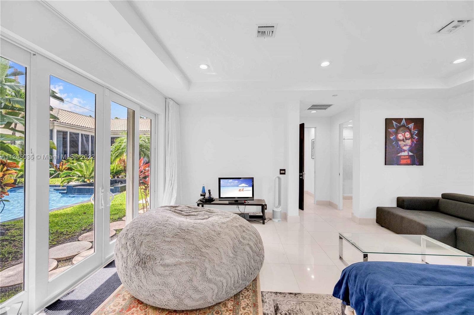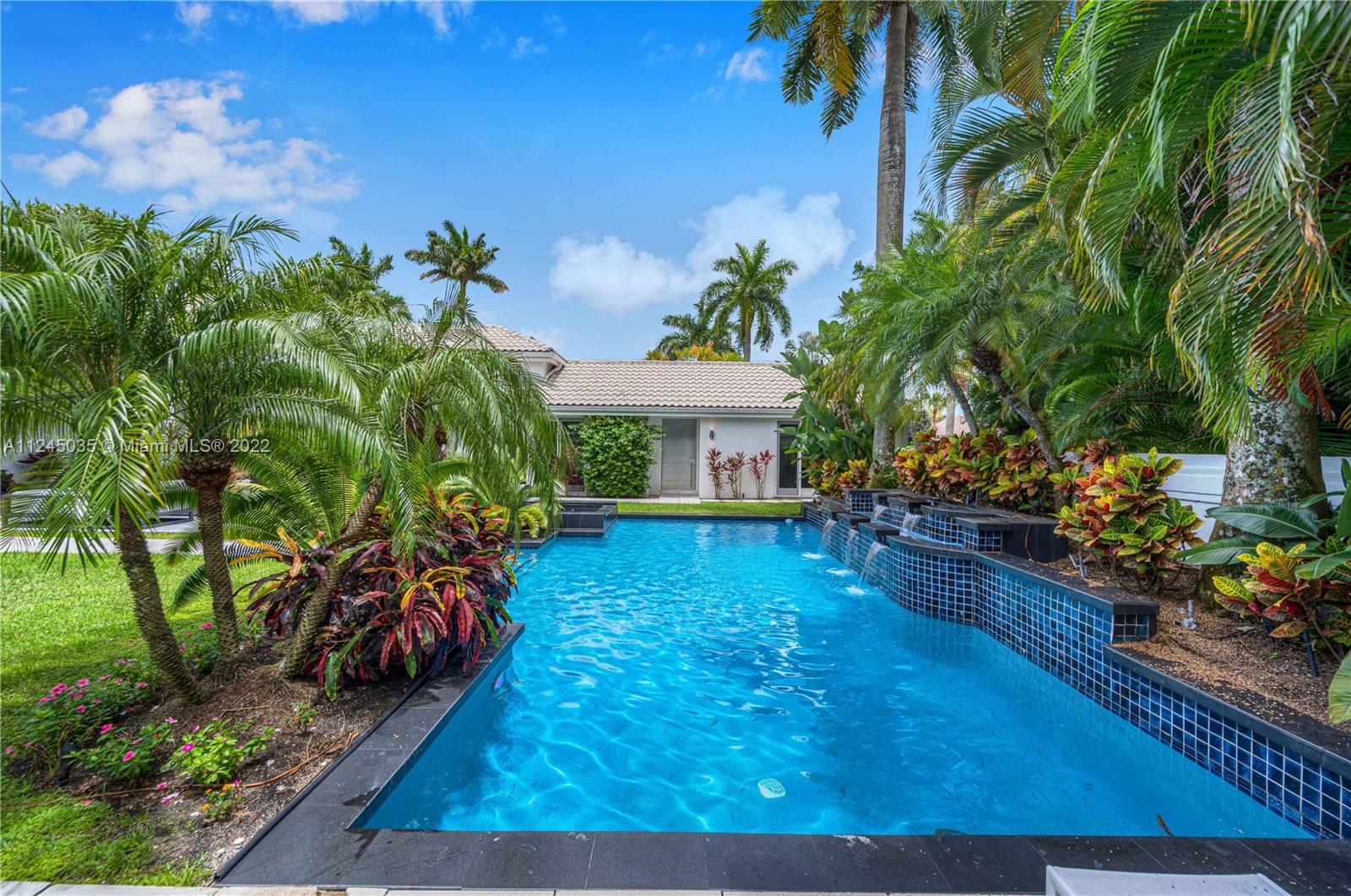 An Oasis awaits in the sought after community of Broken Sound. This stunning estate sits on over a half acre & is adorned with only the finest finishes. Step in from the imported pivoting steel doors to the lush green wonderland that embraces the pool/patio area. Another pivot leads you into the home where you are immediately taken by the soaring ceilings, open layout & natural light that cascades in through the floor to ceiling impact windows. The main house offers 3 oversized en suite bedrooms with custom finishes. Kitchen is fitted with state-of-the-art Gaggenau appliances overlooking a huge family room. Cross the patio to a beautiful pool-front guest house complete with living area, large bedroom & bathroom. Other features include 3-car garage, laundry room, imported marble, & atrium.