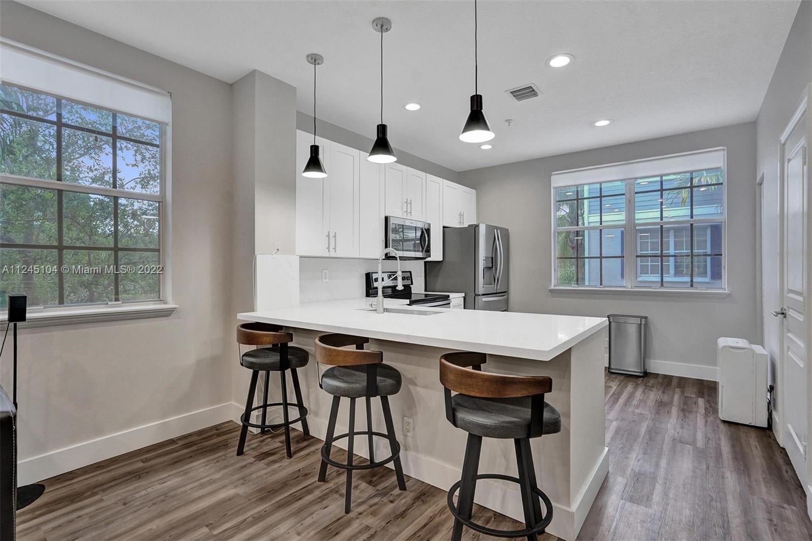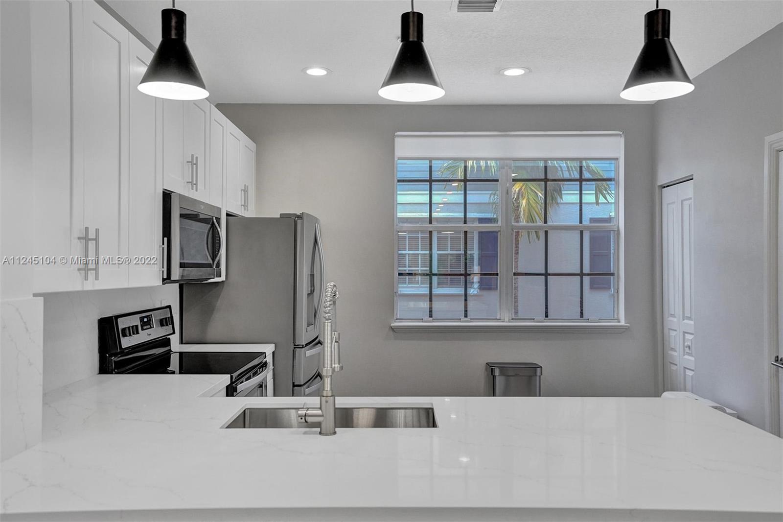 ***COMPLETLEY RENOVATED CORNER UNIT*** Rarely Available, 2 Bed+Den/Office/Guest Room, 2.5 Bath, 1 Car Garage, East Village Townhome@Flagler Village: Remodeled Kitchen, White Shaker Cabinetry, Quartz Countertops, Stainless Steel Appliances, Pantry, Serving Bar, Spacious Master Suite, Walk-in California Closets, Custom Vanities, Modern Lighting & Mirrors, Frameless Glass Shower Enclosure, Custom Millwork, Designers Plank Flooring, Smart Home Technology, Generous Guest Room, Private Balcony and more... Residents Enjoy Gated Security, Recently Updated Community Pool and BBQ. Association Includes Exterior Maintenance, Landscaping, Insurance and Alarm Monitoring. Convenient to World Class Shopping, Dining, Entertainment, Travel, Las Olas Riverfront & Beaches. ***Available Fully Furnished***