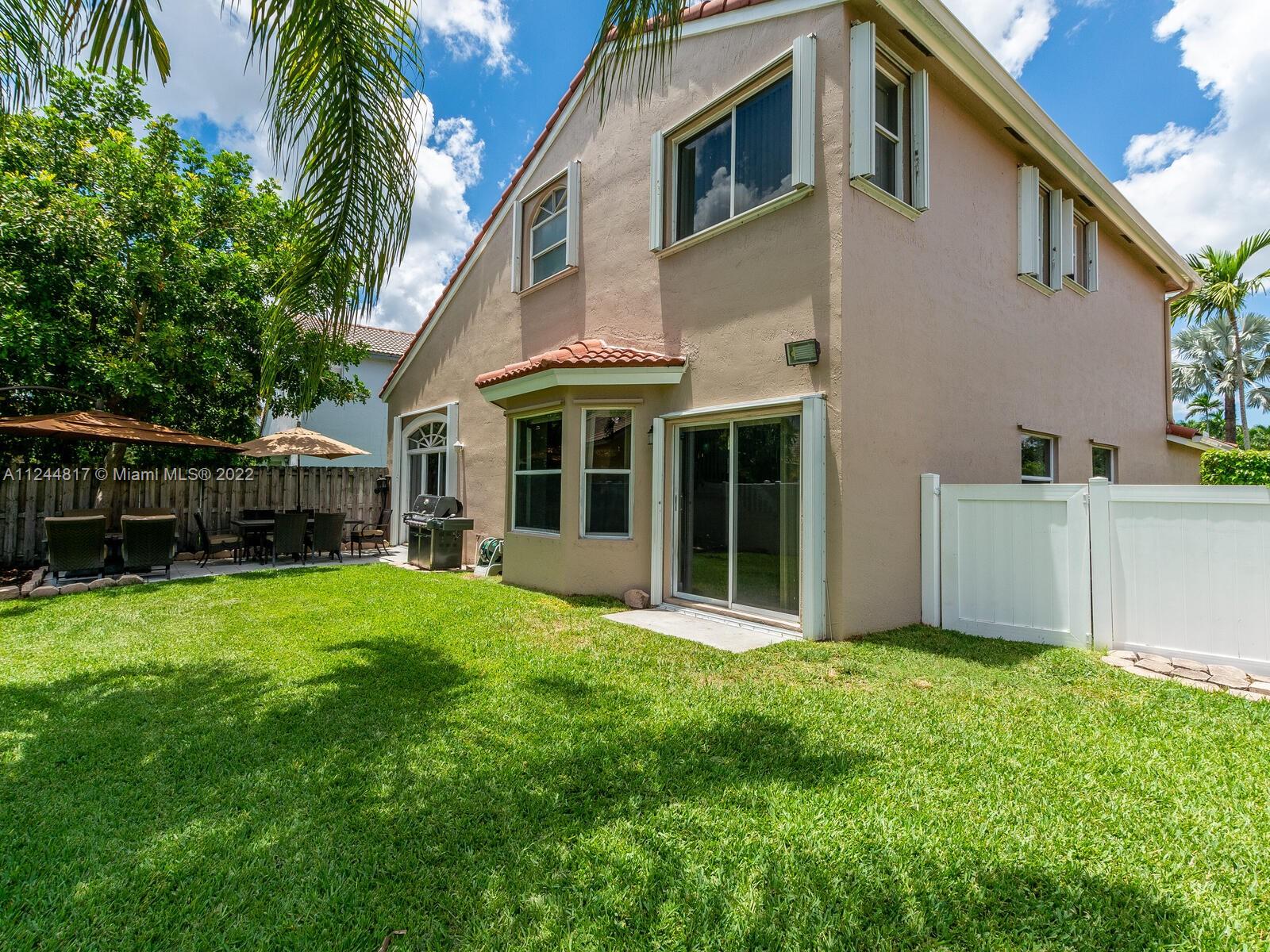 Located in sought after Kensington at Chapel Trail, this beautiful 4 Bed, 3 Bath "Fairgate Model" features a full bedroom and bath downstairs. Upon entry, an airy living/dining room greets you. Large open kitchen offers solid wood cabinets, new stainless-steel appliances, dual sink, and granite countertops. The entire downstairs living area features tile flooring. Retreat upstairs into your spacious primary bedroom that offers en-suite bathroom w/ dual sink vanity & an alcove soaking tub. Feel safe with your private fully fenced backyard with fruit trees, and plenty of yard space to host barbecues or other family gatherings. Maximize insurance discounts with the 2011 roof and accordion hurricane shutters. A rated Pembroke Pines Schools, and walking distance to Chapel Trail Elementary!