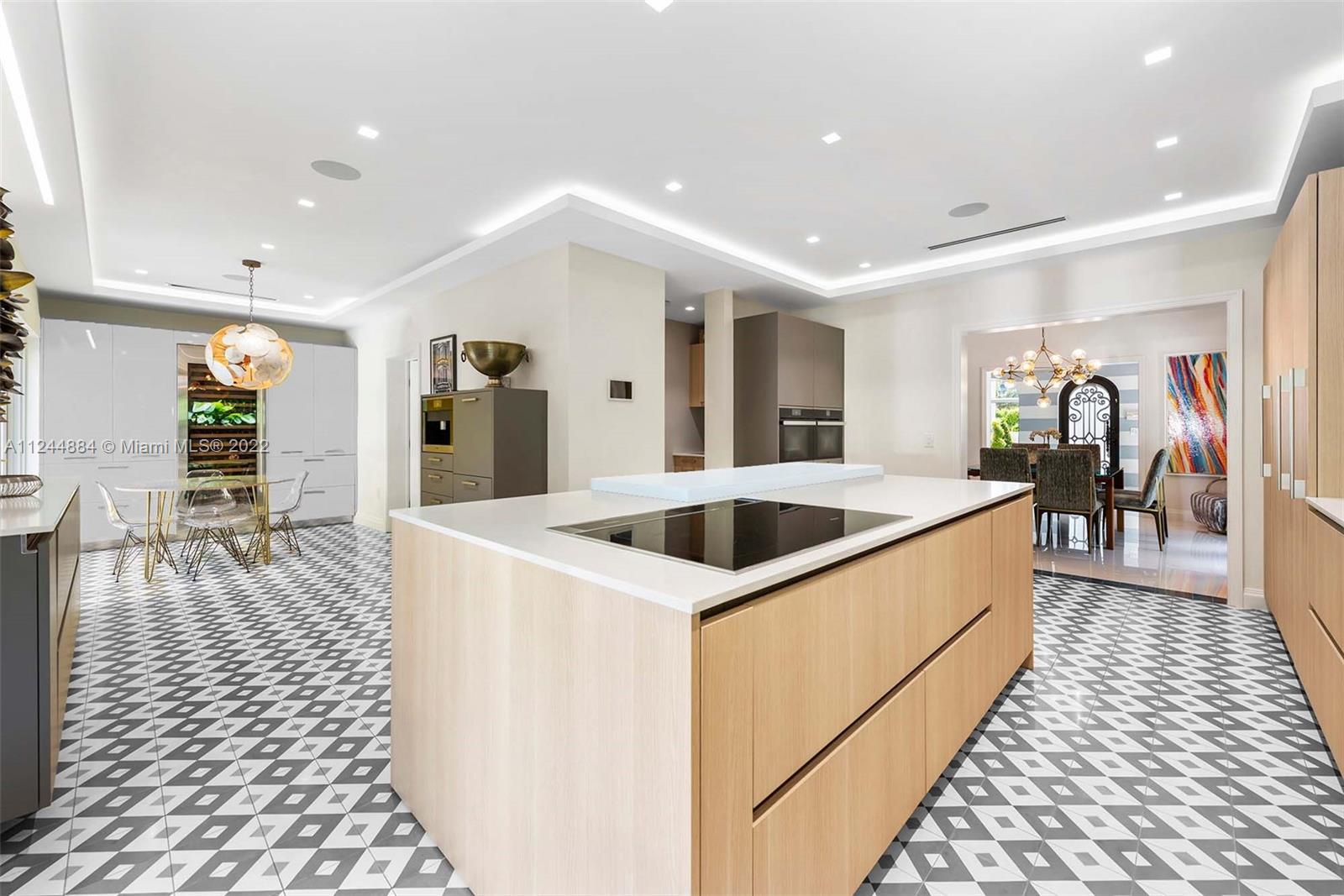 This fully remodeled, modern, 2-story, 5-bed/3.5-bath home exudes luxury. Standout details of this AKP Interior Design finished home include classic arched doorways and windows, formal dining room, large Arrital Italian kitchen w/ 100-bottle wine cooler and Miele and SubZero appliances, butler’s pantry, home theater and decorative light fixtures. A large living room, media room and spacious backyard w/ pool, alfresco dining and summer kitchen make this home ideal for entertaining. Huge master bedroom w/ generous walk-in closet and marble bathroom creates an opulent atmosphere. This Smart Home features Crestron home lighting, 5 music zones, mosquito system and security cameras. Live your best life w/ the beach, La Gorce Country Club and world class dining within minutes.
