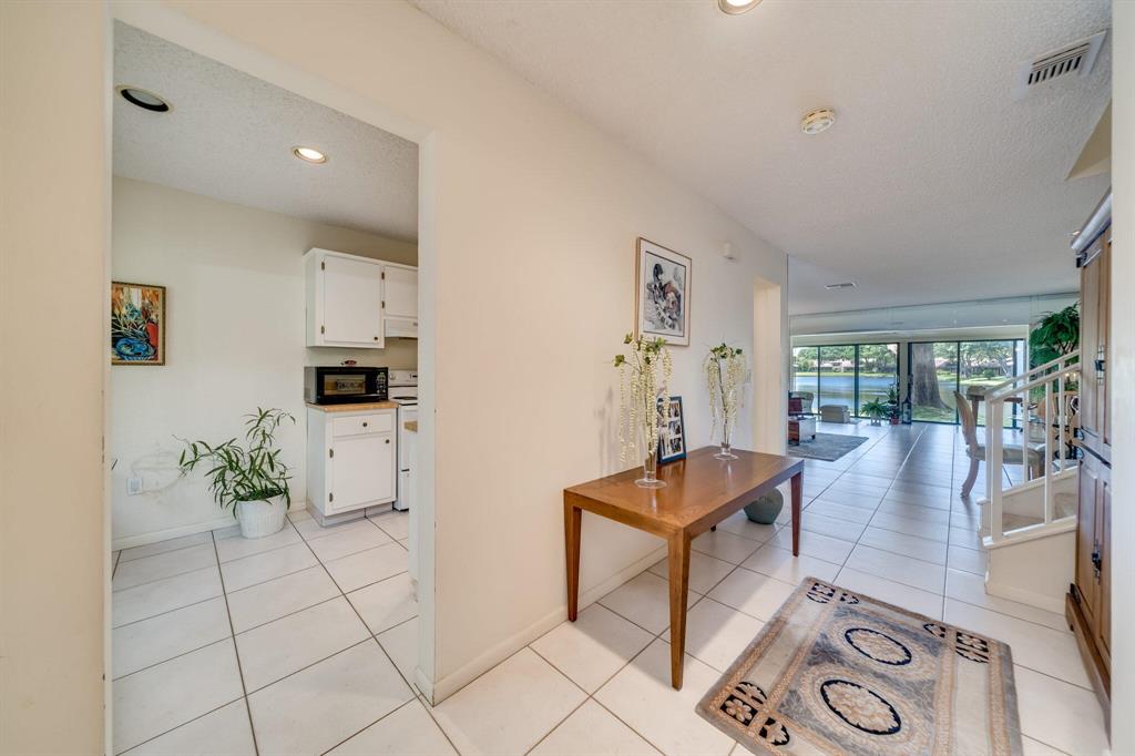 This view says it all! Wow!! Beautiful two story townhome with expansive lake views. Extended living room with floor to ceiling slider windows, and tranquil views from sunny Florida room. Ceramic tile flooring downstairs, carpeting on stairs/upstairs. 2 master suites!! Both bedrooms have their own private bathrooms. Stackable washer dryer inside & brand new roof! This unit is meticulously well maintained and feels like a spacious private home with over 1400 square feet!! Beautiful resort style community pool. Country club membership available but not mandatory.Boca glades is a 55 plus community.Association says 20% down if financing.One pet under 25 pounds allowed.Close to shopping, restaurants, and turnpike, location is ideal.
