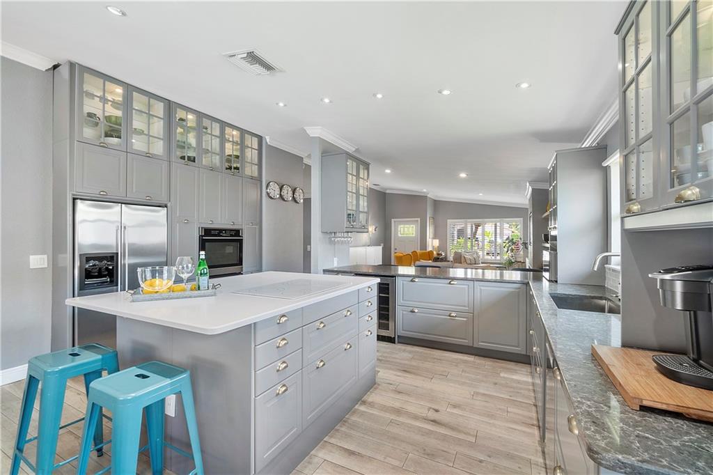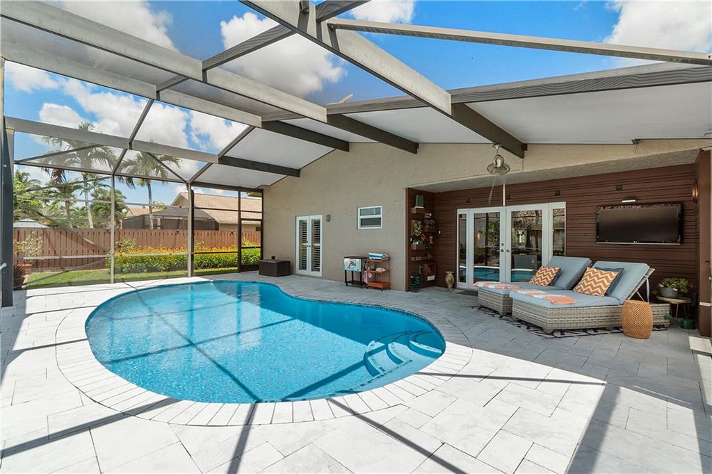 Parkwood Masterpiece w/Incredible English-Style Gardens! No detail is spared in this meticulously maintained, stunning, bright, spacious updated 3BR, 2BA, 2CG, screened pool home w/marble pool deck, lrg private fenced backyard w/Tiki Hut for extended covered space! Contemporary Home feat: Open Flr Plan, Impact Wind & Doors 2018, Vaulted ceilings, LED high hats lighting & crown molding throughout, wood-look Tile Flooring throughout, upgraded baths, chefs kitchen w/custom cabinets, & oversized island, quartz counters, SS appl, wine cooler, double oven, bosch dishwasher & tons of storage. Large Laundry Room, Nest Thermostat, Tankless WH, wood shutters, 5 1/4 baseboards, Lrg Primary BR w/walk-in closet & French doors that lead to pool/patio area. Roof 2007, A/C Aug 2021! LOW HOA FEE $83/Mo.+++