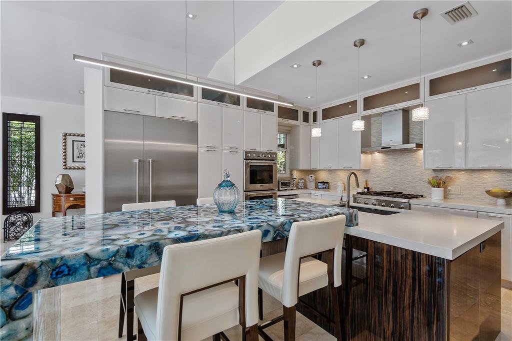 Sensationally renovated with exceptional materials waterfront Villa located in the desirable Las Olas neighborhood of Idlewyld. Deepwater ocean access with no fixed bridges and minutes to the inlet. Chefs kitchen with custom kitchen cabinets, six burner gas cooktop, double ovens, beverage center, two ice makers, 100 bottle wine refrigerator, all centered around a stunning blue Agate island. Bright, open and airy living spaces view the resort style pool and canal. Generous scaled primary bedroom views the water and has a sitting/desk area. Renovated primary bath has vaulted ceilings and a beautiful stone accent wall. This well maintained three bedroom plus den home has been updated throughout. Walking distance to the ocean, restaurants and entertainment.