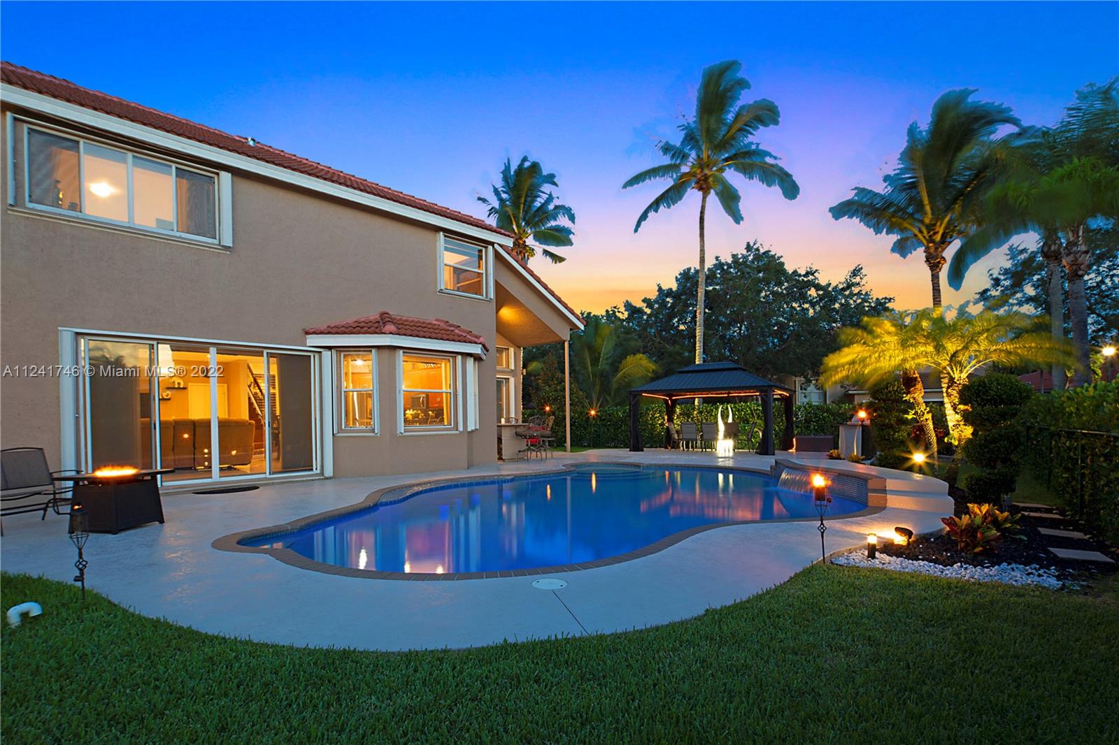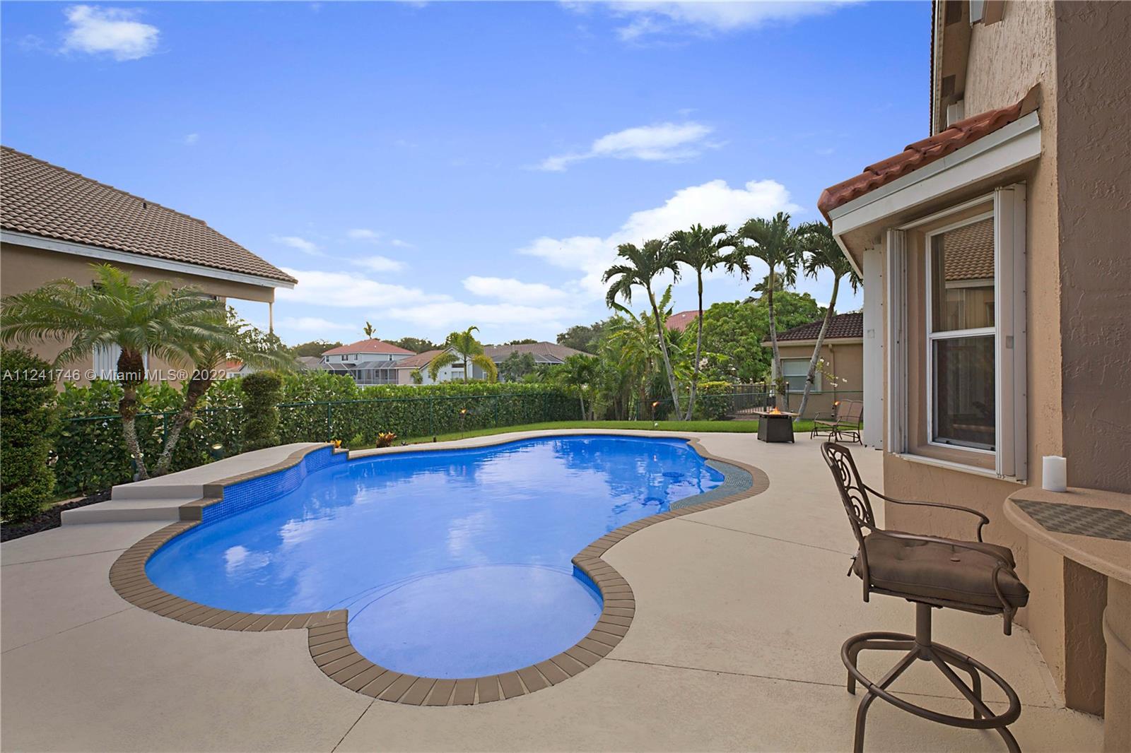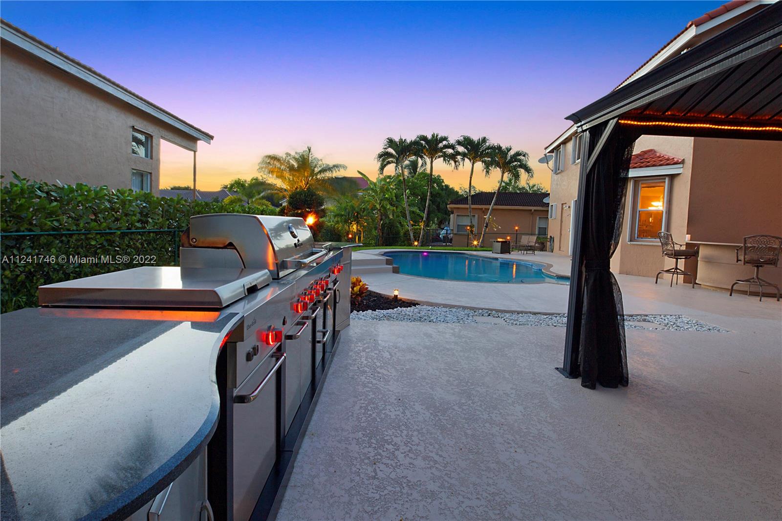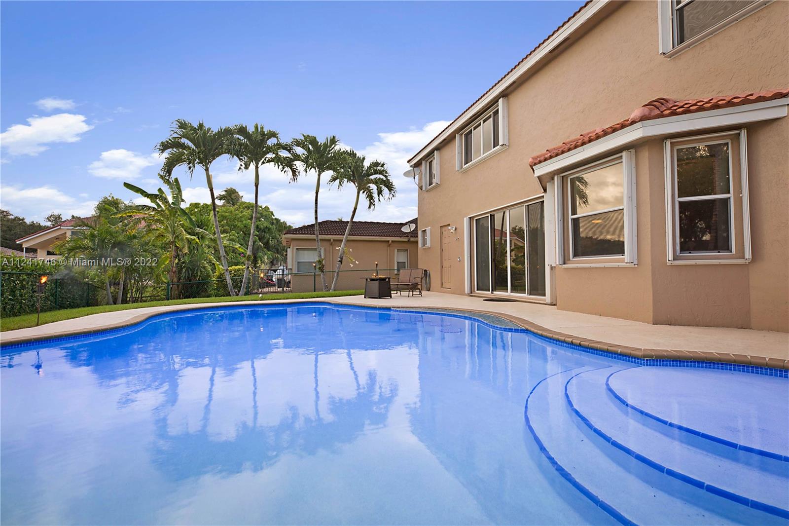 Located in the highly sought-after community of Yardley Estates this incredible home is situated on a large corner lot w/ professional landscaping, mature trees, 3 car garage w/ paver driveway that leads you to your dramatic and striking entry way. Once you enter through the front doors your greeted by the volume ceiling, natural light & stunning view to your entertaining backyard. This home features long water view & backyard faces west for incredible sunsets. Enjoy your gazebo, portable summer kitchen w/ grill, refreshing pool w/ swim up bar & seating, outdoor shower, landscaping lighting, fenced yard & more! Inside features 5 bedrooms 3 baths (1 bed & bath located downstairs) owner's suite & all other beds upstairs. New roof, Accordion Shutters, walkable to great schools, parks & more!