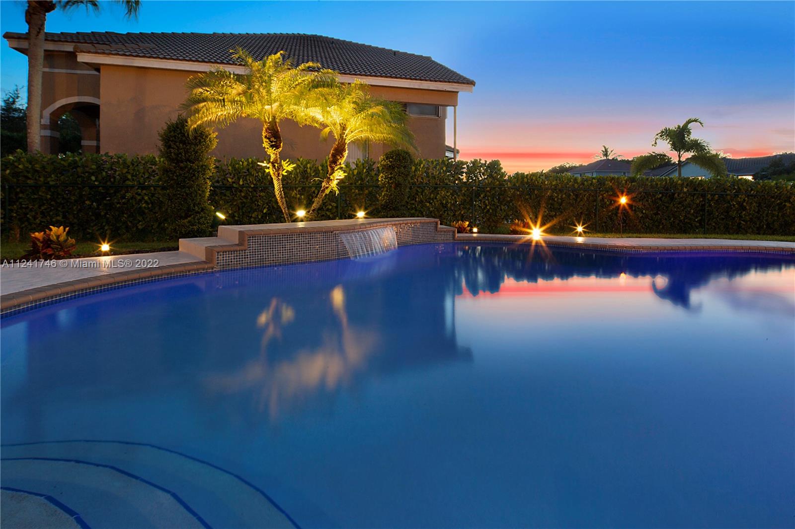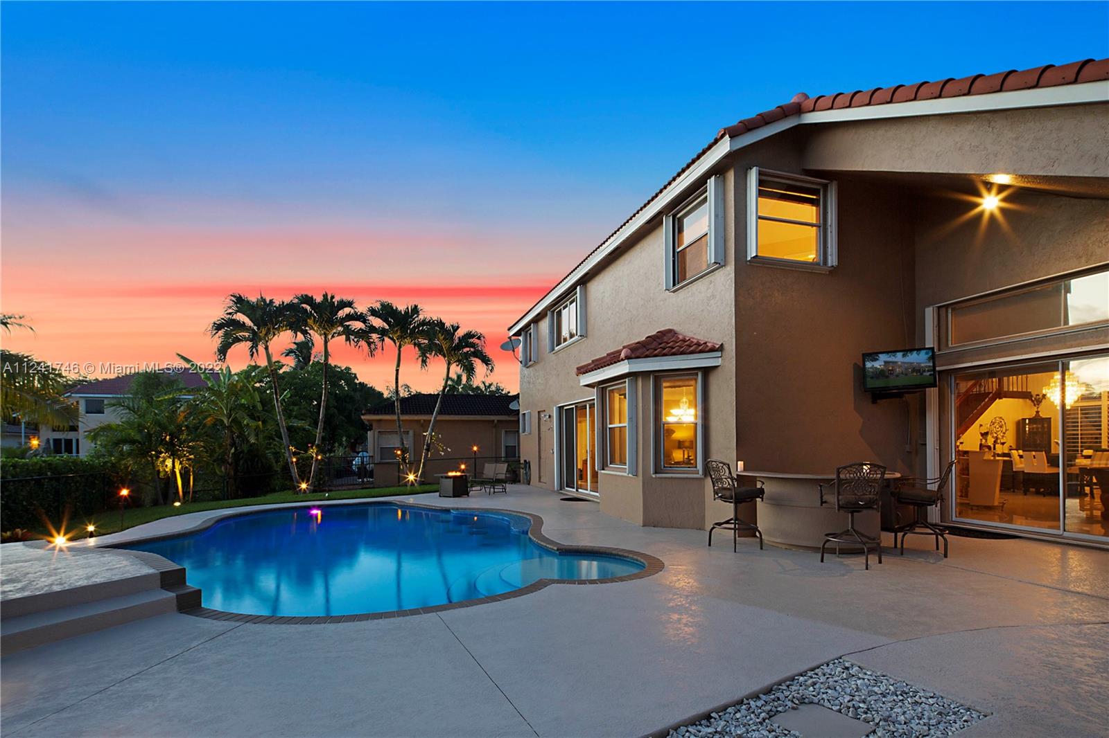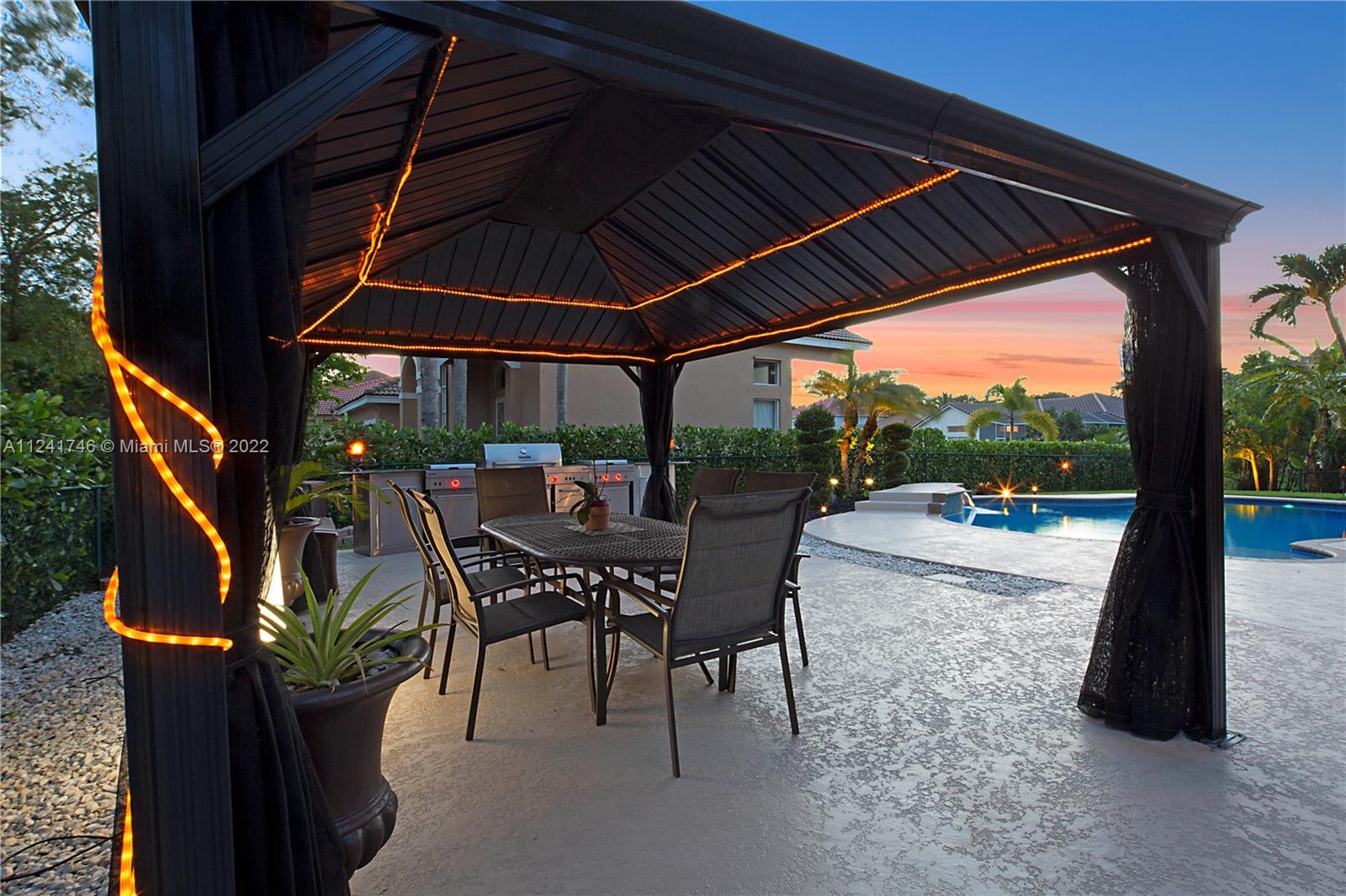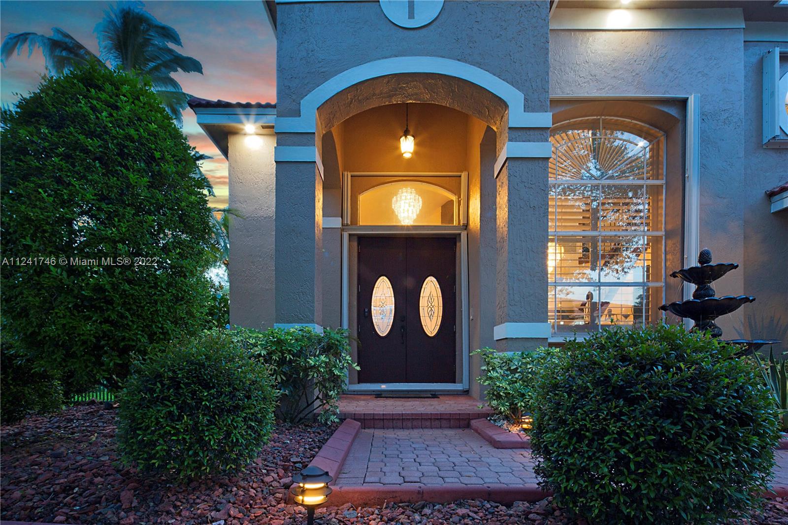 Located in the highly sought-after community of Yardley Estates this incredible home is situated on a large corner lot w/ professional landscaping, mature trees, 3 car garage w/ paver driveway that leads you to your dramatic and striking entry way. Once you enter through the front doors your greeted by the volume ceiling, natural light & stunning view to your entertaining backyard. This home features long water view & backyard faces west for incredible sunsets. Enjoy your gazebo, portable summer kitchen w/ grill, refreshing pool w/ swim up bar & seating, outdoor shower, landscaping lighting, fenced yard & more! Inside features 5 bedrooms 3 baths (1 bed & bath located downstairs) owner's suite & all other beds upstairs. New roof, Accordion Shutters, walkable to great schools, parks & more!