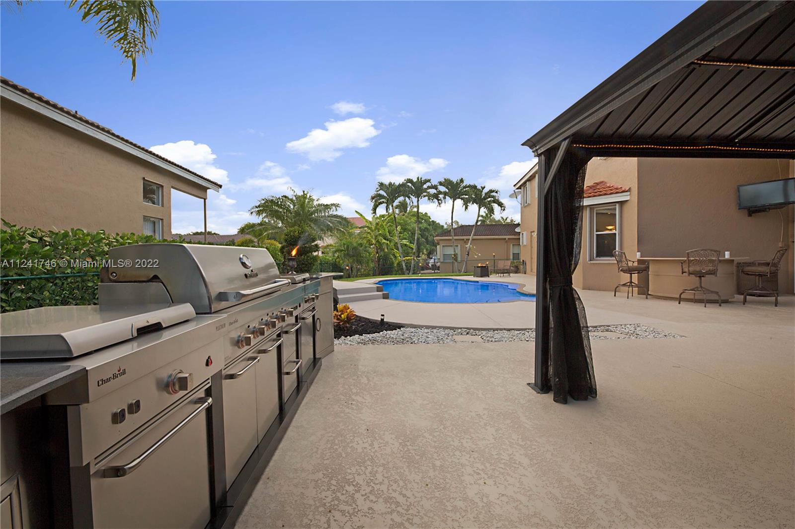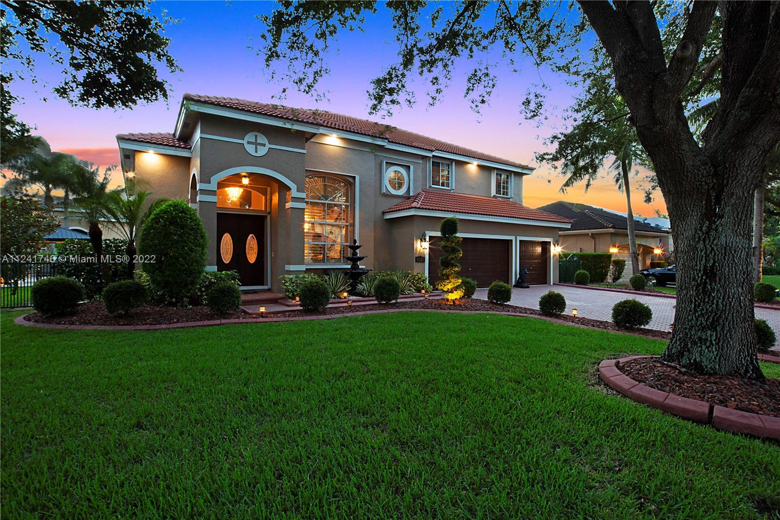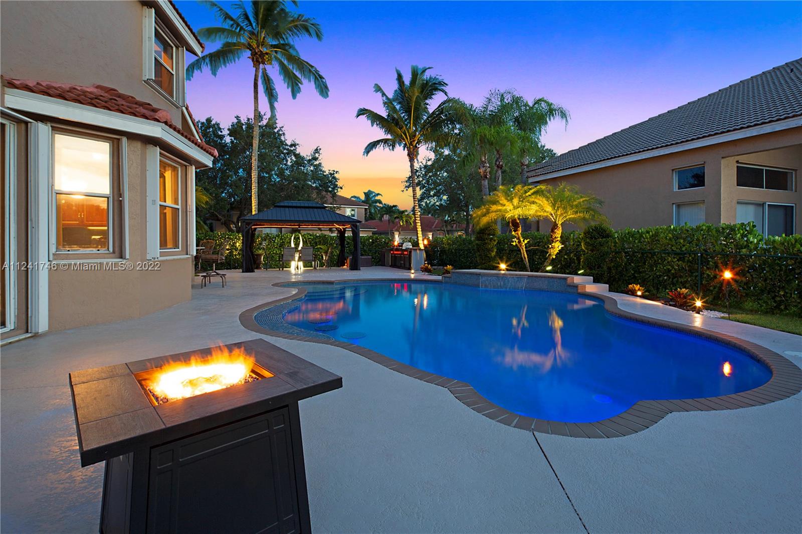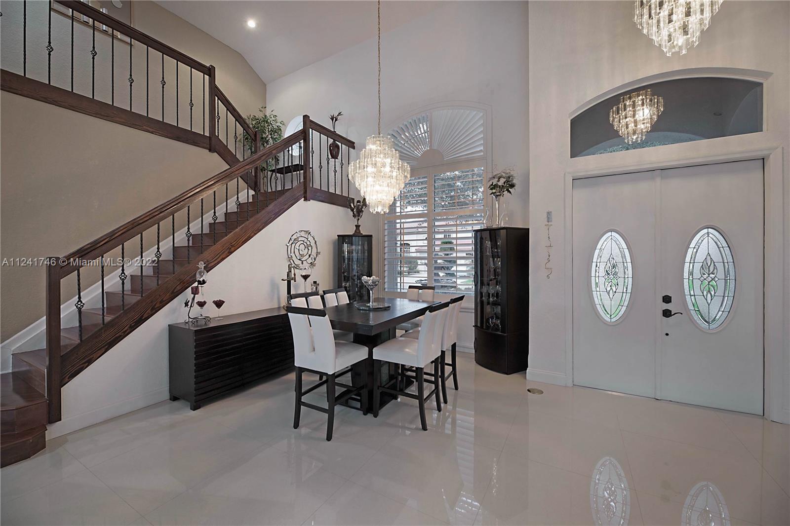 Located in the highly sought-after community of Yardley Estates this incredible home is situated on a large corner lot w/ professional landscaping, mature trees, 3 car garage w/ paver driveway that leads you to your dramatic and striking entry way. Once you enter through the front doors your greeted by the volume ceiling, natural light & stunning view to your entertaining backyard. This home features long water view & backyard faces west for incredible sunsets. Enjoy your gazebo, portable summer kitchen w/ grill, refreshing pool w/ swim up bar & seating, outdoor shower, landscaping lighting, fenced yard & more! Inside features 5 bedrooms 3 baths (1 bed & bath located downstairs) owner's suite & all other beds upstairs. New roof, Accordion Shutters, walkable to great schools, parks & more!