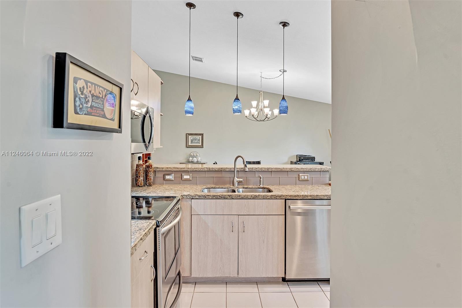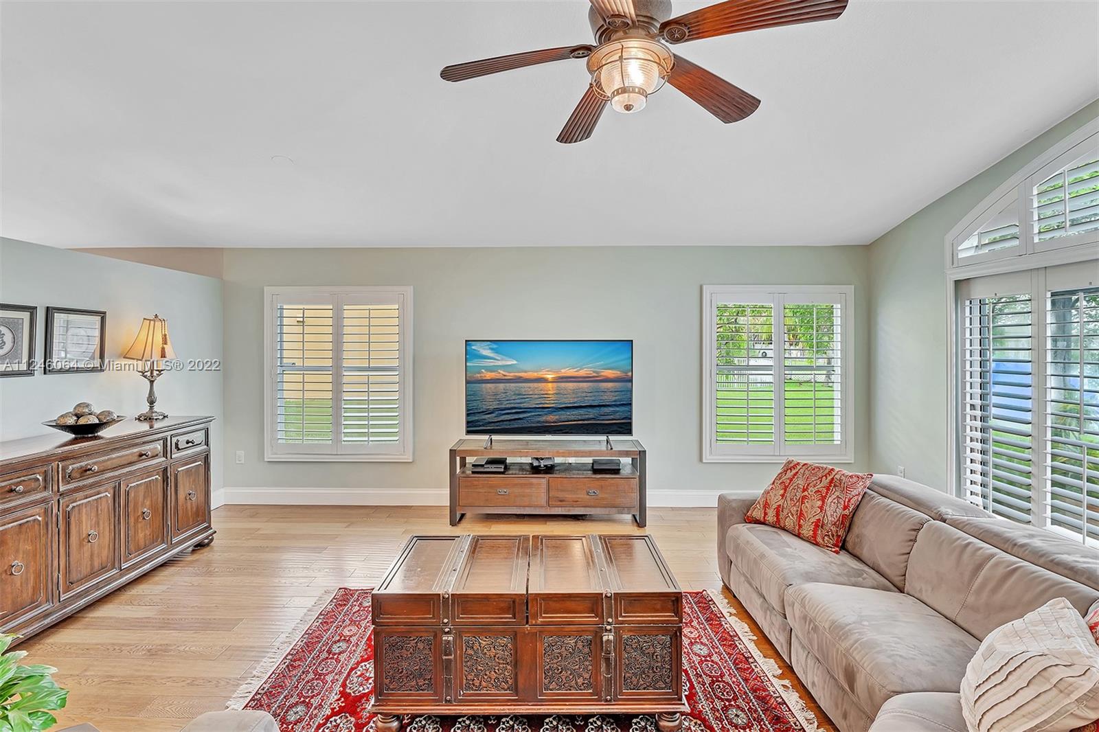 Enjoy tranquil long lake views and relax underneath your pergola while taking in the breathtaking sunsets from this charming 3 bed/2 bath home set on the private oversized 9535 sq ft lot. Enter through the foyer into the spacious main living area which overlooks the generous yard and water vistas. This room is perfect for family gatherings and features vaulted ceilings, Plantation shutters and wood flooring. The kitchen boasts granite counter tops, glass subway tile backsplash, pendant lighting, snack bar and large pantry. This opens to the more intimate family area. Split bedroom floor plan with the master bedroom taking advantage of the beautiful views. ROOF 2019. Hurricane shutters. Maintenance includes basic Comcast cable w/HBO and internet. Must see to appreciate!