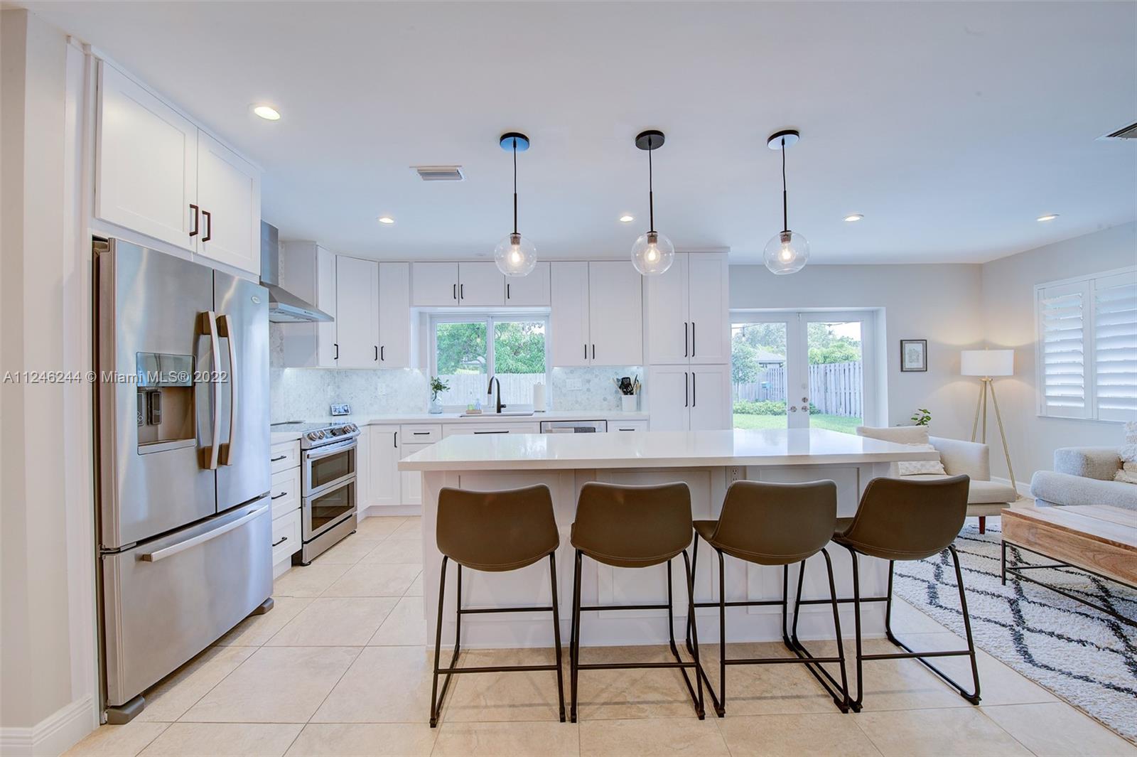 WELCOME HOME! Come step inside this BEAUTIFUL home in the desirable neighborhood of El Dorado Estates in Plantation. All your wants & needs checked will be checked off! FULLY REMODELED! This 3/2 + 2 car garage pool home comes with a spectacular open & bright layout. You are greeted by water views of the pool from the very moment you step inside. New ceramic floors throughout the home along with Plantation shutters on windows. The newly renovated fresh & clean kitchen with white cabinetry, white quartz countertops & tiled backsplash is perfection! All HURRICANE IMPACT windows/doors. BRAND NEW WATER HEATER. Freshly painted both interior & exterior. Primary bedroom comes with custom built in closet, double french doors that lead to your patio. All updated bathrooms! Low HOA! MUST SEE!