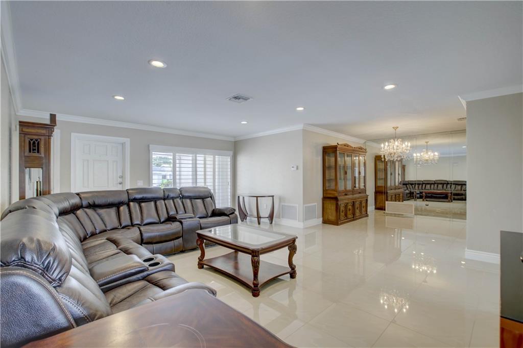 Beautiful 3/2 + 2 car garage featuring a stunning pool and lake views! Kitchen and bathrooms renovated within the last 5 years. Granite countertops. Stainless Steel Whirlpool appliances in the kitchen and laundry room. Master bathroom equipped with dual sinks, Delta showerheads and a Homewerks lighted bluetooth fan/speaker. Secondary bathroom has Moen appliances and a touch screen LED mirror. Beautiful tile floors throughout the house and Plantation Shutters on all windows in the main living area (approx 5 years old). Pool renovated- Marcite and Travertine deck replaced approx 6 years ago. Accordian shutters for all windows and hurricane windows in the kitchen. Roof approx 6 years old. 3.5 ton American Standard AC replaced in 2019. Newer electrical panel. NO HOA