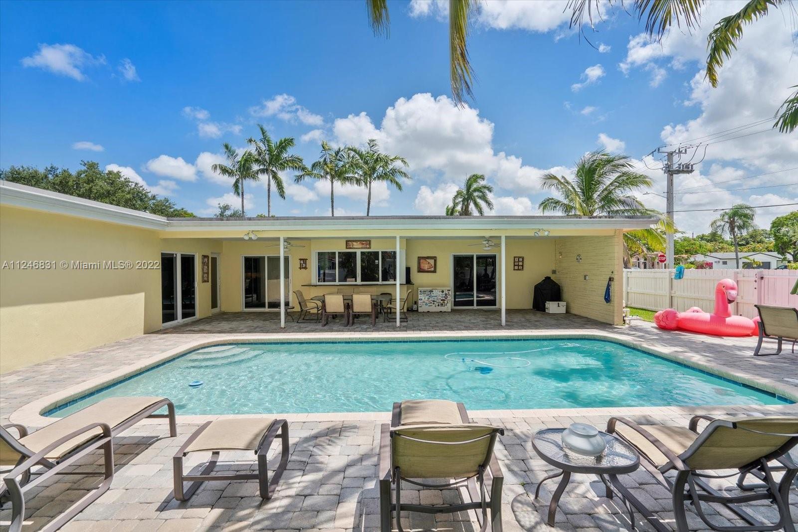 READY TO MOVE IN. Get ready to relax in this beautifully updated 4 Bedroom/2 Bathroom on a large corner lot. All of the upgrades are done, it’s ready to enjoy. Relaxation awaits on the oversized paver pool deck and patio. The saltwater pool is surrounded by lush tropical palm trees. There is plenty of room for your boat or RV on the additional 46’x13’ paver boat/RV pad (side street entry). Gorgeous Dining Room with cabinets, granite, and wine cooler. Kitchen has been totally upgraded with granite counter tops, appliances, and marble top on island. Both bathrooms and all flooring has also been beautifully done. All impact windows and doors. Roof (2015). A/C Central (2018). Garage cabinets and epoxy floor. Electrical Service updated. Samsung Washer and Dryer.
