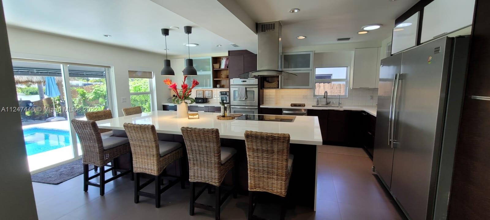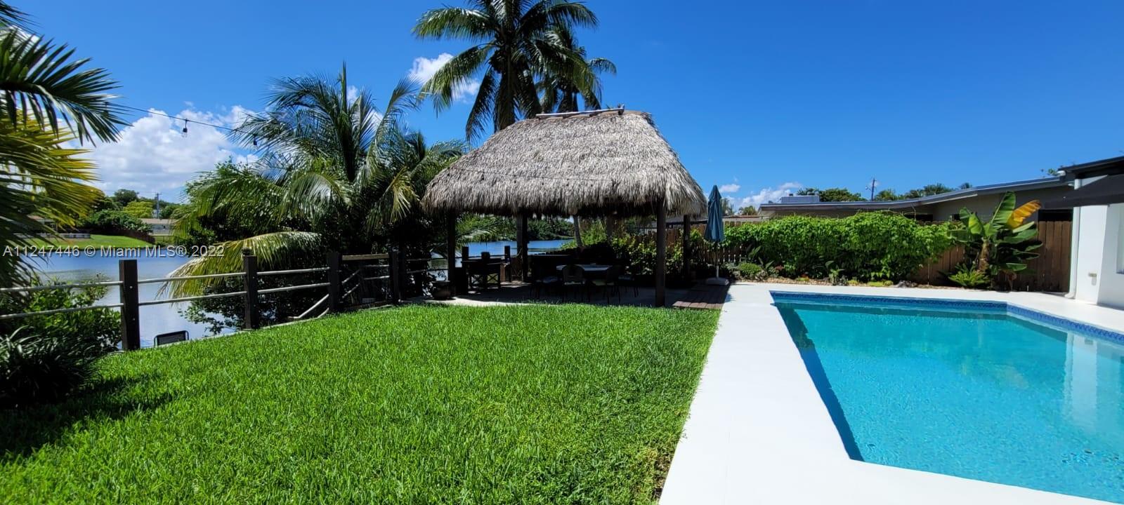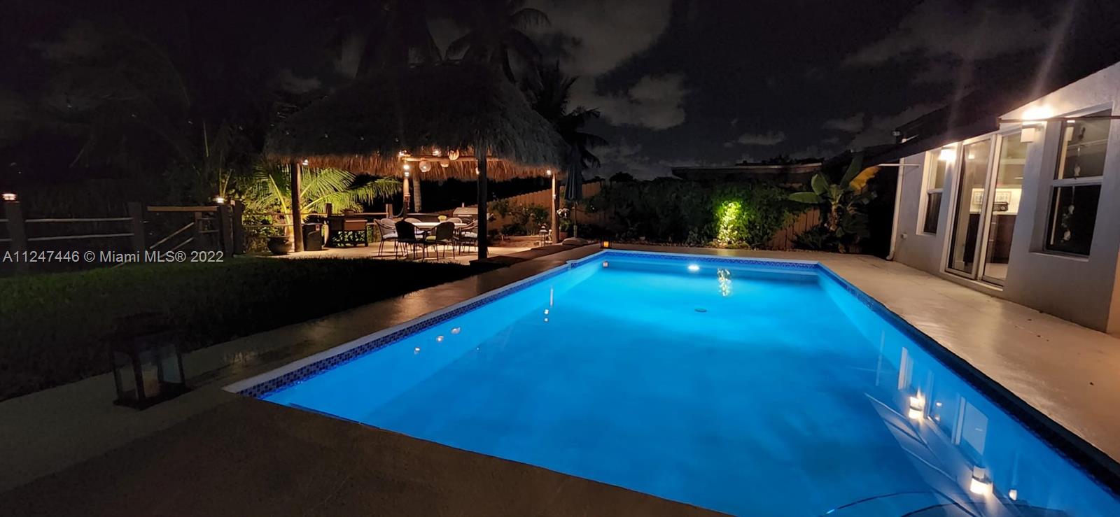 Welcome to your dream home! Beautiful and bright single home in Enchanted Lakes. Full size pool surrounded by a meticulous illuminated landscape with a lake view and steps to a basketball court and your own private "Tiki" with a BBQ. Perfect for entertainment day and night! Inside this green built home you will find spacious and confortable living and dining area, small office space, a huge kitchen with a built in counter top for all family to enjoy, with induction cooktop. 5 bedrooms and 3 full bathrooms; led lightning and natural light all over this house. Electric curtains in living and main bedroom. Tesla vehicle charger. Enjoy the lake view from your own private dock; from this lake you can get all the way to the ocean. 2 AC Units and 3 electric water heaters.