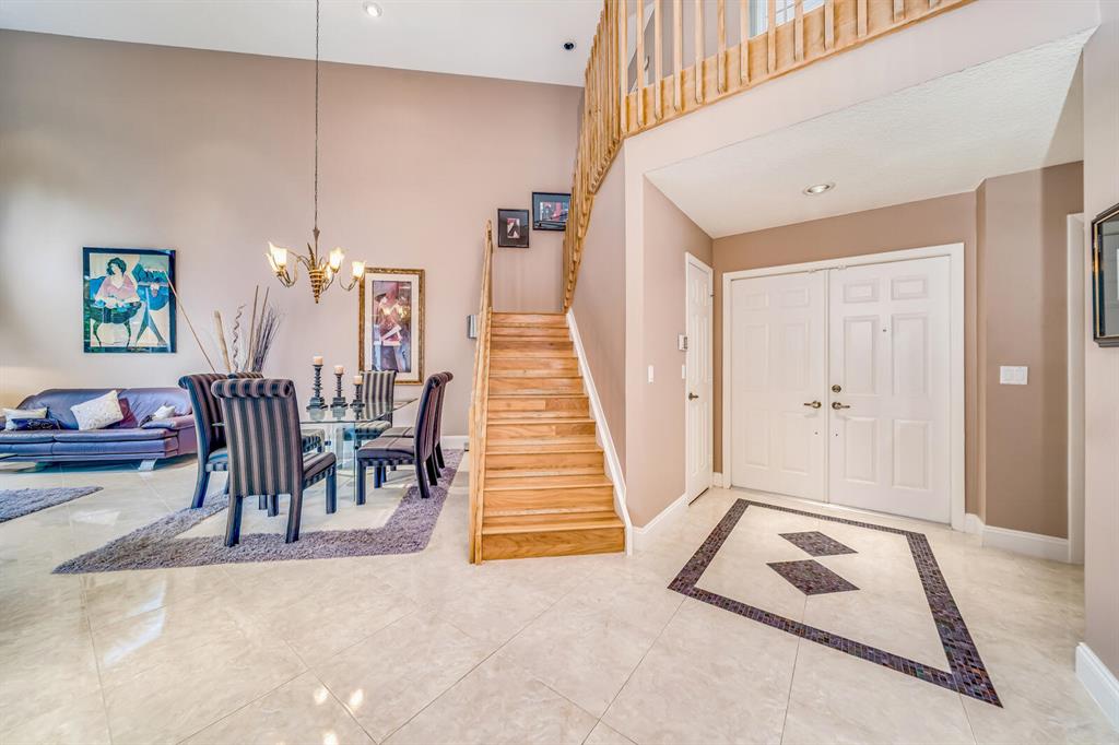 Dramatic entrance w/soaring 2 story high volume ceilings & picturesque wall of windows that flood the inside w/natural light. Enjoy the sense of openness, volume & space. Fabulous foyer w/glass tile mosaic inlay. Porcelain tile downstairs & real wood floors on staircase & loft area. Newer plush carpet in 2 upstairs bedrooms. Tons of recessed lighting. Featuring 3 spacious bedrooms plus big loft area, 1st floor master suite w/two walk-in fitted closets, master bath w/ double sink vanity, soaking tub and step-in shower. 2 additional bedrooms upstairs w/Jack & Jill bathroom PLUS a Huge loft upstairs that could be used for office or playroom area. Everything is oversized...Huge living & dining room...plus family room off the large gourmet eat-in kitchen which features granite countertops.
