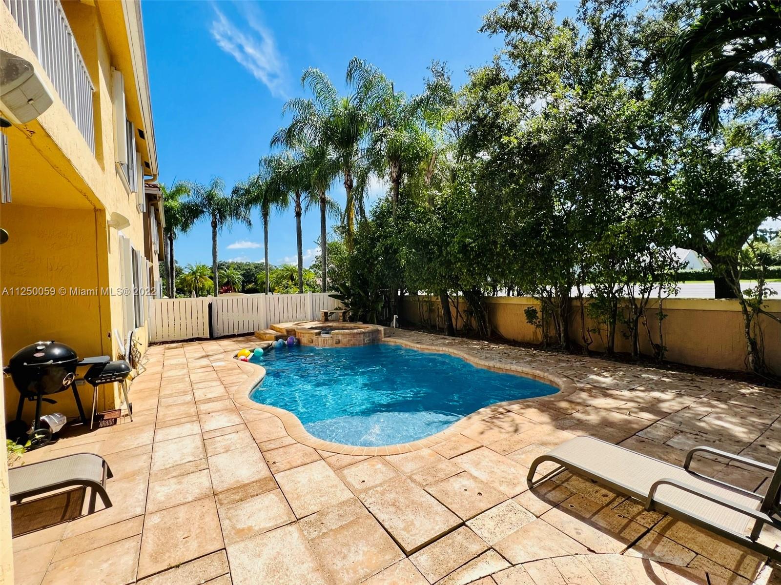 MOVE IN READY! High ceilings & an open, spacious layout. Beautiful kitchen & breakfast area opens to the family room with a stunning pool view. All 4 bedrooms are upstairs. Relax and entertain by the heated pool & spa, outlined by a stone deck. Pool features an automatic salt water chlorinator, heat pump, therapy jets, and LED lighting. Great location with nearby shopping & dining.