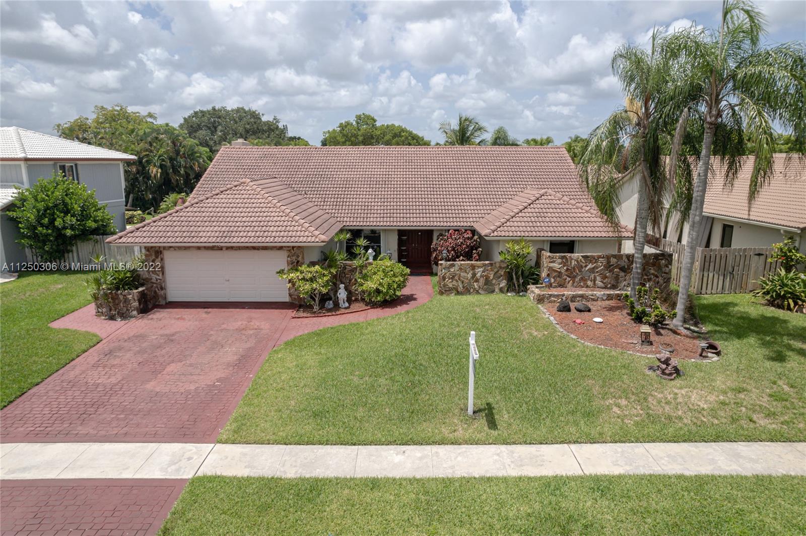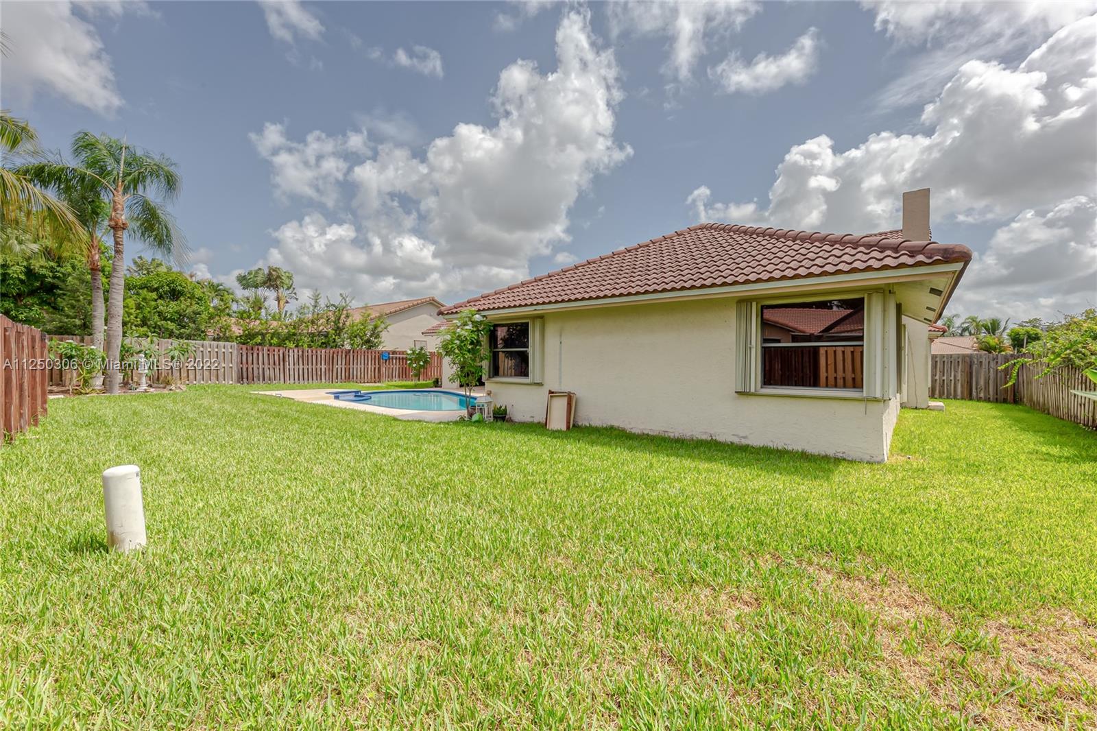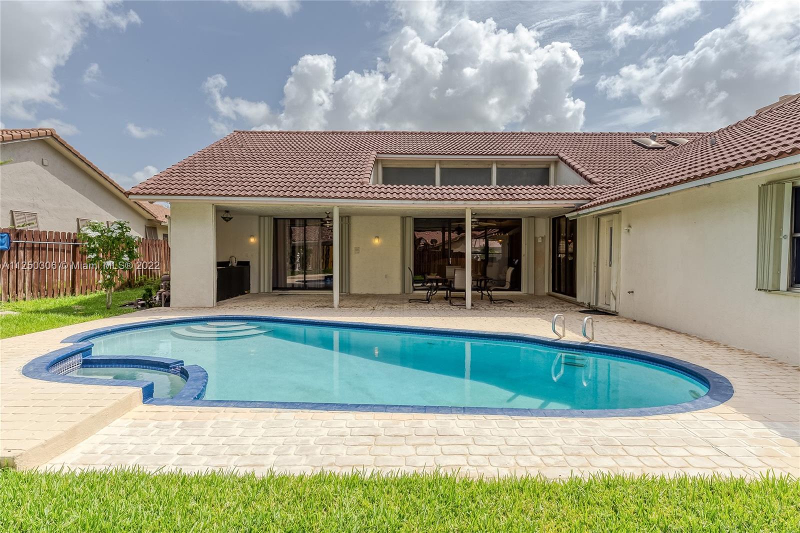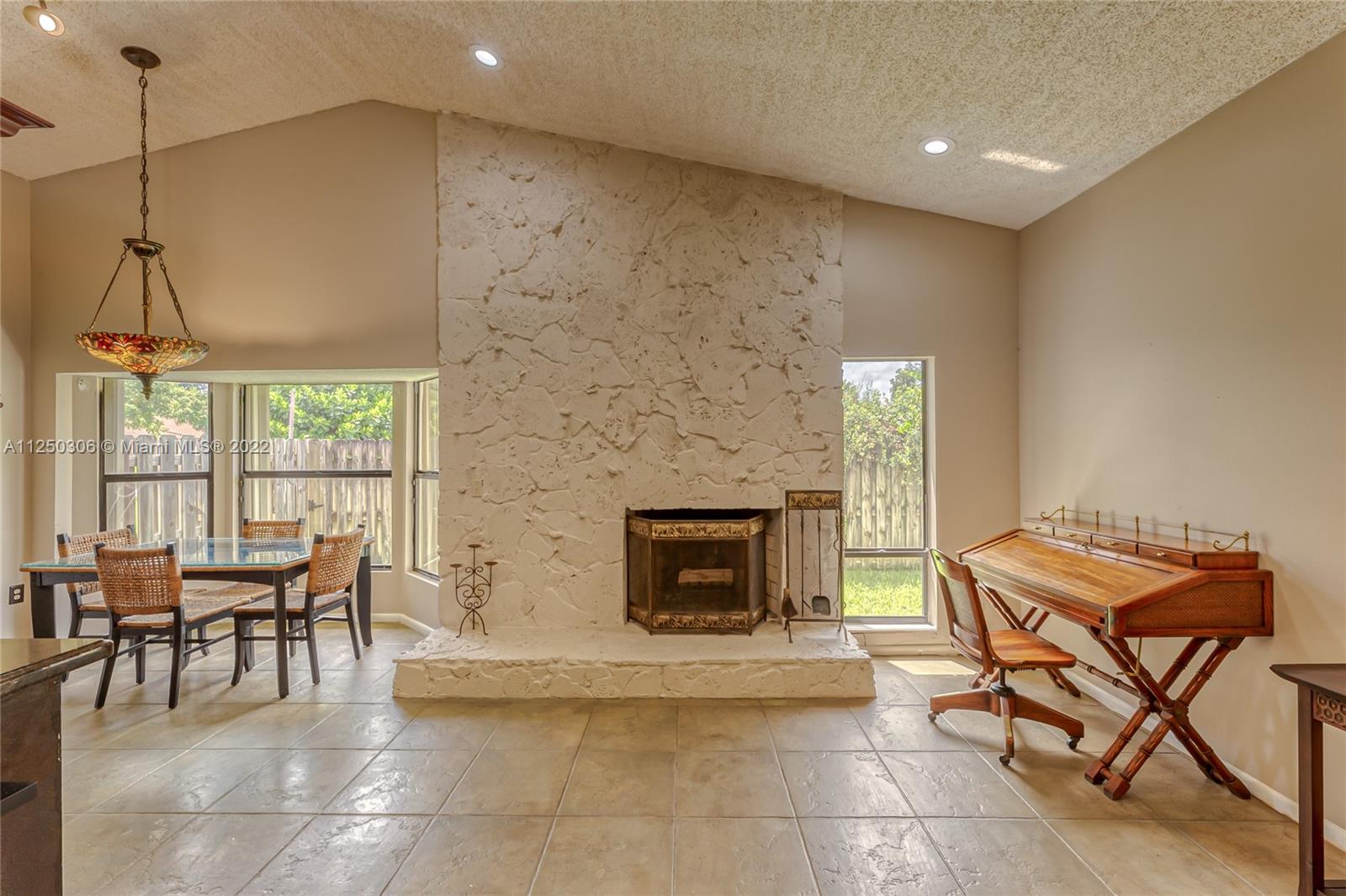 If you want space, you need to check out this 5-bed/2.5 bath (3052 sf total) pool home in desirable Jacaranda Lakes. This home offers an open, split floor plan with vaulted ceilings and natural light. New high hats. Roof 2008. Excellent working kitchen with stainless steel appliances, granite countertops, island cooktop, and wood cabinets. Spacious eat-in kitchen with bay window adjacent to the family room with a beautiful wood-burning fireplace. Pass through bar area for entertaining. Huge walk-in pantry. Large, fenced backyard with a free-form pool, plenty of room for family fun. Colored landscaping lighting. Paved driveway and deck area. Organized master closet. French office doors.Dual-zone air conditioners. Accordion shutters.Low HOA.Community playground and tennis courts.
