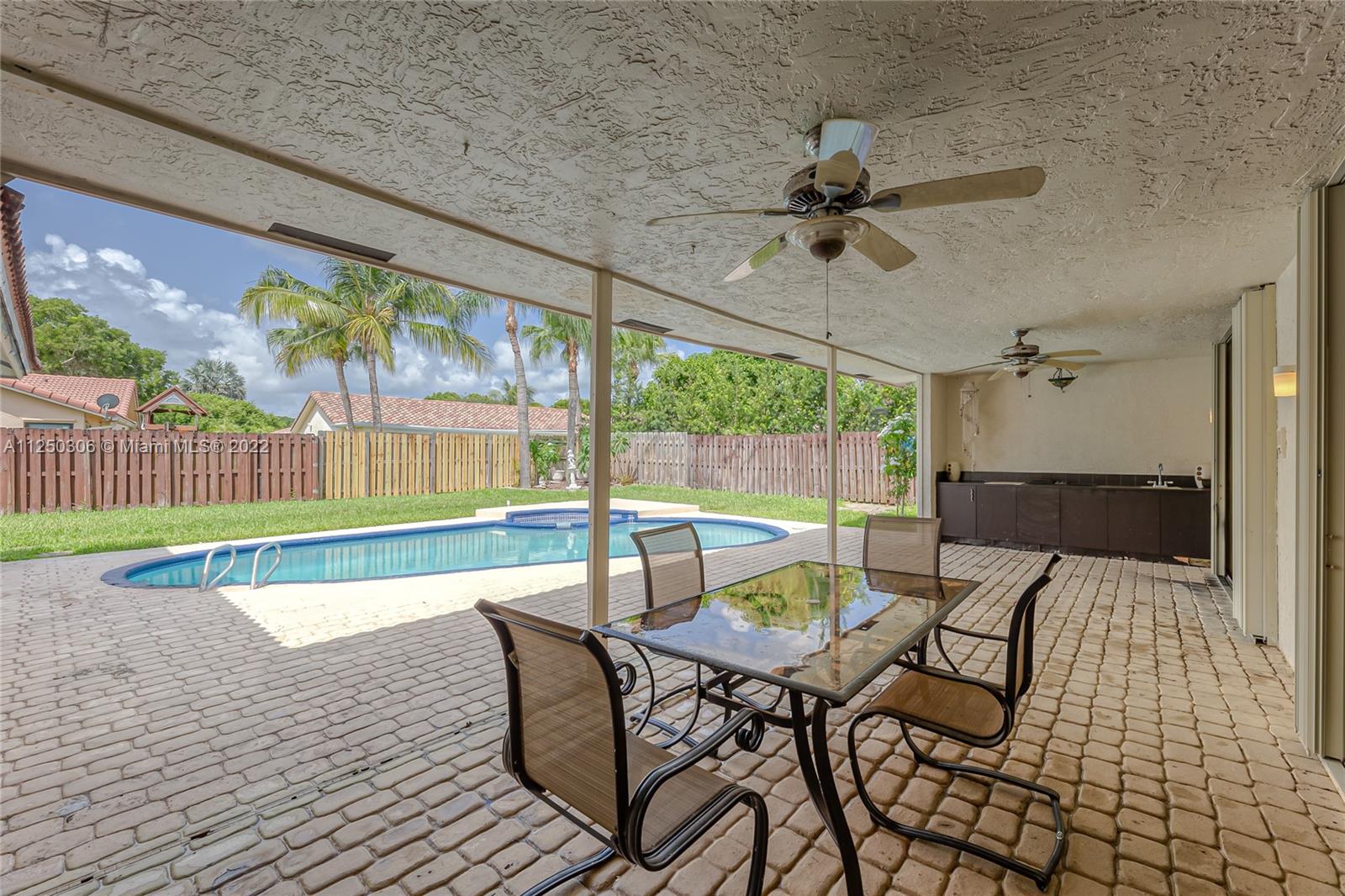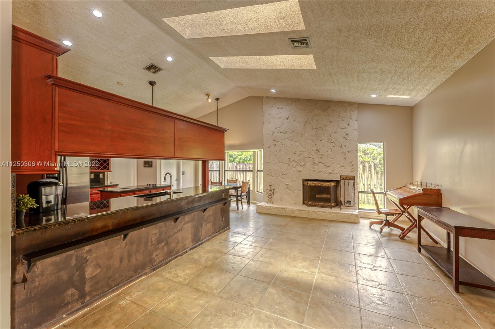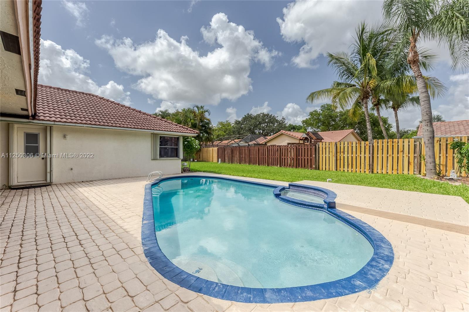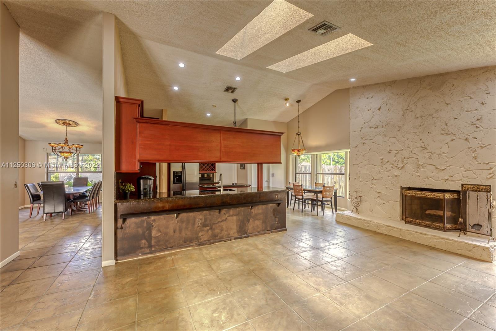 If you want space, you need to check out this 5-bed/2.5 bath (3052 sf total) pool home in desirable Jacaranda Lakes. This home offers an open, split floor plan with vaulted ceilings and natural light. New high hats. Roof 2008. Excellent working kitchen with stainless steel appliances, granite countertops, island cooktop, and wood cabinets. Spacious eat-in kitchen with bay window adjacent to the family room with a beautiful wood-burning fireplace. Pass through bar area for entertaining. Huge walk-in pantry. Large, fenced backyard with a free-form pool, plenty of room for family fun. Colored landscaping lighting. Paved driveway and deck area. Organized master closet. French office doors.Dual-zone air conditioners. Accordion shutters.Low HOA.Community playground and tennis courts.