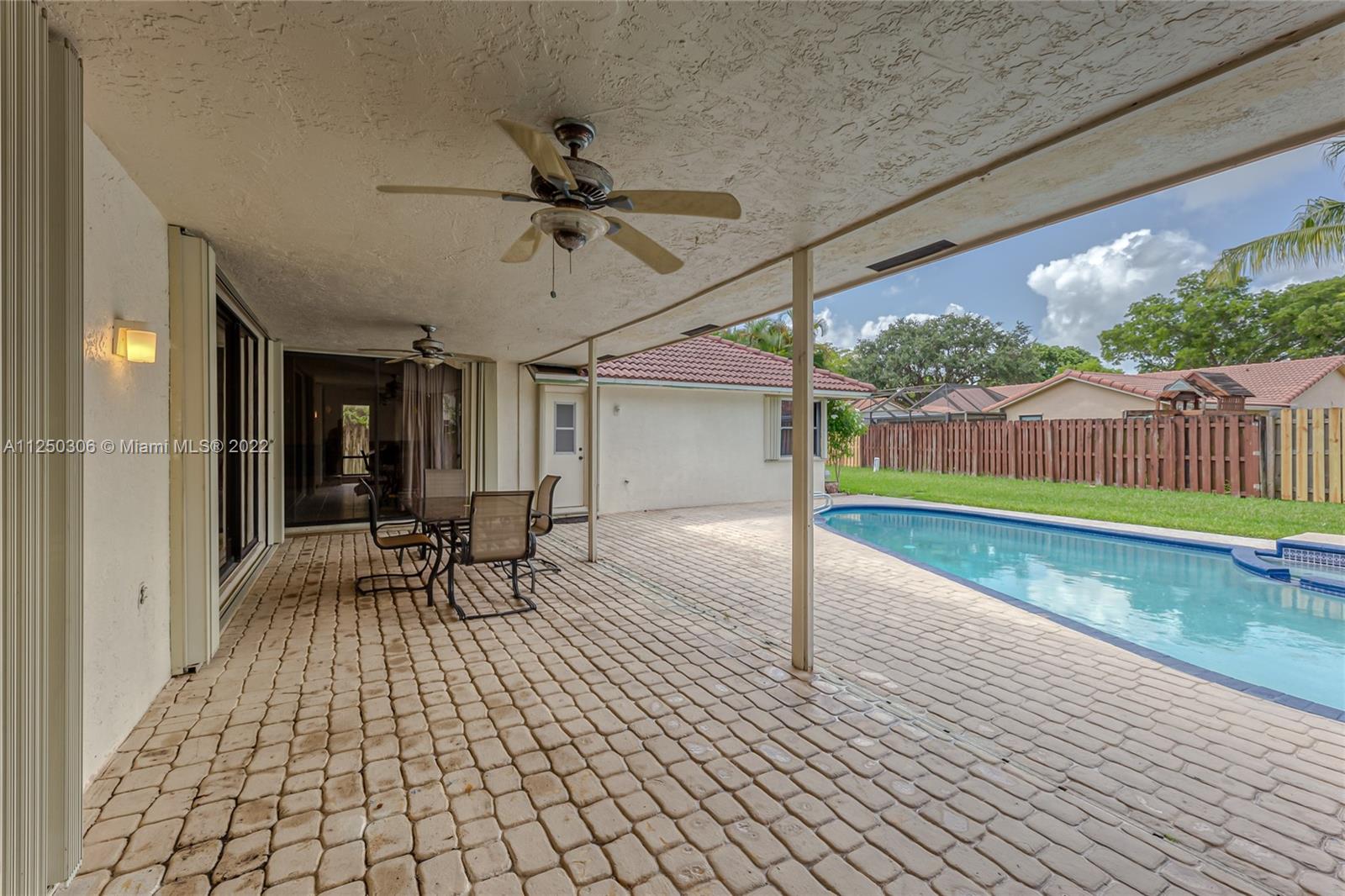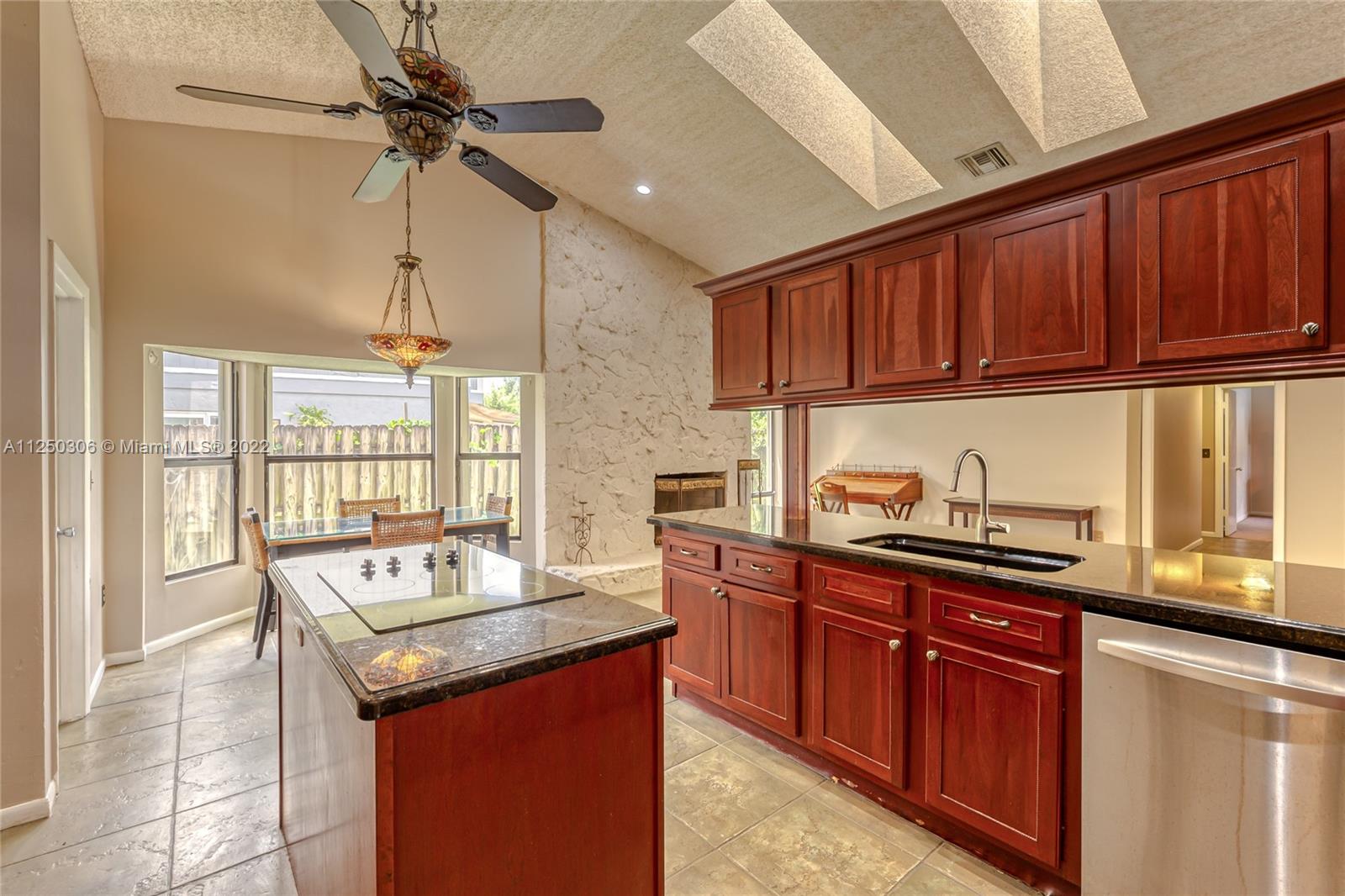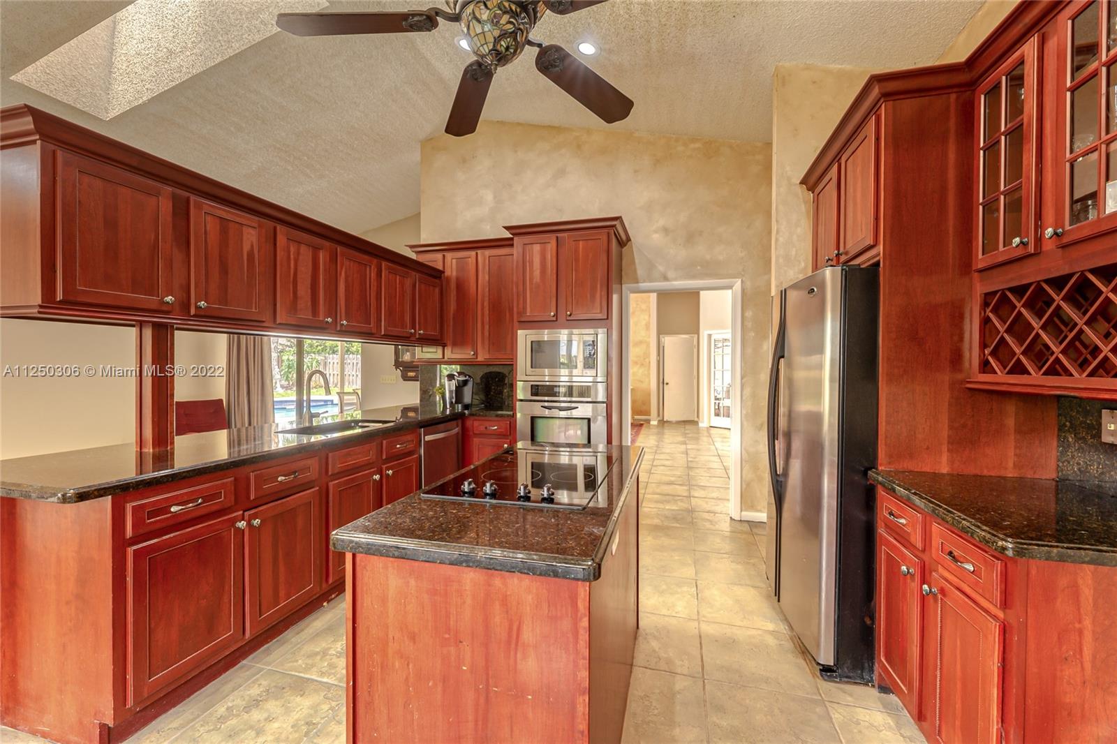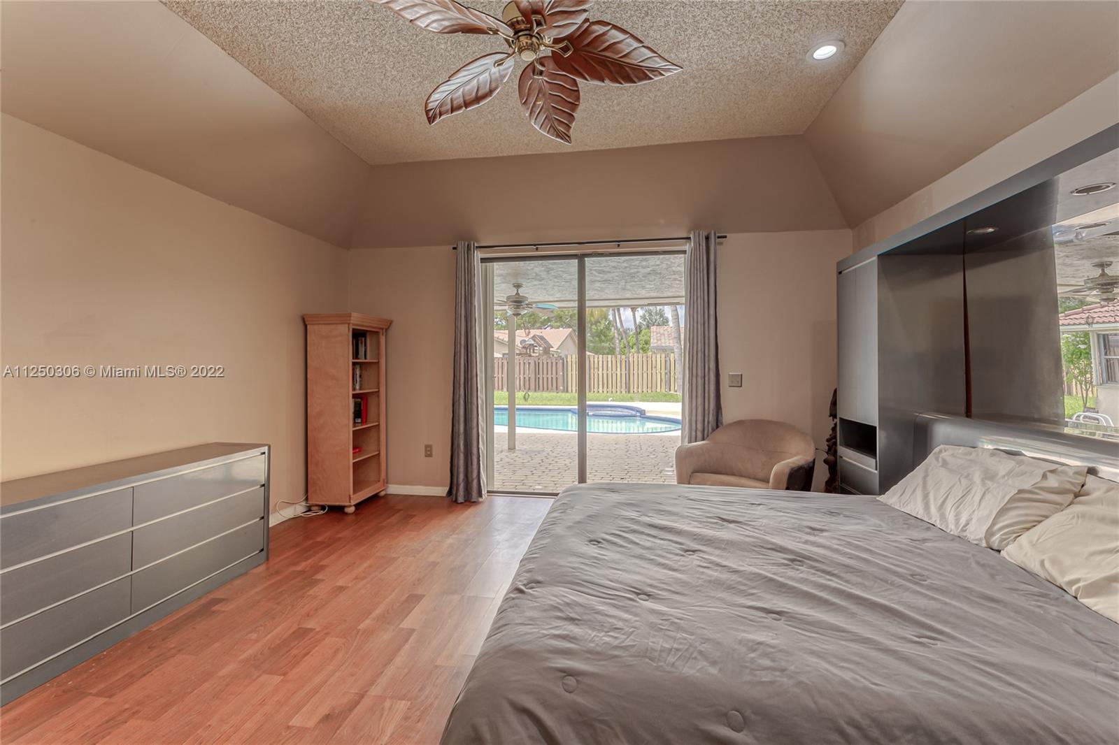 If you want space, you need to check out this 5-bed/2.5 bath (3052 sf total) pool home in desirable Jacaranda Lakes. This home offers an open, split floor plan with vaulted ceilings and natural light. New high hats. Roof 2008. Excellent working kitchen with stainless steel appliances, granite countertops, island cooktop, and wood cabinets. Spacious eat-in kitchen with bay window adjacent to the family room with a beautiful wood-burning fireplace. Pass through bar area for entertaining. Huge walk-in pantry. Large, fenced backyard with a free-form pool, plenty of room for family fun. Colored landscaping lighting. Paved driveway and deck area. Organized master closet. French office doors.Dual-zone air conditioners. Accordion shutters.Low HOA.Community playground and tennis courts.