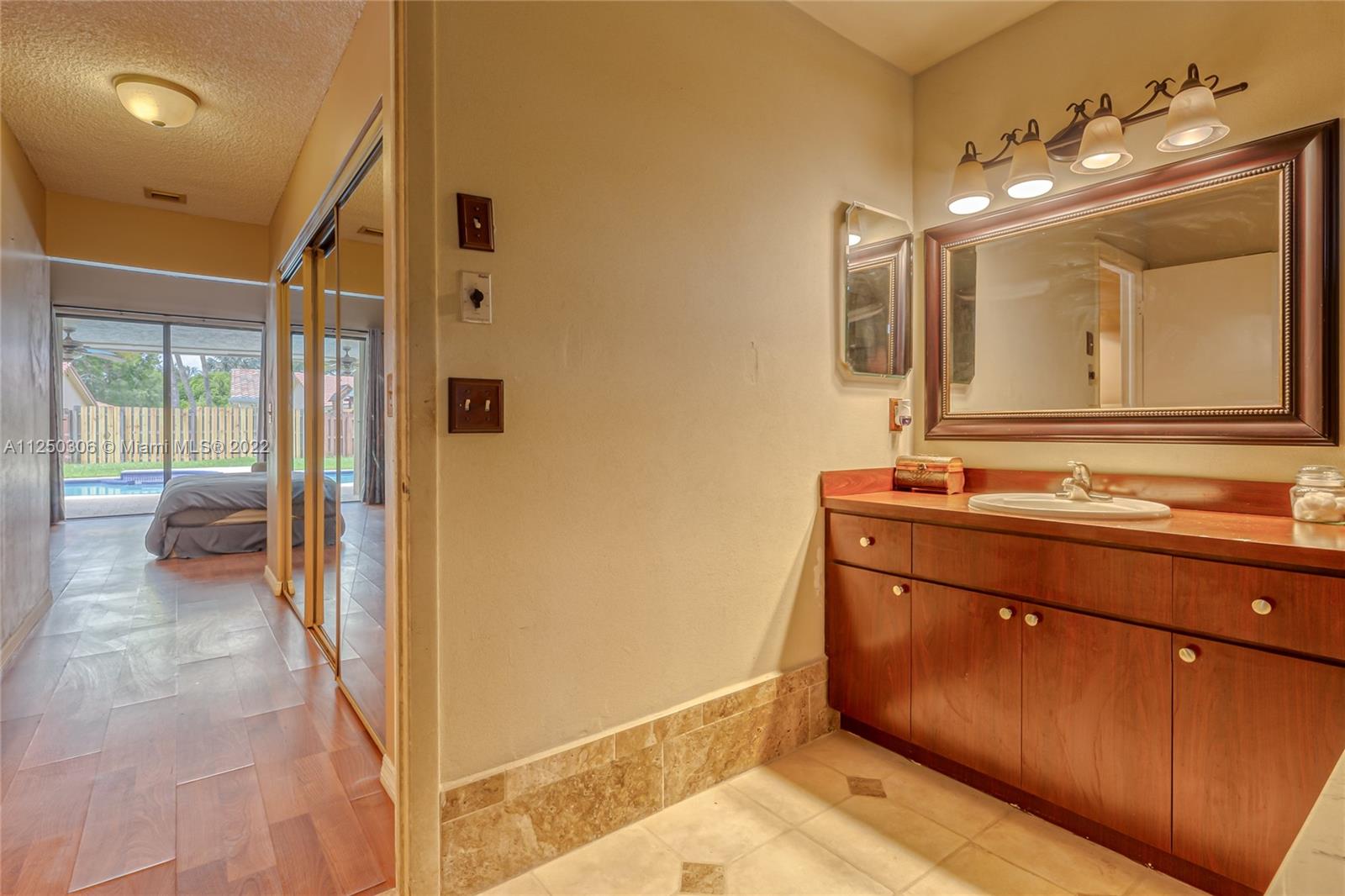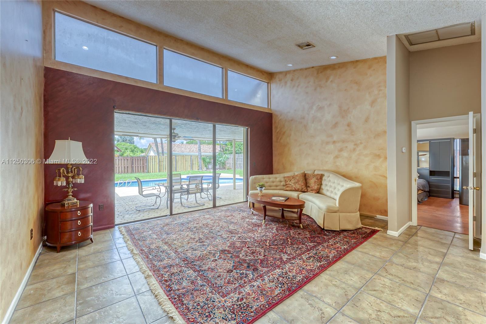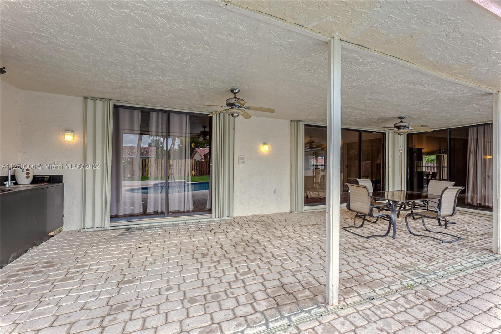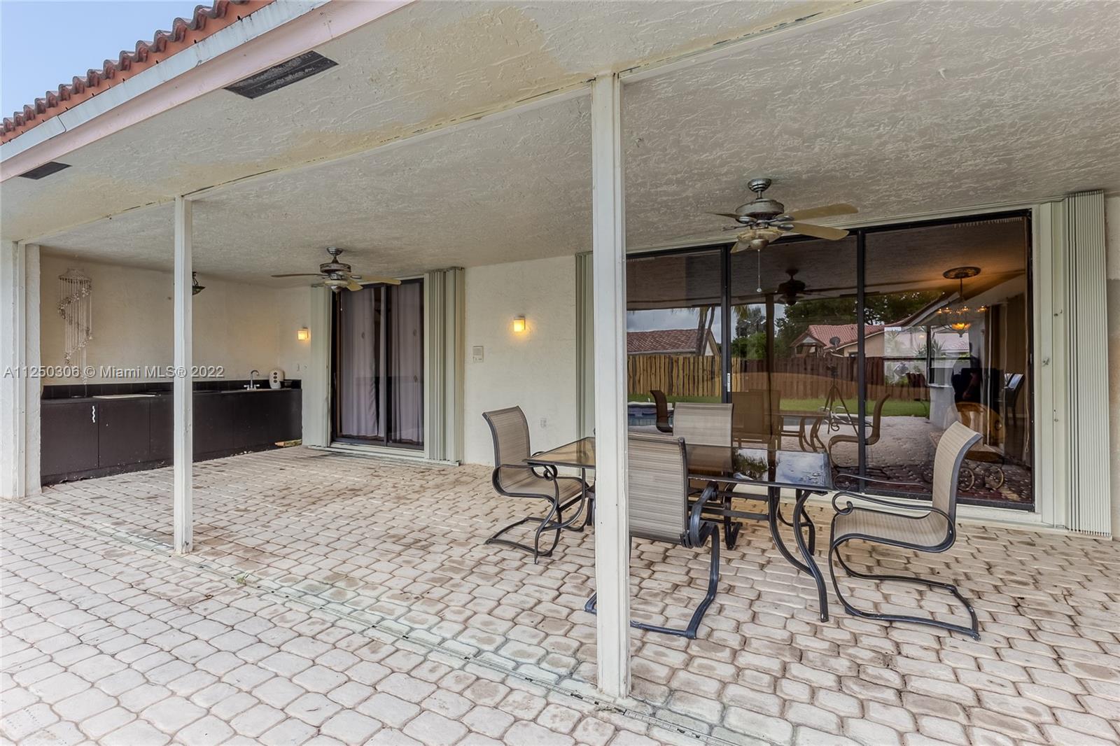 If you want space, you need to check out this 5-bed/2.5 bath (3052 sf total) pool home in desirable Jacaranda Lakes. This home offers an open, split floor plan with vaulted ceilings and natural light. New high hats. Roof 2008. Excellent working kitchen with stainless steel appliances, granite countertops, island cooktop, and wood cabinets. Spacious eat-in kitchen with bay window adjacent to the family room with a beautiful wood-burning fireplace. Pass through bar area for entertaining. Huge walk-in pantry. Large, fenced backyard with a free-form pool, plenty of room for family fun. Colored landscaping lighting. Paved driveway and deck area. Organized master closet. French office doors.Dual-zone air conditioners. Accordion shutters.Low HOA.Community playground and tennis courts.