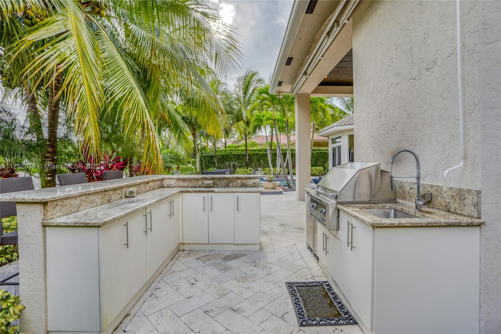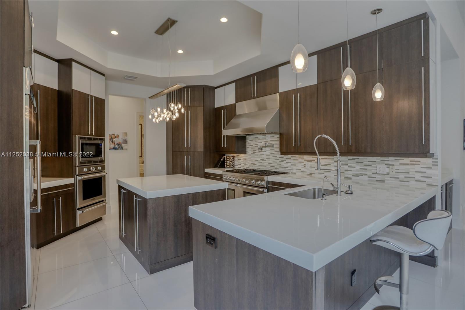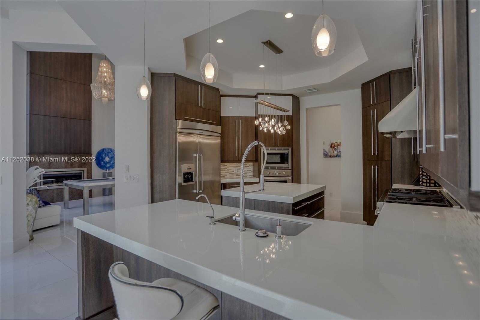 Welcome home to your indoor / outdoor oasis! This luxurious home features White marble / glass flooring throughout the home and dark wood floors in the bedrooms. The custom glass and metal stairway railing adds the perfect touch of luxury to the home. The kitchen comes complete with stainless steel Thermidor appliances, custom slab ribbed door, and double gas range for the chef in the family and for the family grill master enjoy the large outdoor kitchen completed with built in BBQ and all the outdoor cooking essentials. Even better yet when its time to relax everyone can enjoy the award winning vanishing edge heated pool and spa with a marble deck finish. Stop by and check out your new home today!