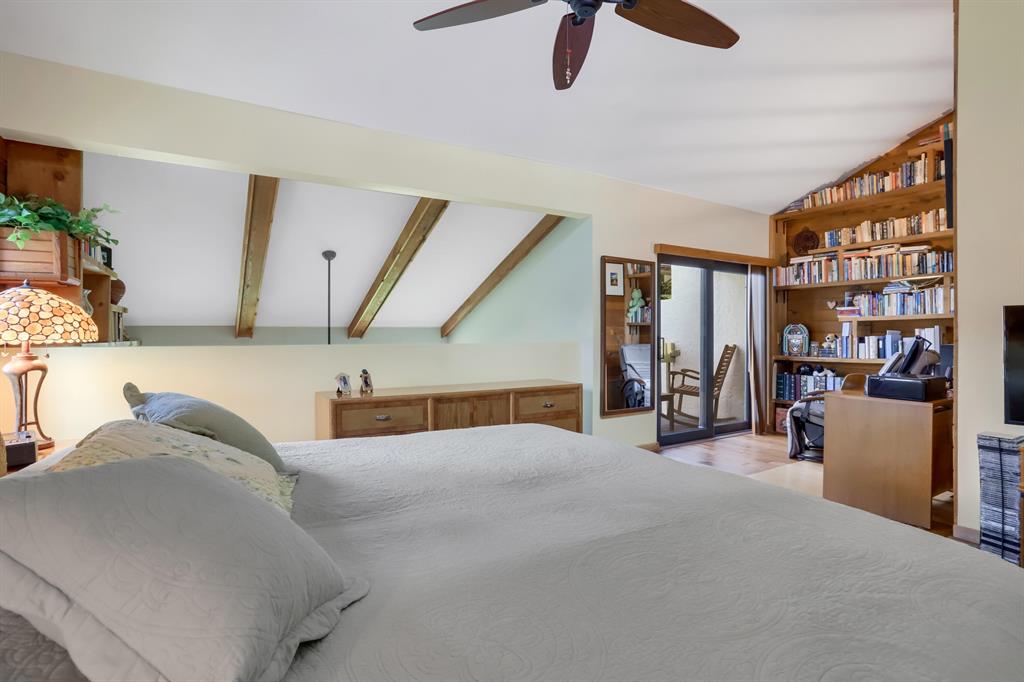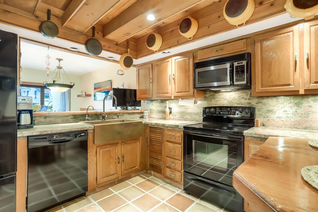 Walk up the private entry for a warm welcome to this custom, master-crafted end unit retreat. Stunning features include wood ceiling beams, cedar paneling & Ming Dynasty reclaimed wood floors. Eat-in chef's kitchen boasts a hand-turned custom copper sink, instant boiling water faucet, granite, pantry, & peninsula. The dramatic living area has cathedral ceilings, wood burning fireplace & beautiful lake views. COMPLETE IMPACT WINDOWS/DOORS/GARAGE. Upstairs a split plan features a generous owner's suite with cathedral ceiling, library/office & rare lakeview balcony. 2 additional bedrooms with Jack & Jill bathroom. Impeccably maintained with attention to every detail, this home has a new central vac, A/C 3 yrs, no popcorn, Toto toilets & 2006 roof routinely serviced. On a cul-de-sac & pets ok!