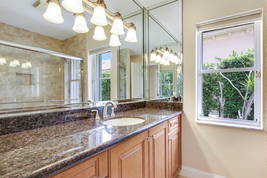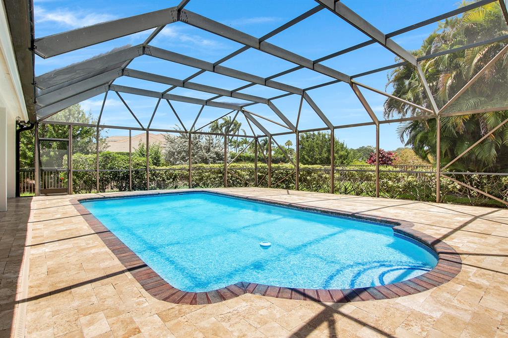 Fabulous home located on private golf course lot in the prestigious Bocaire Country Club. Large open areas with high ceilings are complimented by a beautiful kitchen with granite countertops, center island and stainless steel appliances. Oversized primary bedroom with sitting area, large walk in closets and His and Hers bathrooms. Split bedroom floorplan for privacy. Travertine marble flooring, crown moldings and full hurricane protection. Large patio with screened enclosed swimming pool. Garage has space for two cars plus a golf cart.Bocaire Country Club has 24 hour manned security and features 239 homes, a beautiful golf course, state of the art gym, five Har-Tru tennis courts, and resort style aquatic center.