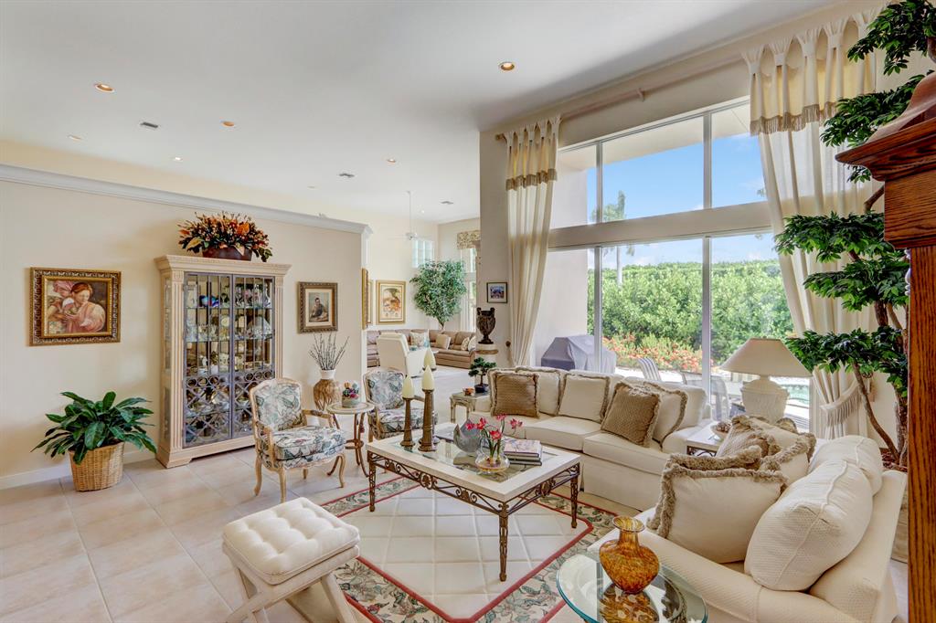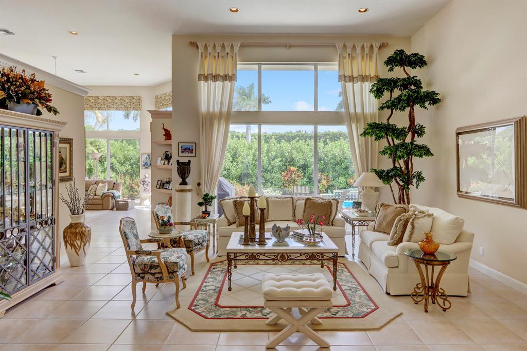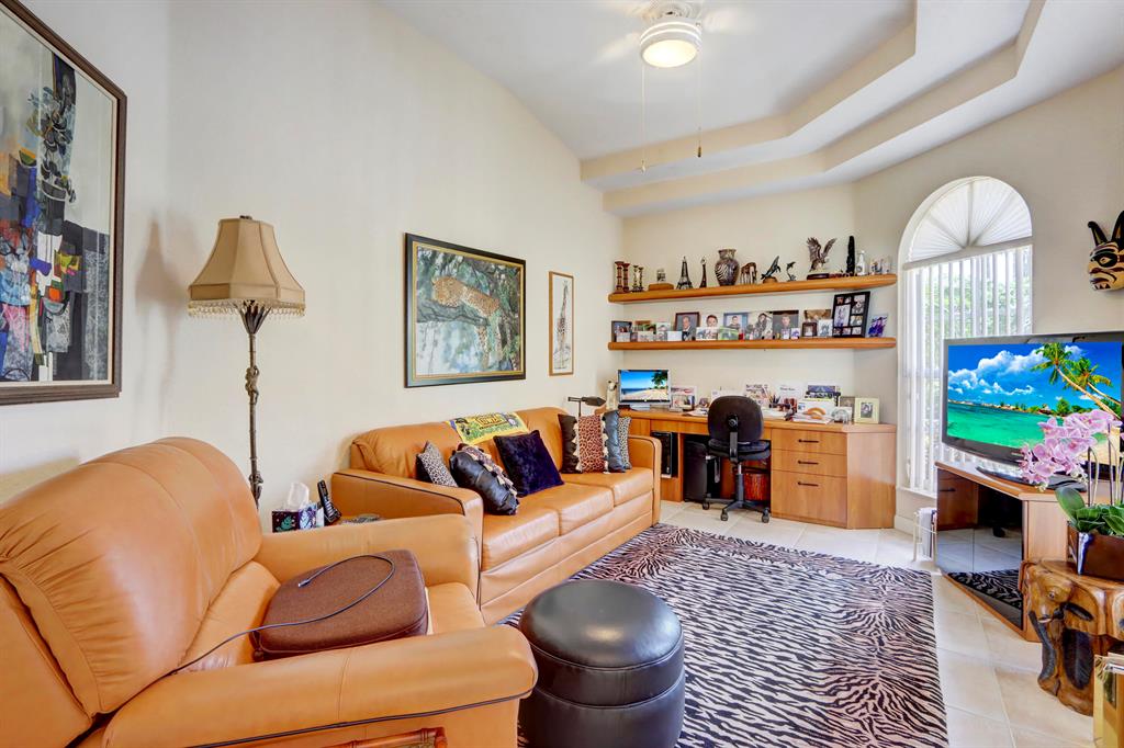 Double glass doors open into this lovely one-story home of 3 bedrooms plus an office & 2 1/2 baths featuring volume ceilings with extra high-hat lighting; neutral tile floors & carpeting; an open kitchen with 42'' whitewashed oak cabinetry, granite countertops, backsplash & matching table; central vacuum & water filtration systems; vertical blinds on the windows; a spacious Master Suite with 2 walk-in closets & a marble Master Bathroom with marble counters; new garage doors & coach lights. A/Cs - 2017 & 2012; generator 1 year old. The private open patio offers a pool with spill water feature. Furniture is negotiable.