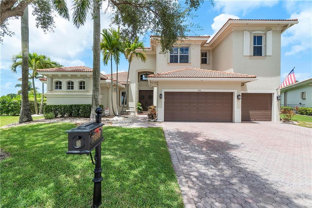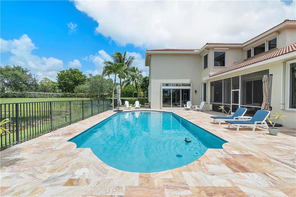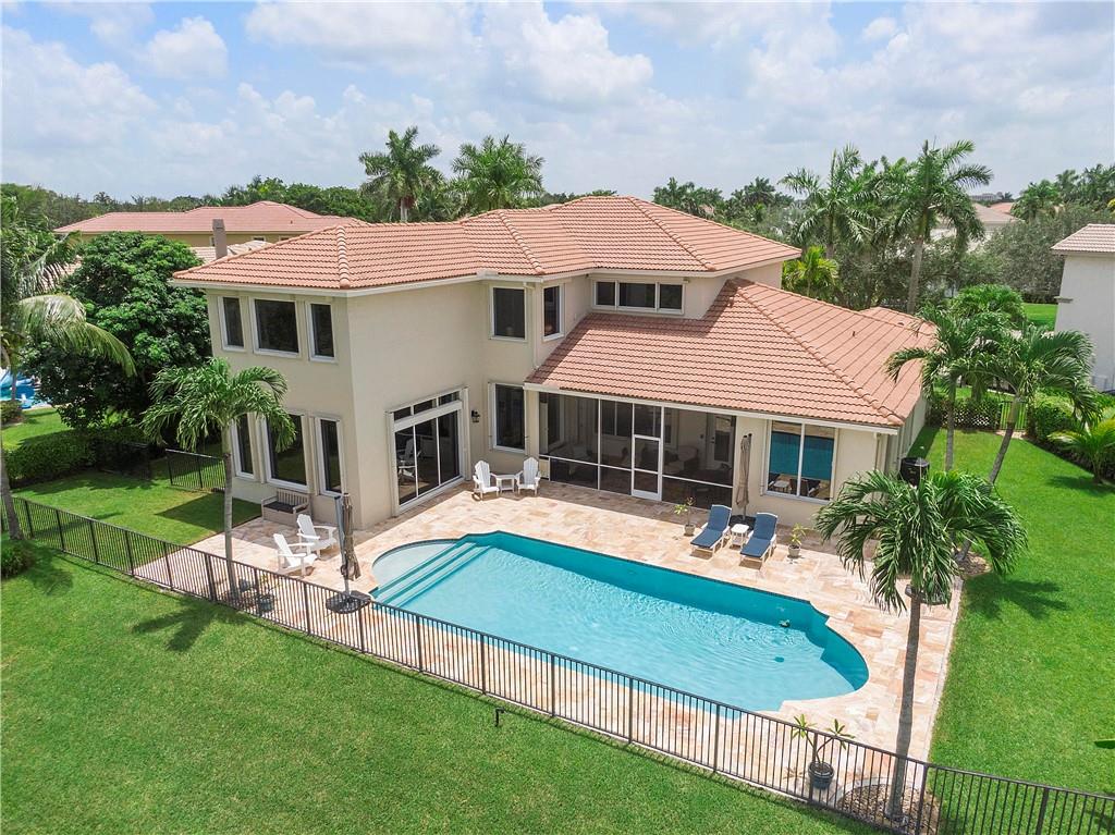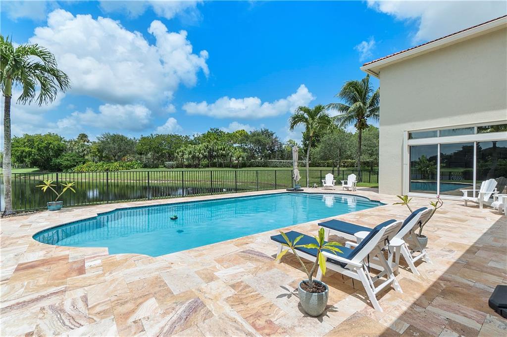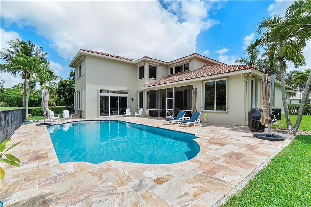 JUST REDUCED! This impeccably maintained, light & bright home on the cul-de-sac boasts 6 bedrooms,5 baths, office,loft + enormous 17x17 bonus room & a 3-car garage. This home is situated on a 1/3 acre point lot offering privacy w/ beautiful water views & incredible sunsets. The spacious eat-in kitchen has quartz countertops & marble backsplash w/open concept family room. First floor also boasts a master w/a sitting room, custom closets, & double walk-in shower, large private office, full cabana bath, formal living & dining room. Second floor offers high ceilings,4 additional bedrooms,2 baths, bonus room & loft . Oversized heated pool & screened lanai are perfect for unwinding in the evenings. Fully fenced yard is perfect for the kids & pets! Just a short walk to Plaza del Largo Clubhouse.