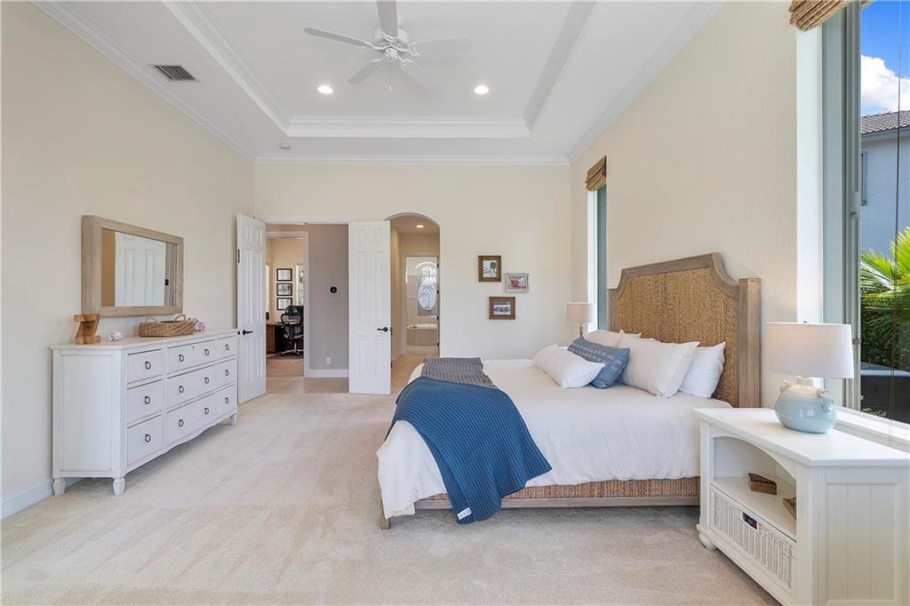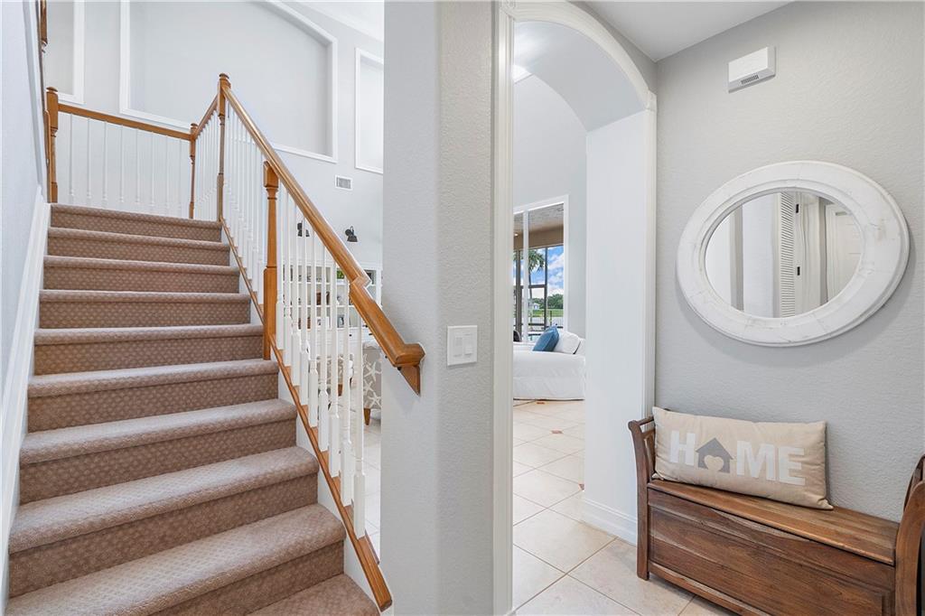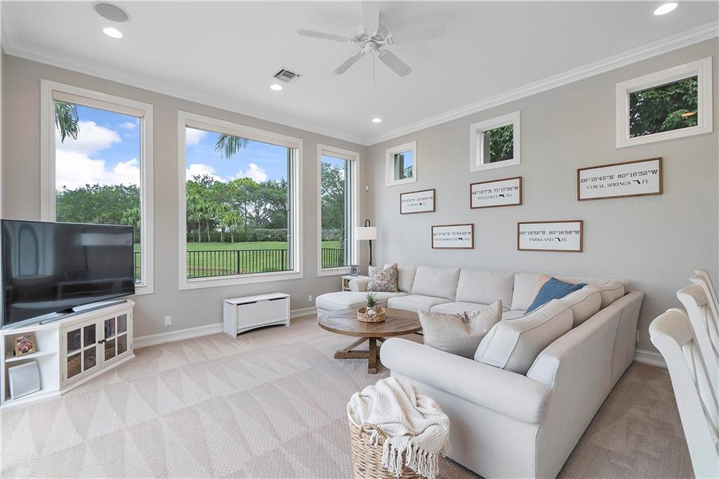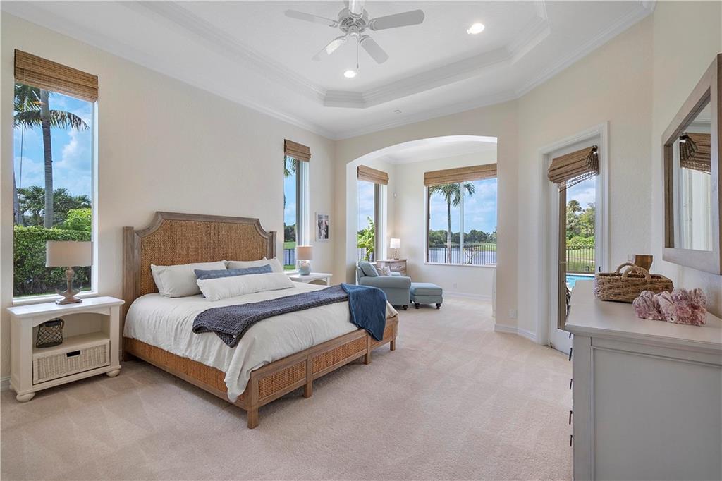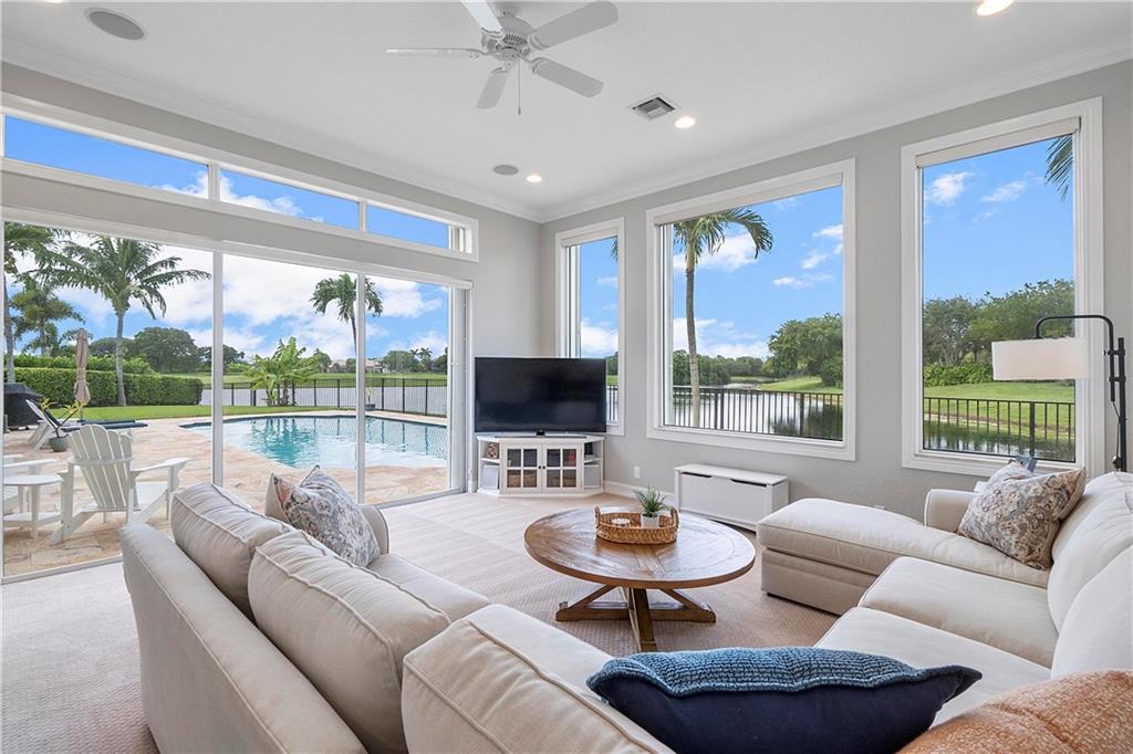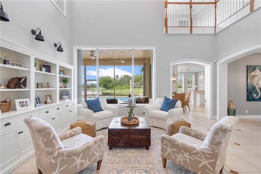 JUST REDUCED! This impeccably maintained, light & bright home on the cul-de-sac boasts 6 bedrooms,5 baths, office,loft + enormous 17x17 bonus room & a 3-car garage. This home is situated on a 1/3 acre point lot offering privacy w/ beautiful water views & incredible sunsets. The spacious eat-in kitchen has quartz countertops & marble backsplash w/open concept family room. First floor also boasts a master w/a sitting room, custom closets, & double walk-in shower, large private office, full cabana bath, formal living & dining room. Second floor offers high ceilings,4 additional bedrooms,2 baths, bonus room & loft . Oversized heated pool & screened lanai are perfect for unwinding in the evenings. Fully fenced yard is perfect for the kids & pets! Just a short walk to Plaza del Largo Clubhouse.