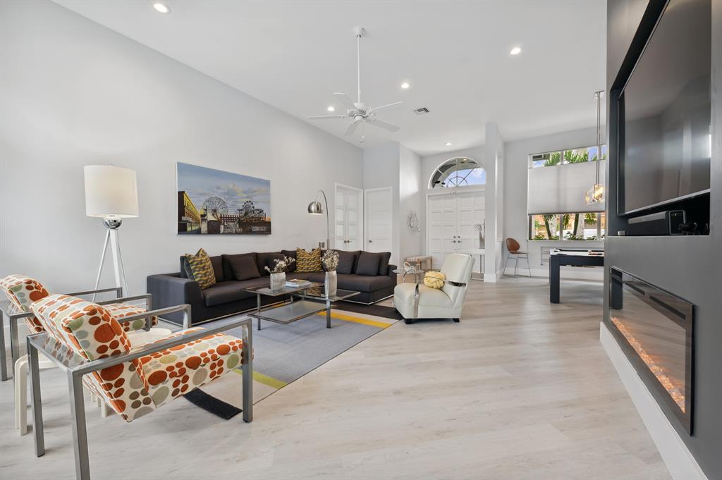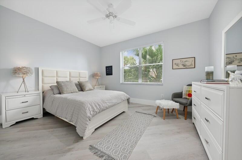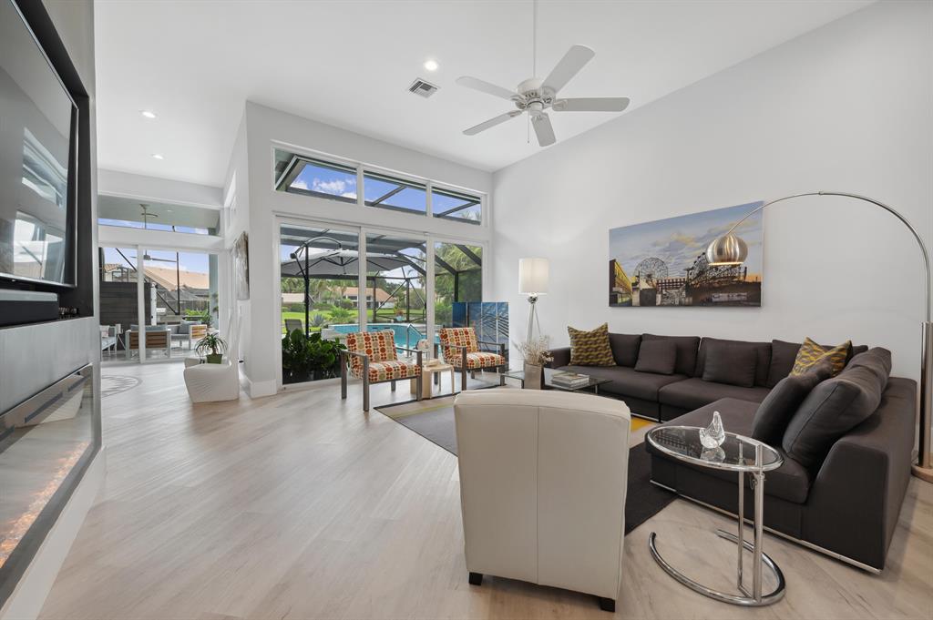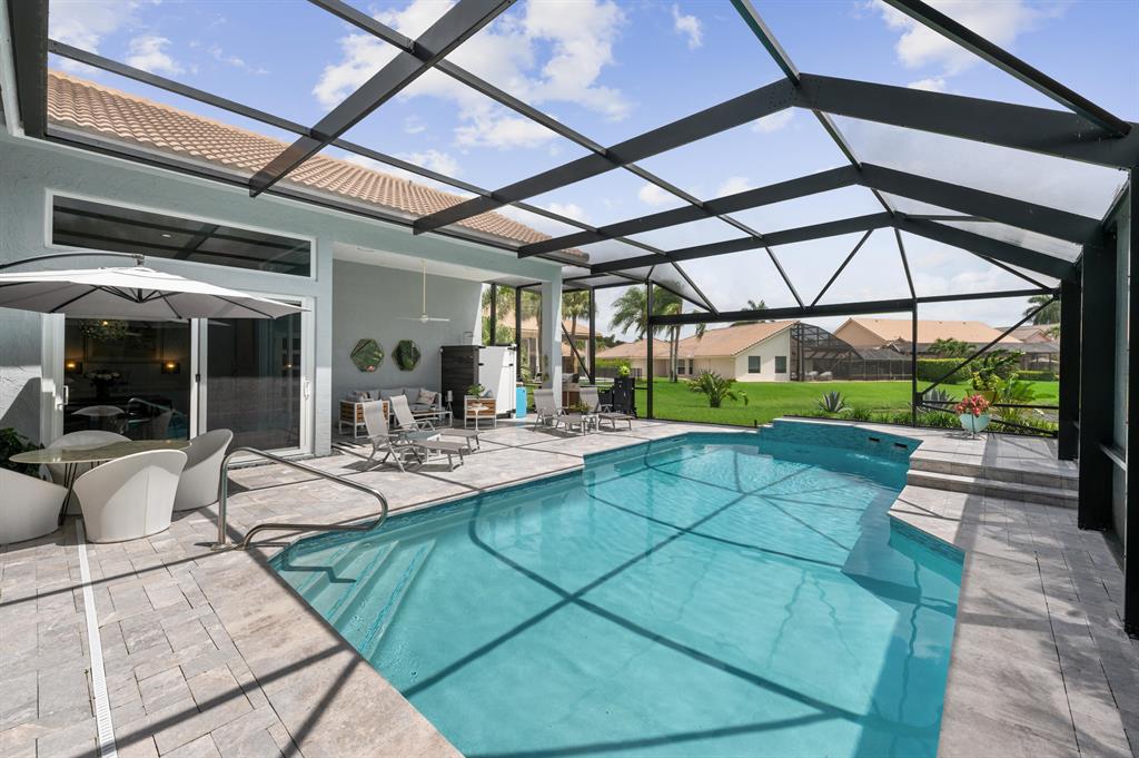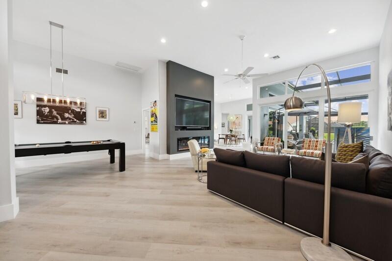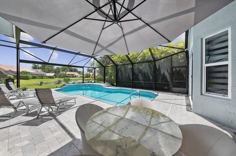 JUST REDUCED FOR QUICK SALE! Incredible lakefront residence with SOCIAL MEMBERSHIP totally renovated recently with amazing flair & creativity. The open floorpan presents beautiful views from every room. Attention to detail is evident throughout -- from the reimaginedliving/family room with its 85'' LG built-in TV & electric fireplace; kitchen with GE Profile & Bosch appliances, quartz counters & backsplash; spa-like master bath; heated salt water pool, travertine deck & scenic view screen enclosure; impact glass rear windows & sliders . . .and so much more. LVT flooring throughout, rebuilt closets, whole house generator -- this sensational residencelocated in a premiere ''boutique'' country club can bepurchased ''turnkey'' to include the sophisticatedfurnishings & accessories.