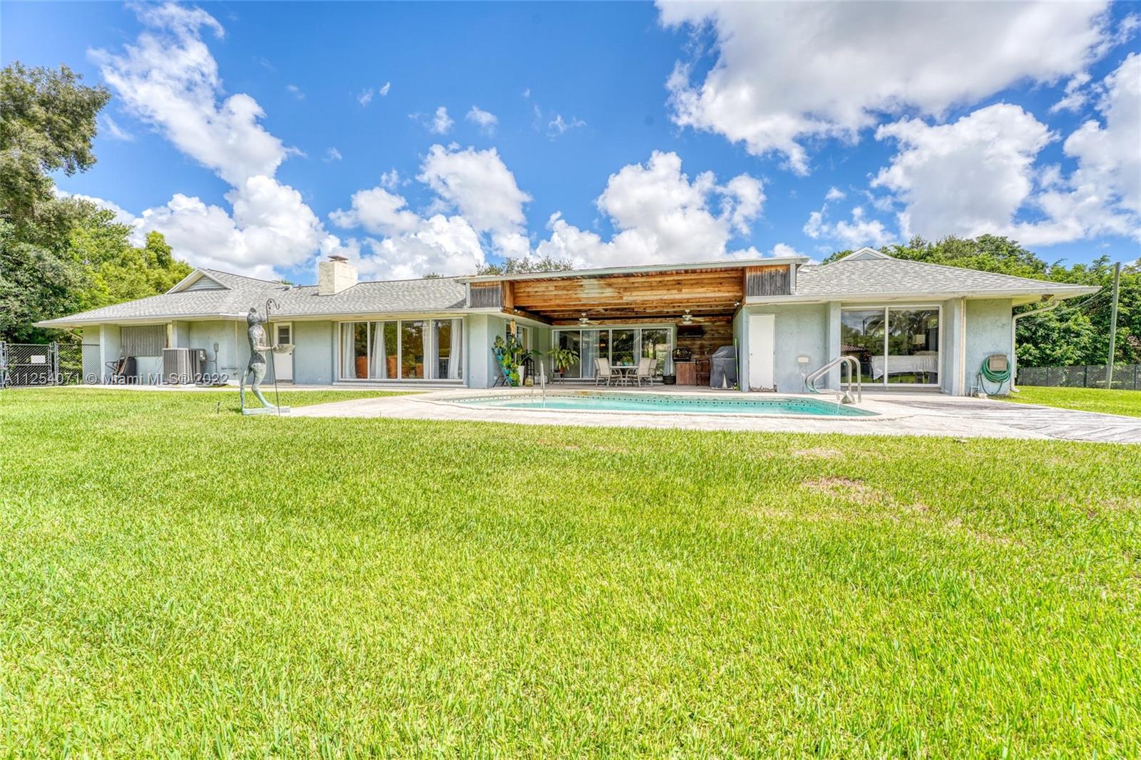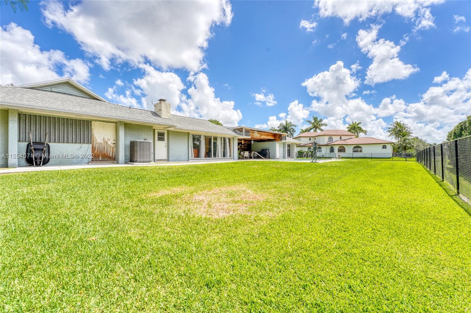 One of the best deals in Plantation Acres on a 39,605 sq ft lot at the end of a quiet street on a canal. Great South East Exposure in your fully fenced back yard. Great opportunity to remodel and create a bright wide open modern floorplan, large outdoor covered entertainment space, New Roof 2006, New AC units (2021,2016), New Water Heater (2021) All new Appliances 2021. Working stone fireplace. Fully fenced backyard. Surrounded by expensive homes. Full Inspection already done. NO HOA. Close to Sawgrass Mills Mall, Equestrian Center, Volunteer Park, American Heritage School. You wont get too many opportunities at this price to renovated to your own taste.