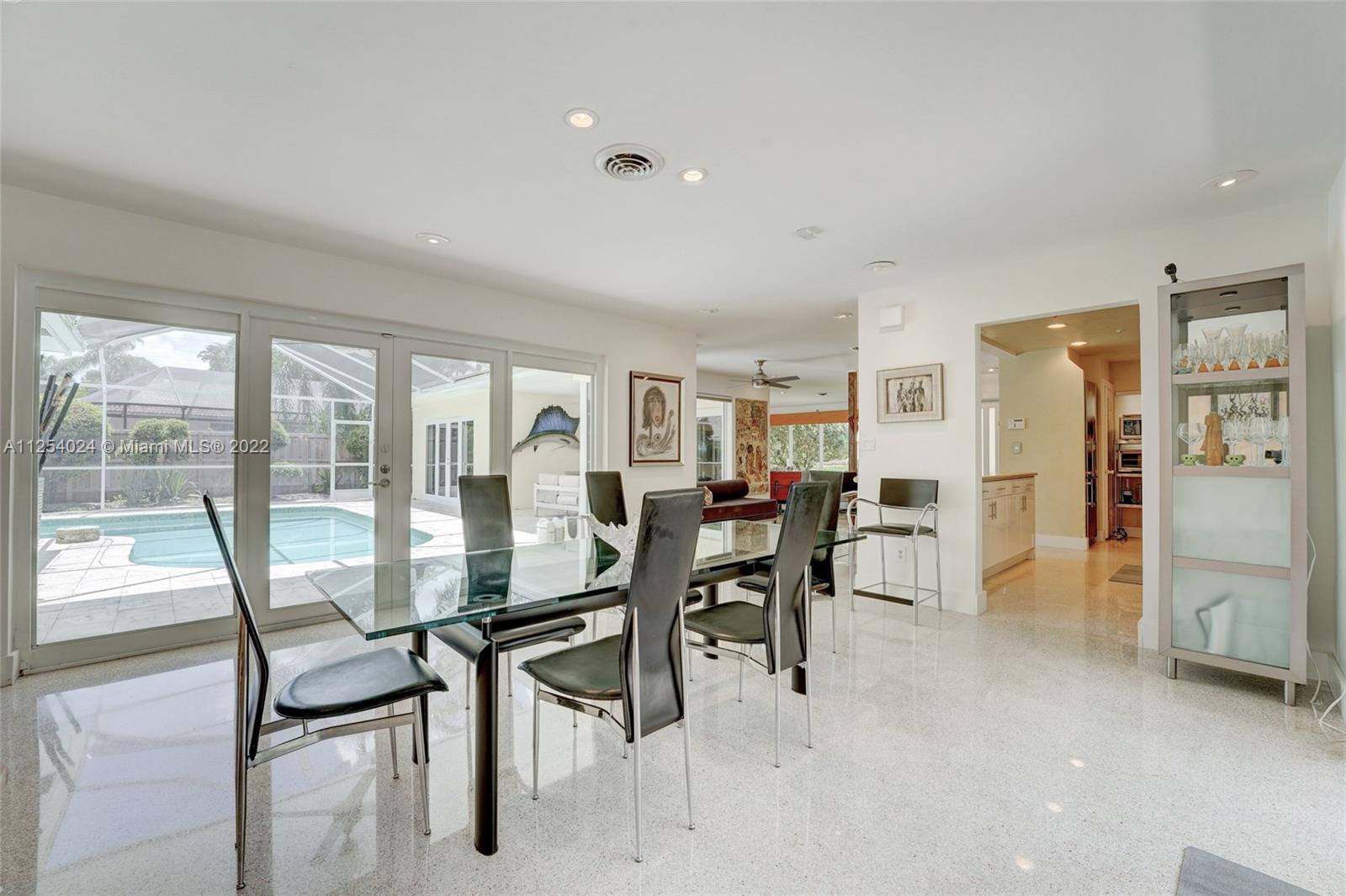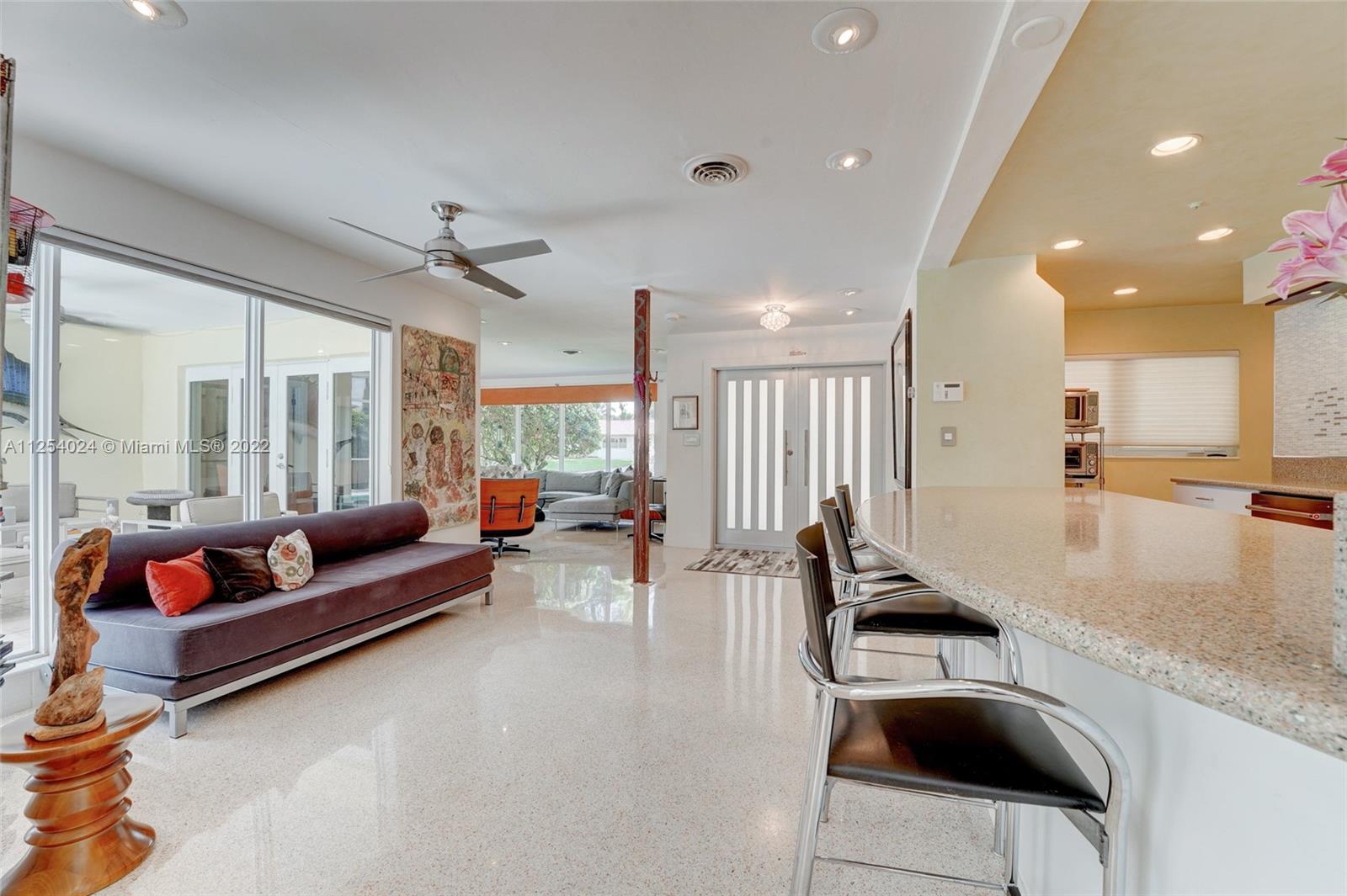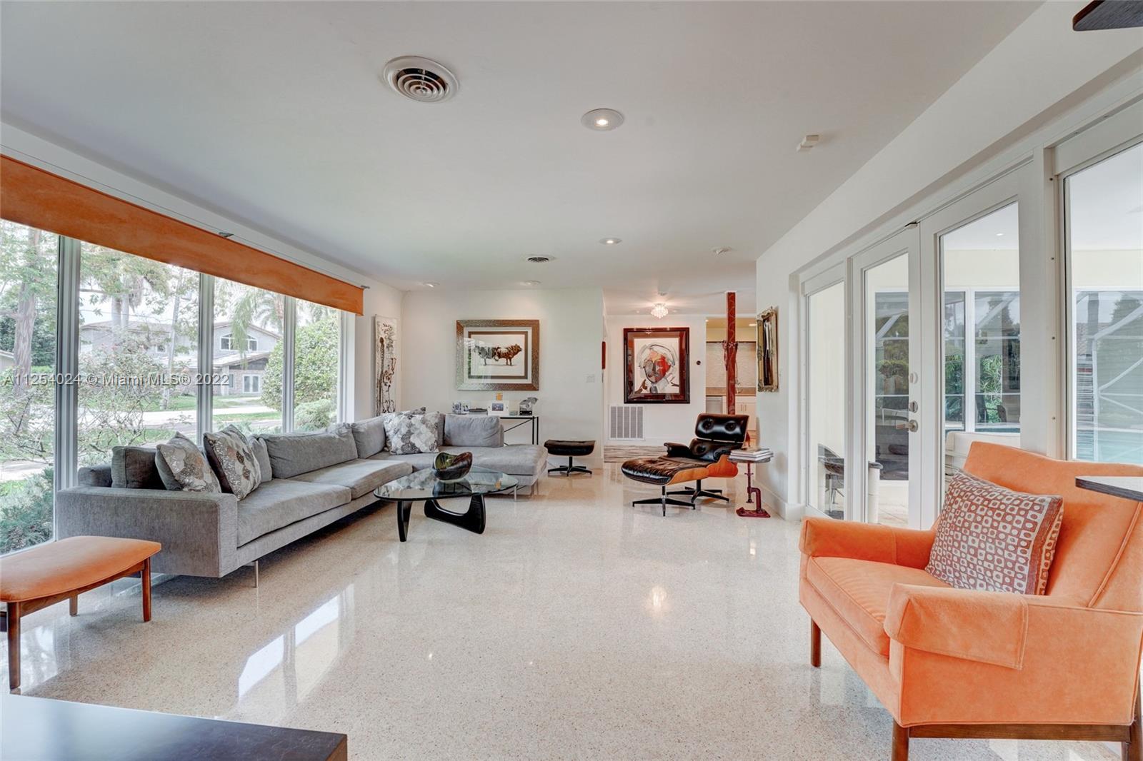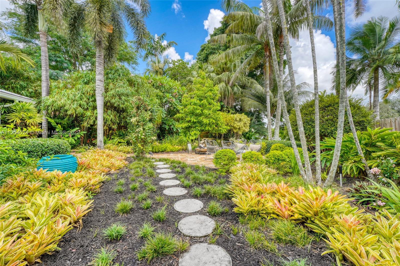 Prepare to be amazed! A mid-century modern beauty like you have never seen before in the exclusive community of Plantation Golf Estates. The whole home offers a true hip vibe you would feel at an art gallery in South Beach. Out back you can get lost wandering around your own botanical garden complete with fruit trees, bamboo, waterfalls, river rocks, outdoor showers, private dock over looking the canal and golf course and a free from, heated, heart shaped pool. Larger then the tax role the entire two car garage has been finished and air conditioned to be used as additional 500+ square feet of living space! This can be used as an Extra bedroom or has AirBnb potential. Complete hurricane impact protection, metal roof, and a whole home propane gas generator. This is a one of a kind property!