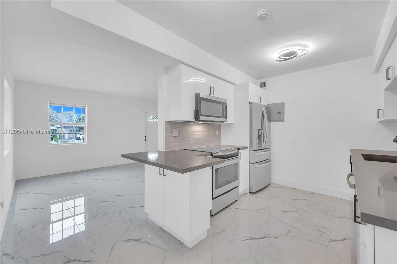 Completely updated home that is 2.7 miles from the beach. From the front of the home you will notice two driveways and a parking space directly in front of the home. Open the double door gate that leads to the backyard and you will not only find an abundance of space fit for a pool, but you will find a garage that can be converted into a guest home. Moving to the interior, take note of the double master bed/split floor-plan lay out. This home features a redesigned stainless steel kitchen with high end appliances. The floors are covered in porcelain tile. The bathrooms are designed to make you feel as if you are at a resort. My favorite part of the home is the large formal dining room featuring large windows that wrap around the room and allow you to see the beautiful backyard as you eat.