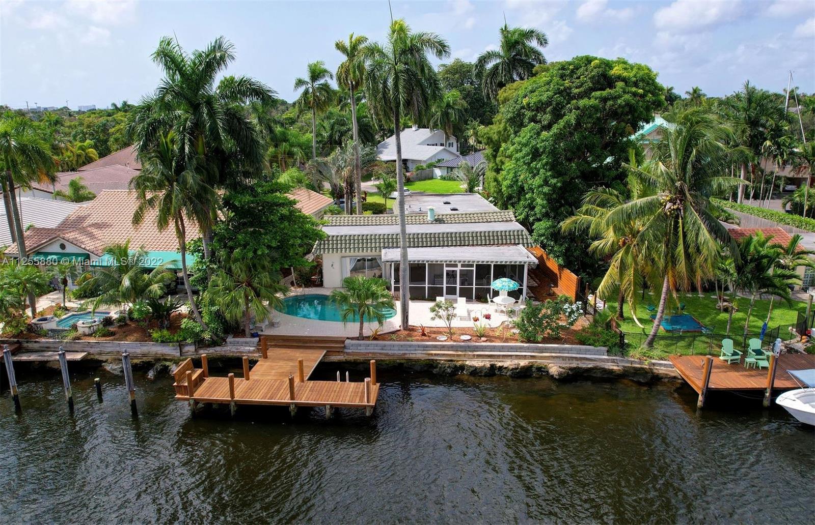 Spectacular Property & Boaters Paradise! Enjoy the view w/ 75 FT water frontage right on the New River, a DEEP-WATER channel with direct access and no fixed bridges to the Intercoastal & Atlantic Ocean! This lovely Florida pool home is perfectly situated in the coveted Tropical Point community, a gated peninsula of 23 homes within the Tarpon River area. Originally w/ 3 bedrooms, the home was completely transformed into a 2-bedroom, with an open floor plan concept, including an expansive living room with vaulted ceilings and an open kitchen. There's great natural light with many windows, skylights, and glass doors flanking the north side facing the water. Great closet & storage space, garage with craft-workshop area, screened patio, & newer roof. Recently painted and cared for. Call today!