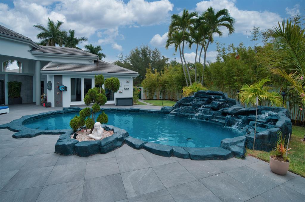 Wait to you see this spectacular, 5/4 newly renovated estate courtyard home that sits on over a half acre lot with a backyard large enough to fit a tennis court. Some of its features include impact windows, floor to ceiling windows, 3 car garage, soaring ceilings, open floor plan, 32X32 porcelain tiles, an ultimate chef's kitchen with waterfall island, tons of storage, double refrigerator, double ovens, & inside/outside SONOS music system. The private courtyard home includes a salt system heated pool, grotto waterfall and an outdoor Florida kitchen with bar seating. This contemporary home has it all!