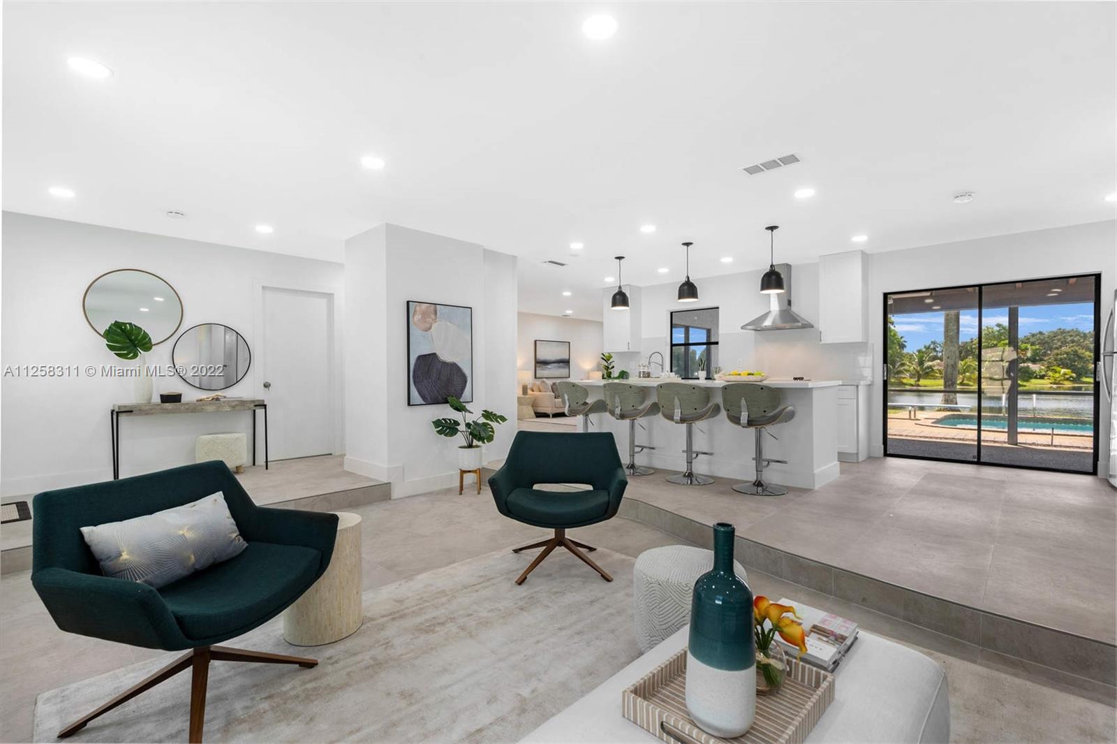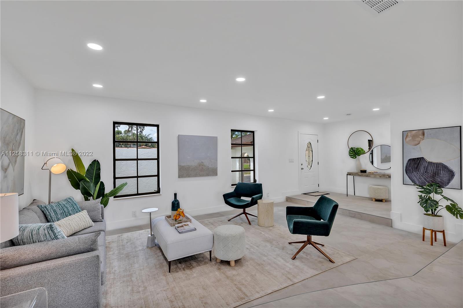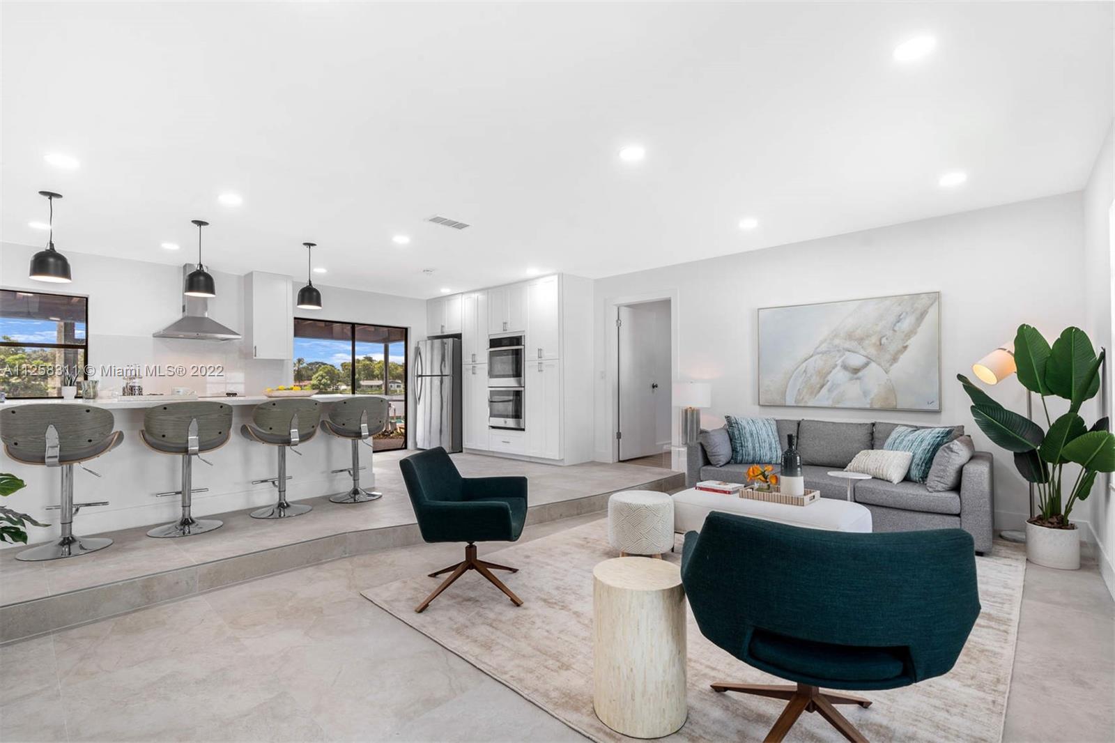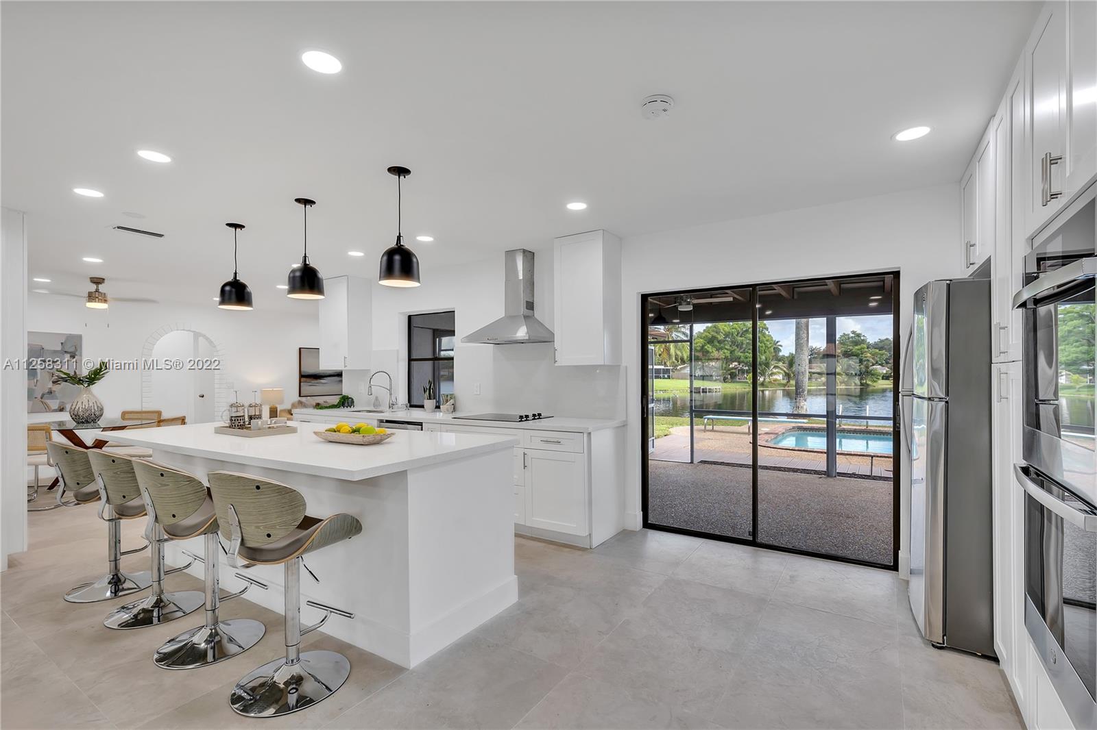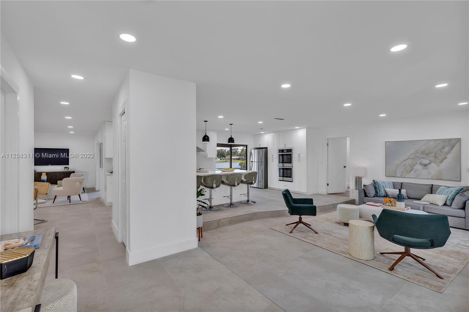Newly remodeled lakefront pool home, in desirable Royal Palm Estates. Features large format tile floors in common areas and luxury vinyl planks in all bedrooms, recessed LED lights throughout. Open-concept kitchen with island, quartz countertop, and SS appliances; a Master bedroom with ample walk-in closet and cabana bath. Three spacious secondary bedrooms. Formal living room area, and cozy family room. Spacious 2-car garage with laundry. Circular driveway and privacy wall from the street. Large L-shaped swimming pool with diving board and one of the best lakefront views in the neighborhood!! Ready to launch your kayak or paddleboard. Perfect Family Retreat, centrally located to signature Shoppes and restaurants, 15' to Beaches & FLL Airport.