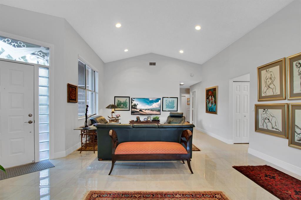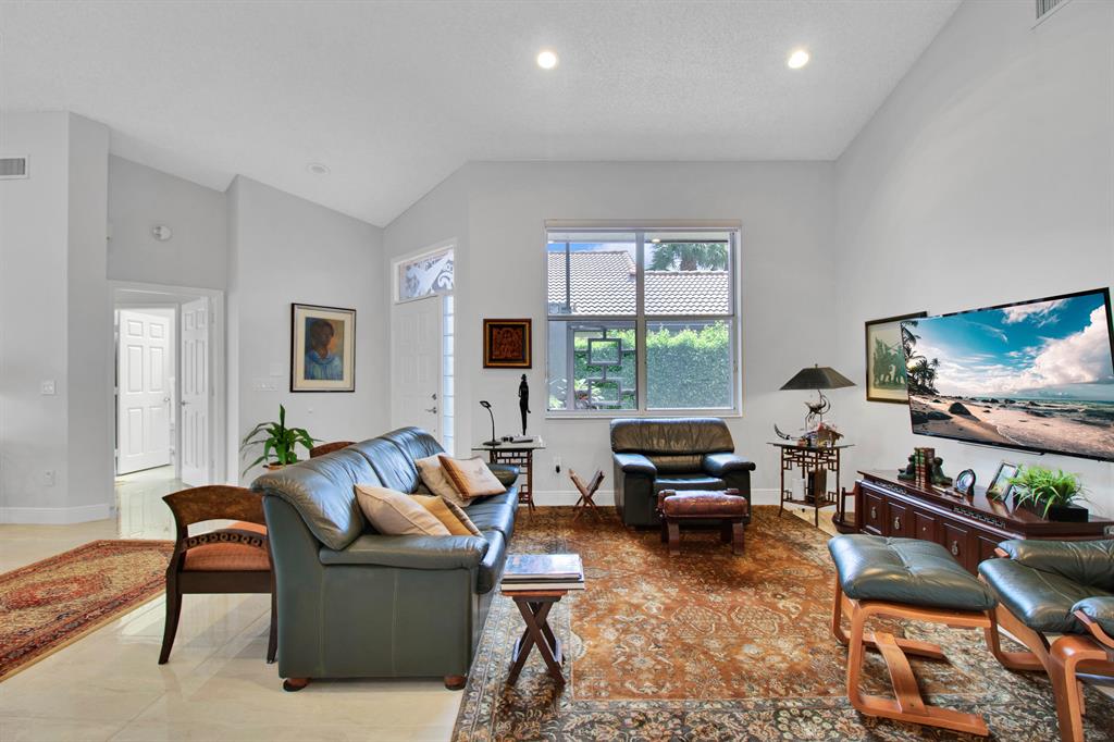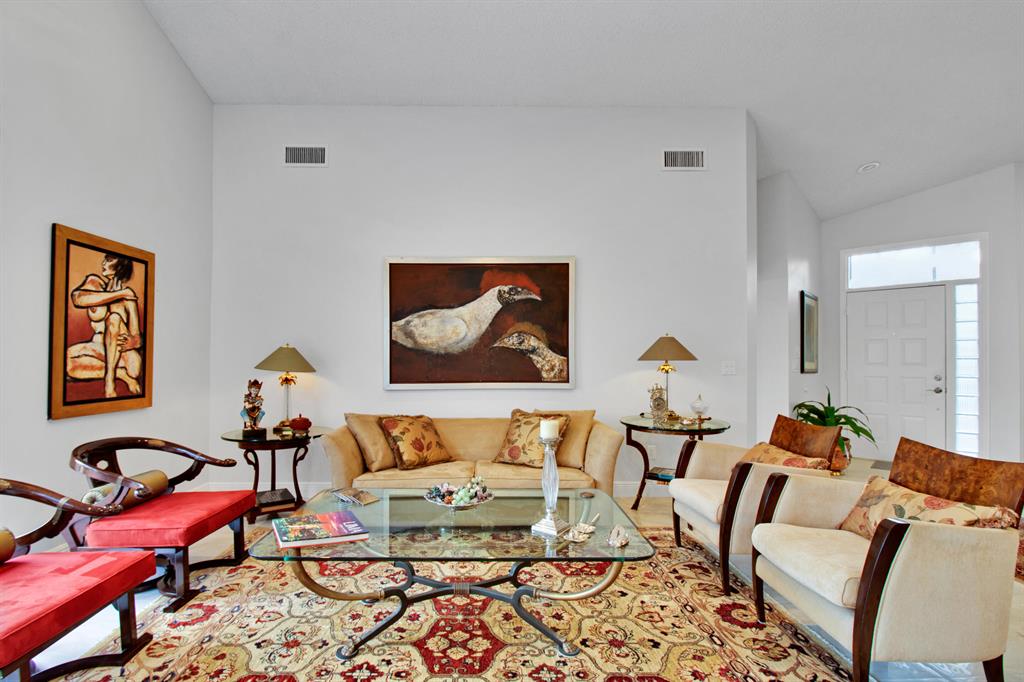 Welcome home to a spacious 1-story home Located in the prestigious development of Palomar at Boca Pointe. Updated and immaculate 3 bed, 2 bath with open living space and lots of natural light. The split bedroom plan offers complete privacy. Relax and unwind on a large screened in patio, perfect for entertaining and relaxing outdoors among the lush tropical landscaping.Other features include: very large master suite with sliders to the very private patio!! Master bathroom with a bathtub, separate shower, & dual sinks with granite countertops. Vaulted Ceilings. new floors, beautiful Zebra shades, new central vacuum, accordion hurricane shutters throughout, new hurricane garage door, newer appliances, brand new stainless steel refrigerator w/2 year warranty. Large laundry/utility room
