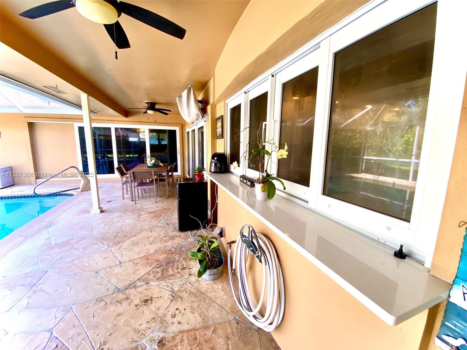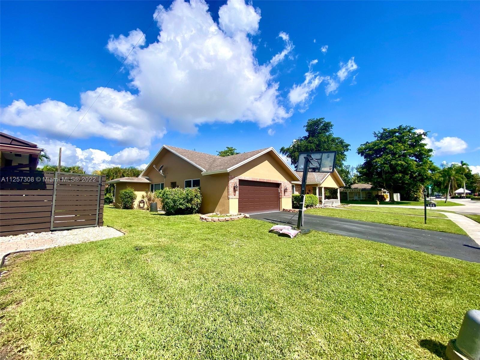 Stunning corner lot 3 bedroom/3bath home with office and built-in sauna situated in a very desirable Eldorado Estates gated community in the heart of Plantation. Featuring open floorplan, BBQ area, screened pool, plantation style shutters, tastefully remodeled interior, beautiful kitchen with Stainless Steel appliances, quartz countertops, new flooring, huge walk-in closet in the oversized master suite, 2-car garage, impact windows & doors, sprinkler system, closest to the clubhouse, children’s play area, tennis, and volleyball. Home opens up beautifully to patio, back yard & pool. Area features 24-hr guard gate, clubhouse available for functions, and other amenities with low maintenance fees. Centrally located, CALL NOW!!! OPEN HOUSE: SEPT 4th from 12pm -3pm.