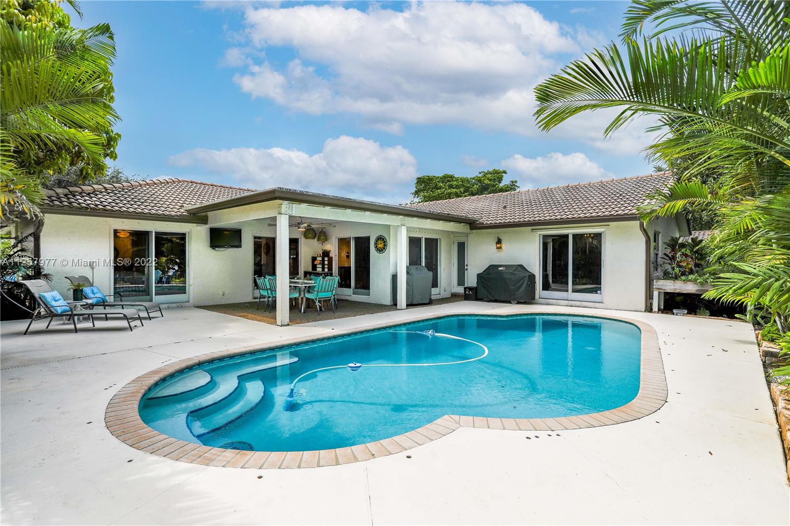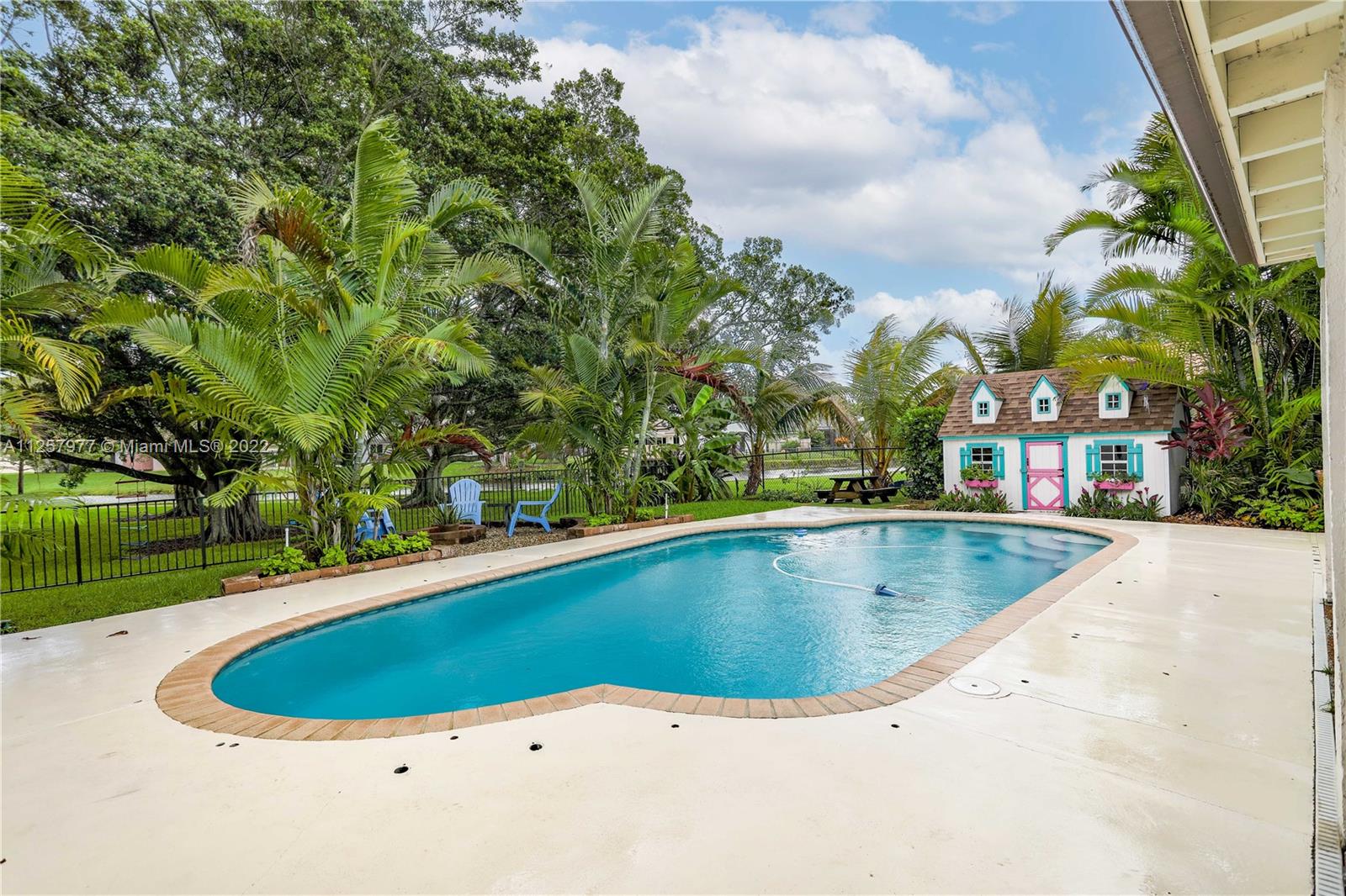Previously featured on HGTV this modern farmhouse style home will leave you breathless! Situated on a private waterfront lot, the property features 5 bedrooms and 2 bathrooms with a split floor plan! The kitchen has been remodeled with sleek black stainless steel appliances and granite counters, elegant light fixtures and ship lapped walls. The master bathroom feels like a spa and the bedroom floors have been finished with bamboo wood. Outback you will find plenty of room to roam or take a dip in your own swimming pool! Complete with your own tiny air conditioned playhouse to keep the kids busy (or convert to a huge shed or workshop). This is a place you will be proud to call home. Close to the community park. Low HOA. Complete hurricane protection.