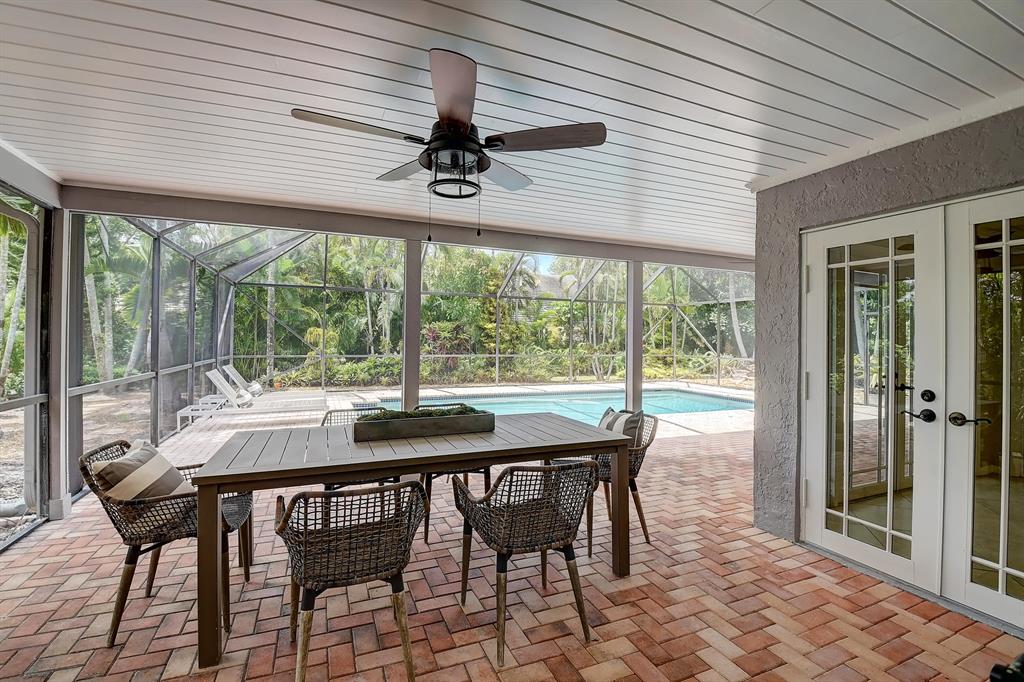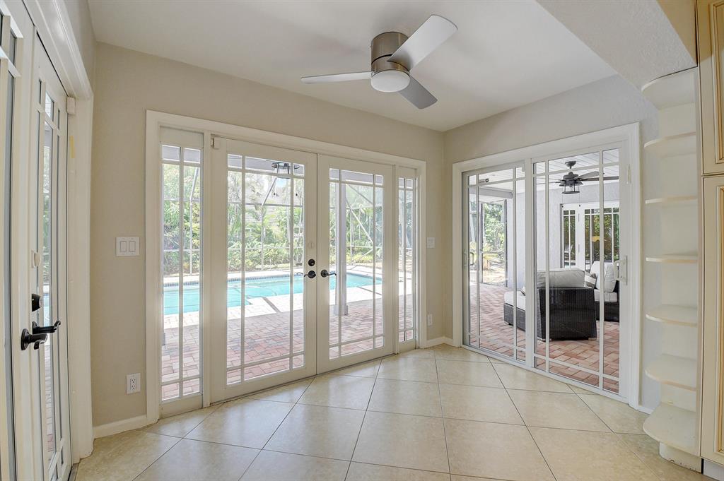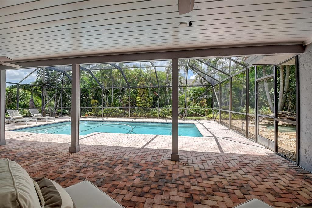 Charming Home nestled in tropical setting featuring a new roof, impact glass French doors & windows and country Kitchen located on a private cornet lot. The Mater Bathroom features onyx quartz counters. Covered screened patio and pool area features a rock/waterfall and Koi pond. A model home with a split bedroom plan is a great opportunity to be in Millpond.