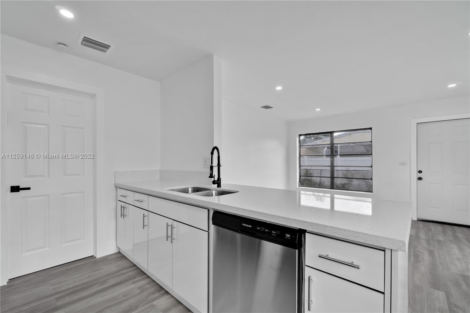 Beautiful updated home with a modern theme ready to move in featuring 3 bedrooms and 1 bath on a quiet street in West Hollywood. Crisp and clean design with light filled spaces throughout, white kitchen cabinetry, quartz countertops, SS appliances, brand new light fixtures, modern flooring and an independent utility room for laundry and storage. Spacious backyard with plenty of room for a boat or RV. Close to highly rated schools, 441, the Turnpike, I95 and other major highways for easy access throughout South Florida. Seller in process of replacing roof. Roof credit can be provided to new buyer.