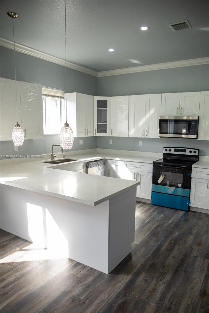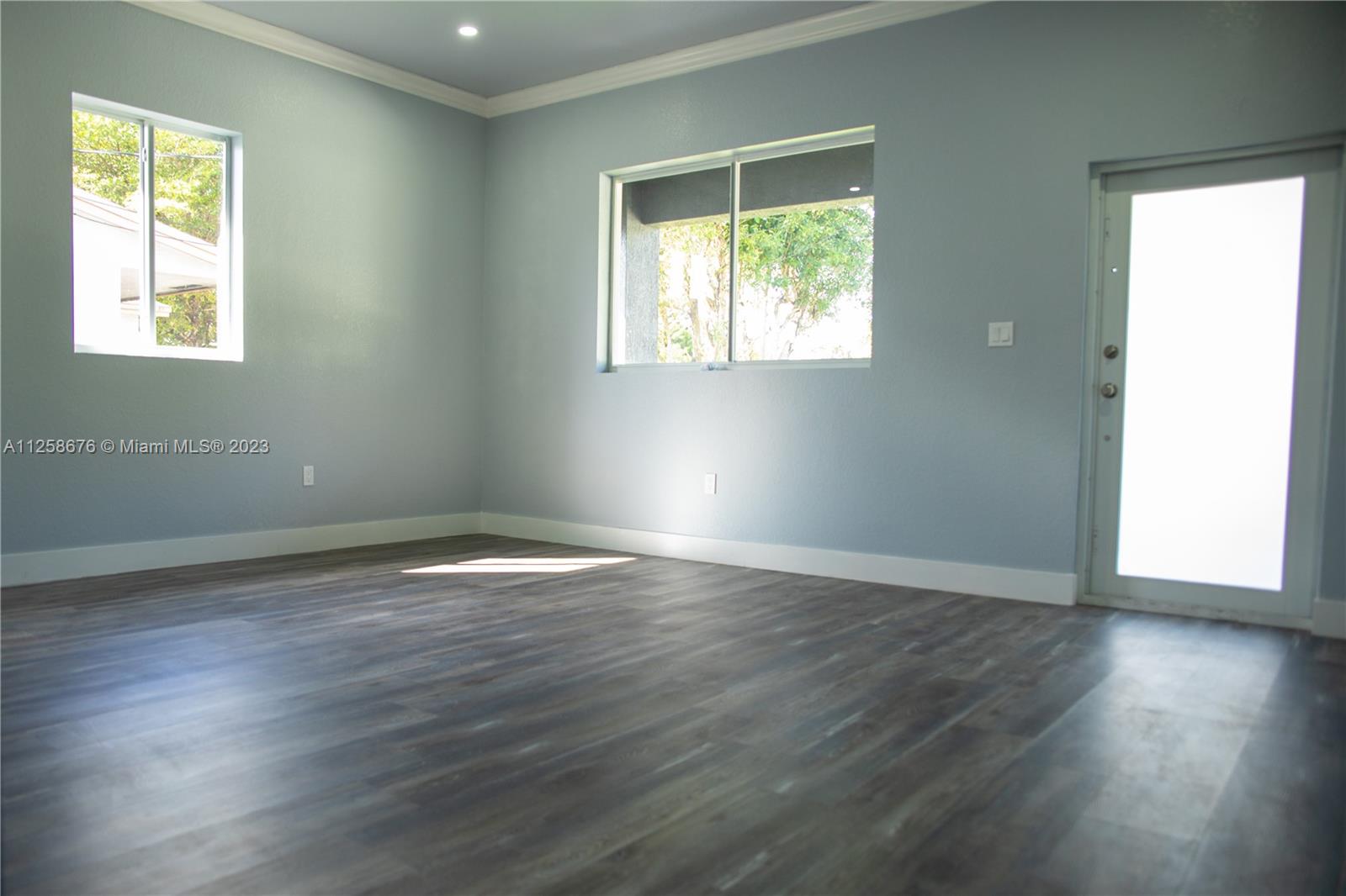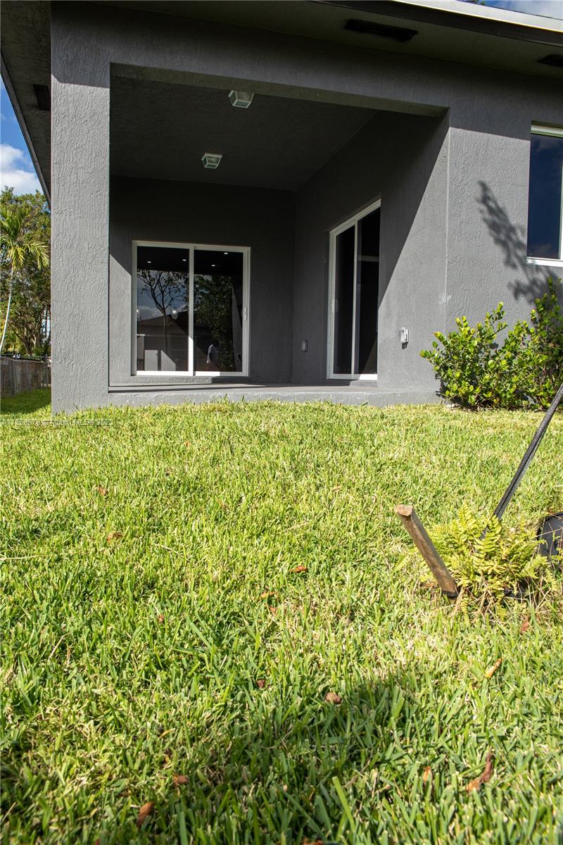 Beautiful new construction single family home. Spacious home 3bd/2 full bth comes with a lot of upgrades and amenities. It includes 2 car garage with remote garage openers and garage keypad for access. Huge living room plus family room. Kitchen includes quartz counter tops, all stainless-steel appliances, refrigerator with computer screen, garbage disposal, L shape countertop. Elegant 10ft ceilings with crown molding and vinyl flooring throughout the home and tile in both bathrooms which also have double decorative bowl sinks. Fabulous roomie master bedroom with walk-in closet with sturdy wood shelving, sliding impact glass door that leads to a covered back porch. Covered front and back porches. Impact windows and doors. Automatic sprinkler system with digital timer and rain sensor.