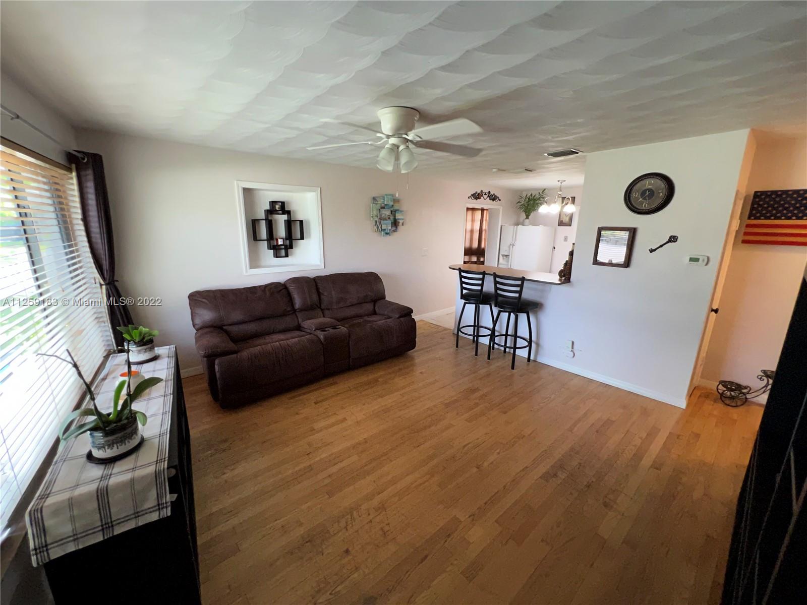 Come and see this 2 bedroom 1 bathroom home in Pompano Beach. Home has a large family room that can easily be used as a third bedroom. Larger than tax records at 1118 square feet under air. Situated in a quiet and convenient neighborhood with no HOA. Minutes to the beach, schools, hospitals, grocery stores, I95, golf, malls, public transportation and much more. New roof, newer central AC with reverse cycle, sprinkler system, newer stainless steel dishwasher and microwave. Stainless steel refrigerator 9/22, hurricane shutters, security cameras, washer and dryer, attic insulation, newer main water line, extra storage and much more. Move in ready or remodel for your own dream home.