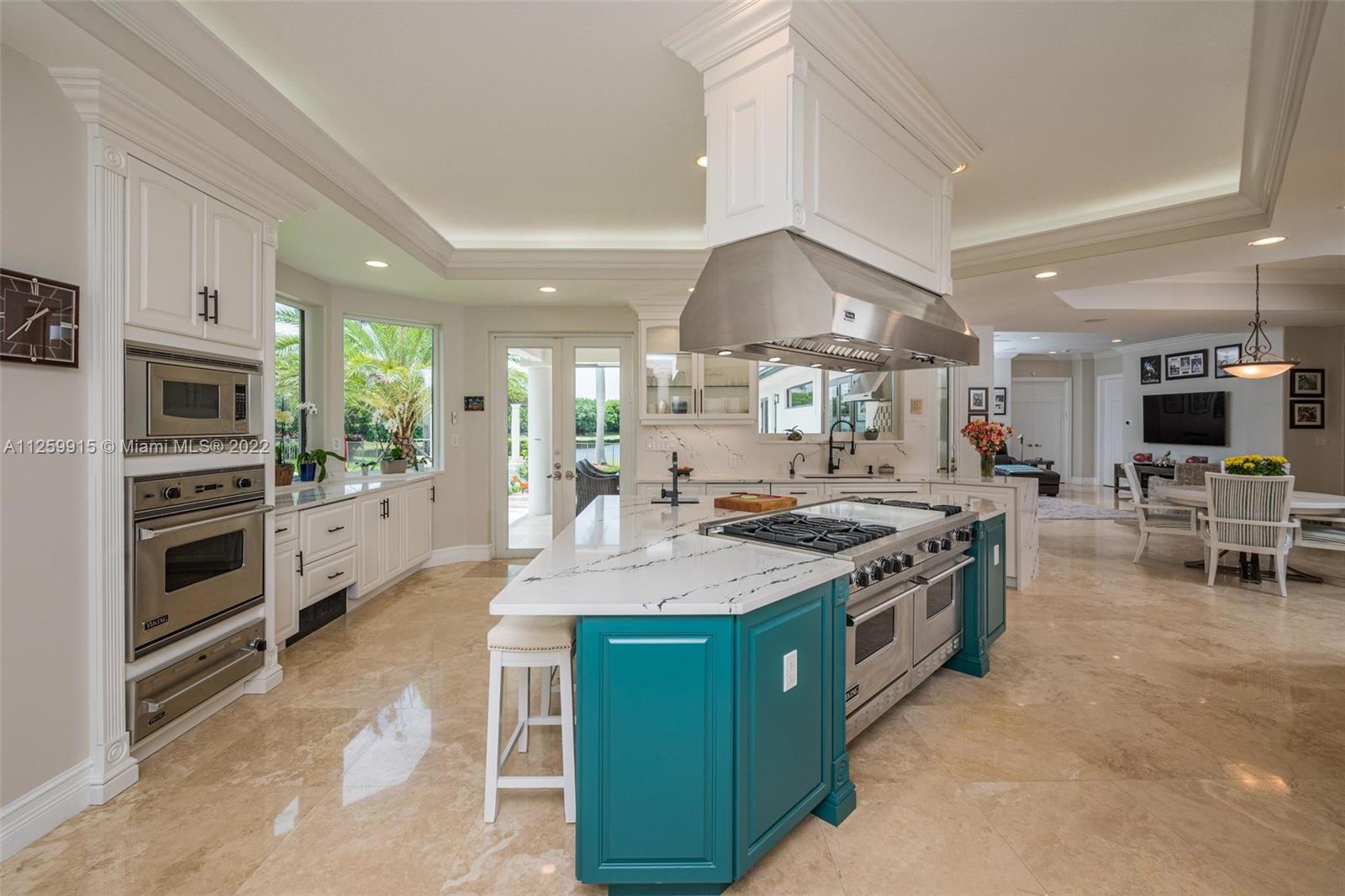 Highly renovated estate on a private 58,000 SF cul-de-sac lot w/ endless water views in prestigious Windmill Ranch Estates. New travertine circular driveway, 4 car garage & porte cochere welcomes you! Smart home w/ brand new roof, impact glass windows & doors, marble floors & custom millwork throughout. 5 bedrooms, 6 1/2 baths, master suite w/ large walk-in closets, master bath w/ spa & sauna. New chef's kitchen w/ top of the line Viking appliances - Viking 60" gas range, Sub Zero refrigerator. Formal living room w/ wet bar, fireplace, volume ceilings & picture window displaying endless water & sunset views. Resort style backyard w/ heated pool & spa, extensive new travertine pavers & summer kitchen. Sold fully furnished for list price excluding grandfather clock, piano, 2 area rugs.