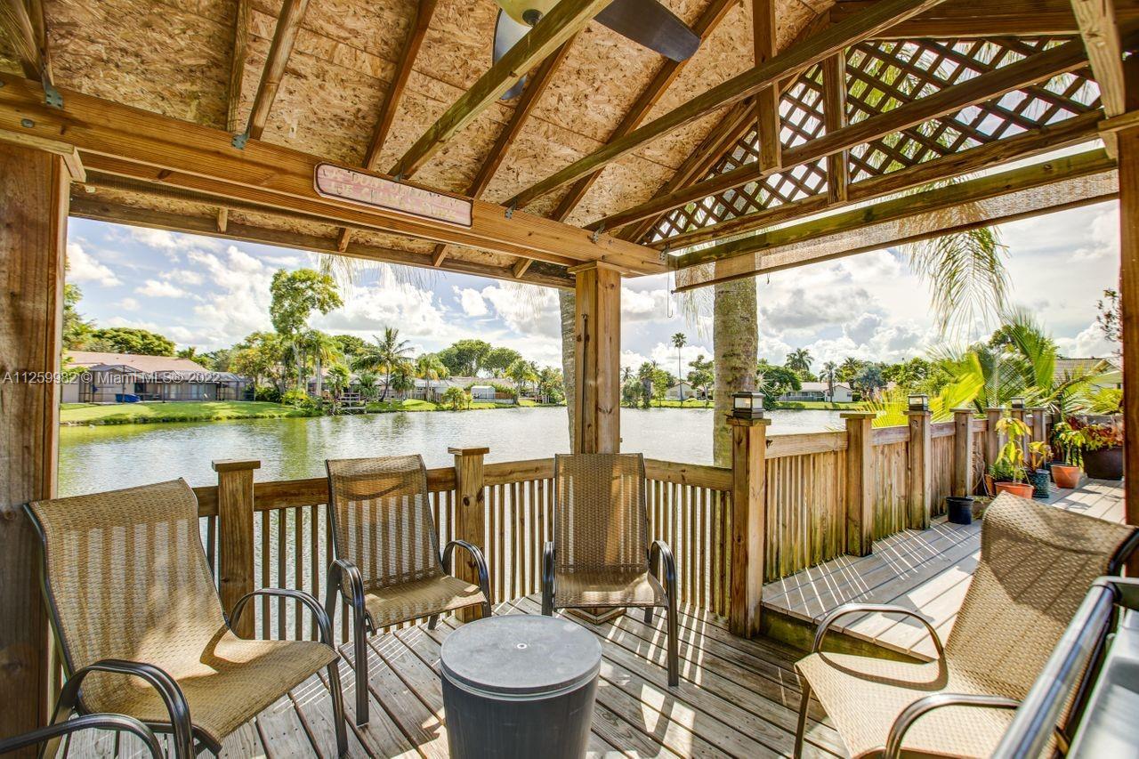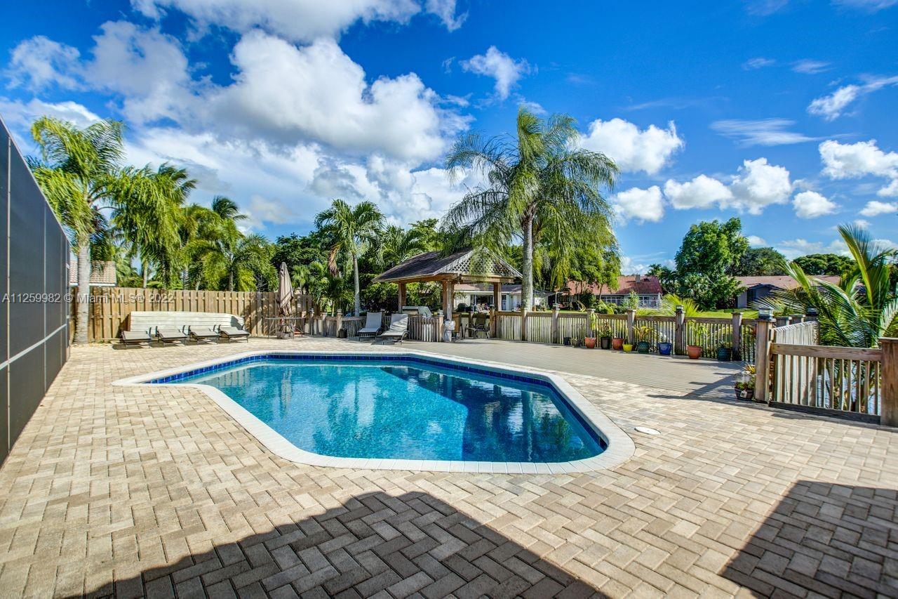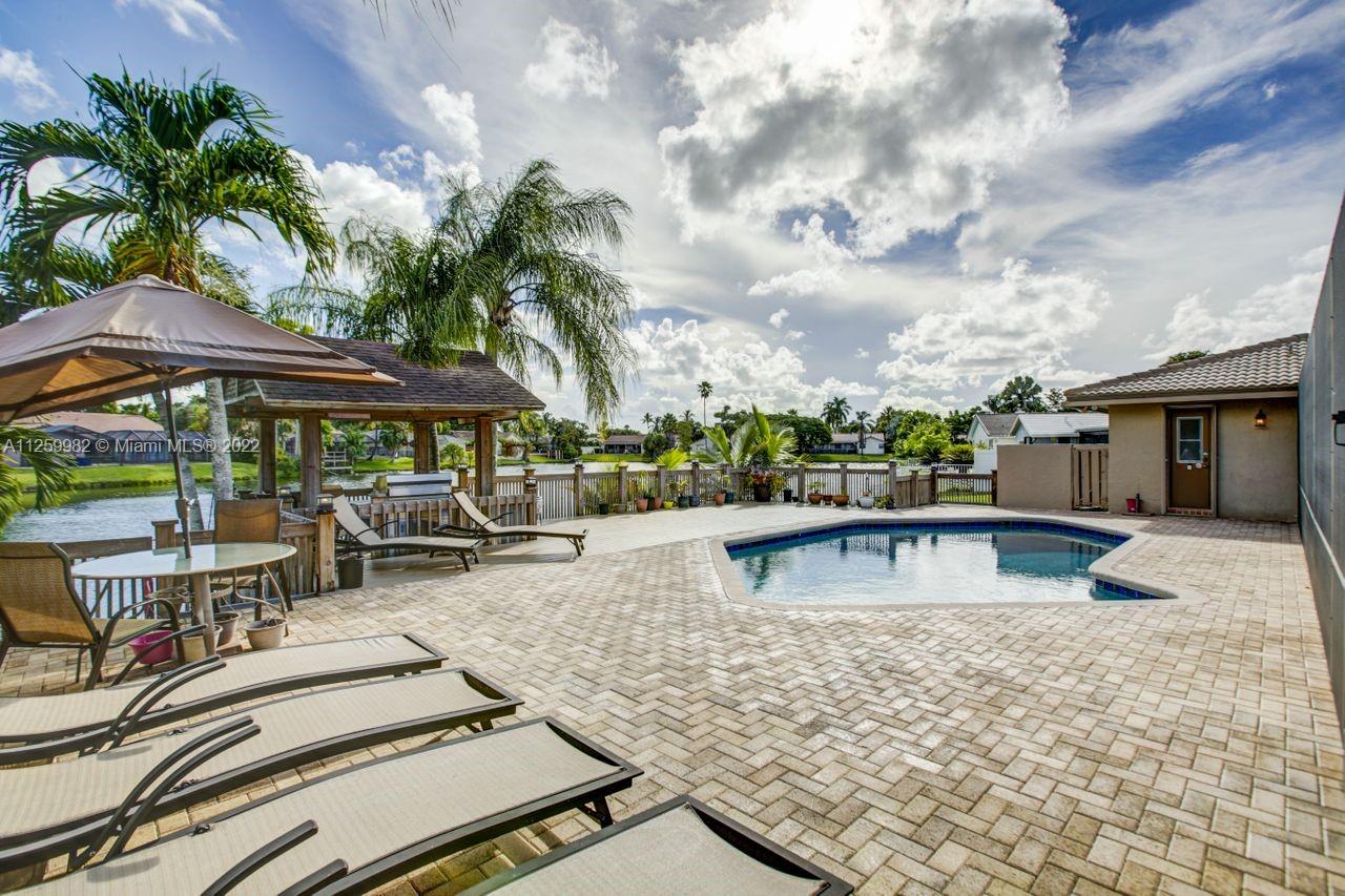 Priced to sell ! Fall In LOVE with this exquisite waterfront pool home situated in an oversized lot with 14,703 SF in the prestigious Jacaranda Lakes in Plantation. Vacation every day in this forever home. Enjoy the sparkling pool, lake and sunset views with fence post lamp lights. Patio bar custom built with cabinets, granite bar, sink and built-in fridge. Gorgeous Gazebo includes electric ceiling fan and lighting. kitchen was renovated with high end wood cabinets appliances; granite countertops and opens up to a spacious family room. French doors.2 Newer AC, New pebble tech on 15/30 saltwater pool, new composite decking, plantation shutters & accordion shutters. Home is wired for a whole home generator (generator included) Space for boat, Great location close to everything.