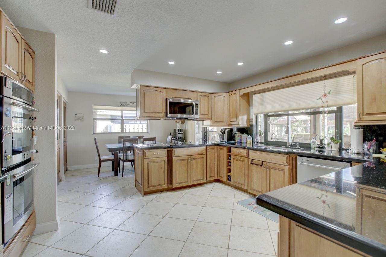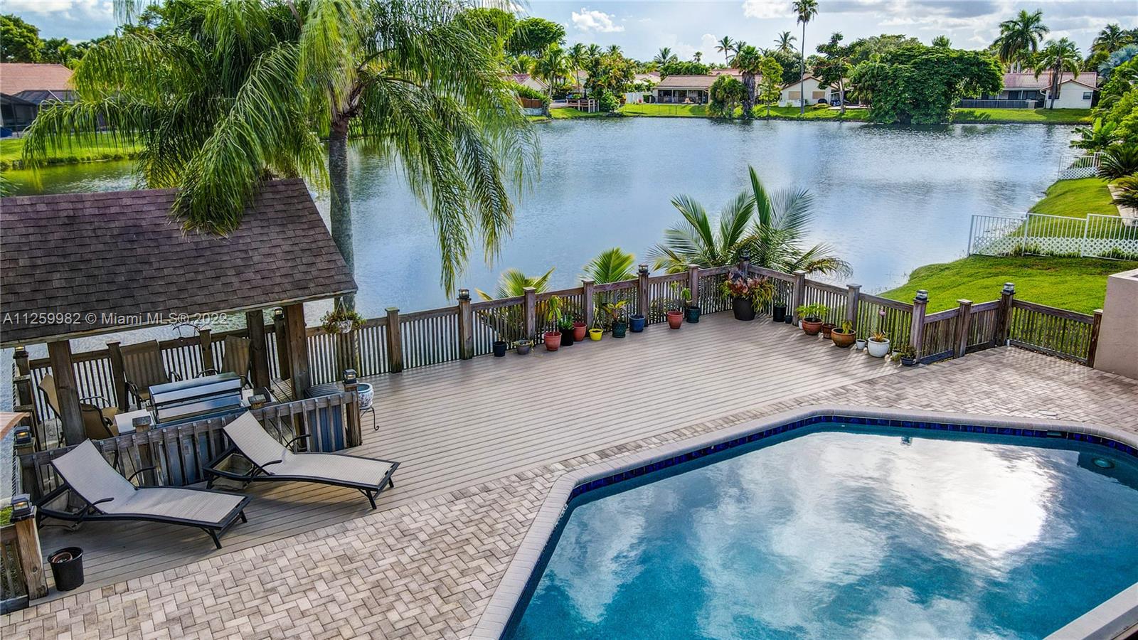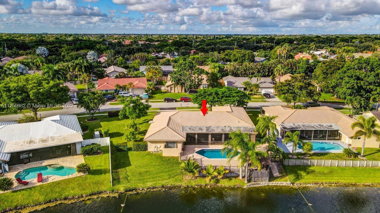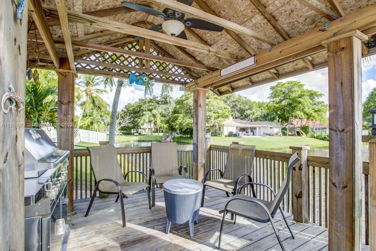 Priced to sell ! Fall In LOVE with this exquisite waterfront pool home situated in an oversized lot with 14,703 SF in the prestigious Jacaranda Lakes in Plantation. Vacation every day in this forever home. Enjoy the sparkling pool, lake and sunset views with fence post lamp lights. Patio bar custom built with cabinets, granite bar, sink and built-in fridge. Gorgeous Gazebo includes electric ceiling fan and lighting. kitchen was renovated with high end wood cabinets appliances; granite countertops and opens up to a spacious family room. French doors.2 Newer AC, New pebble tech on 15/30 saltwater pool, new composite decking, plantation shutters & accordion shutters. Home is wired for a whole home generator (generator included) Space for boat, Great location close to everything.